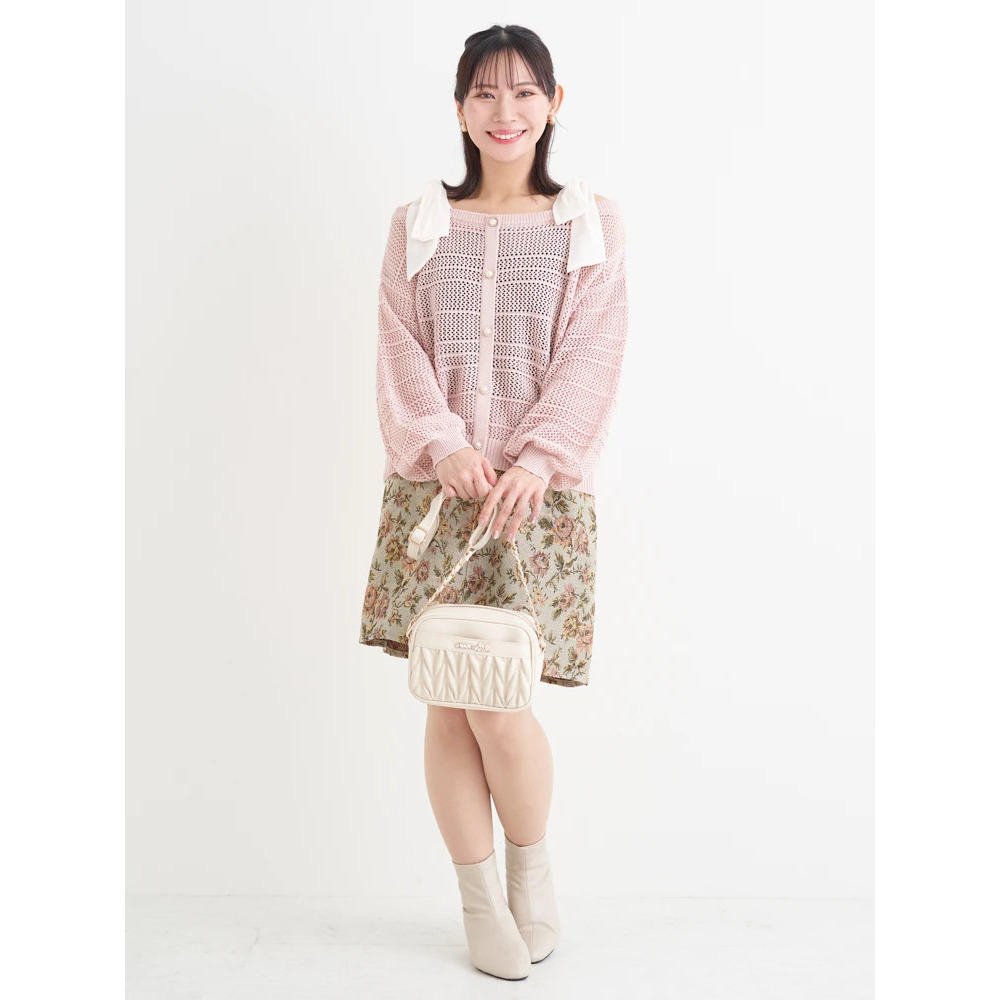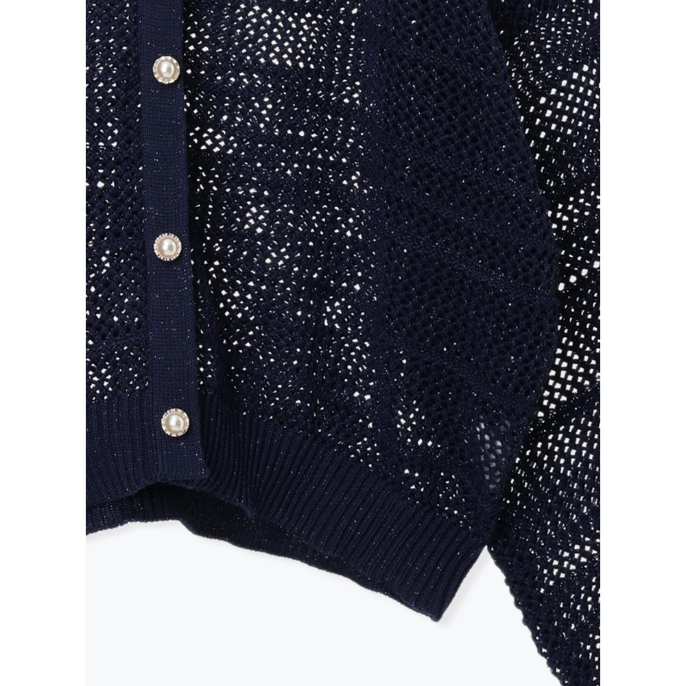 ・カーデ風のフェイクデザインに施されたパールのボタンが上品なアクセントに♪