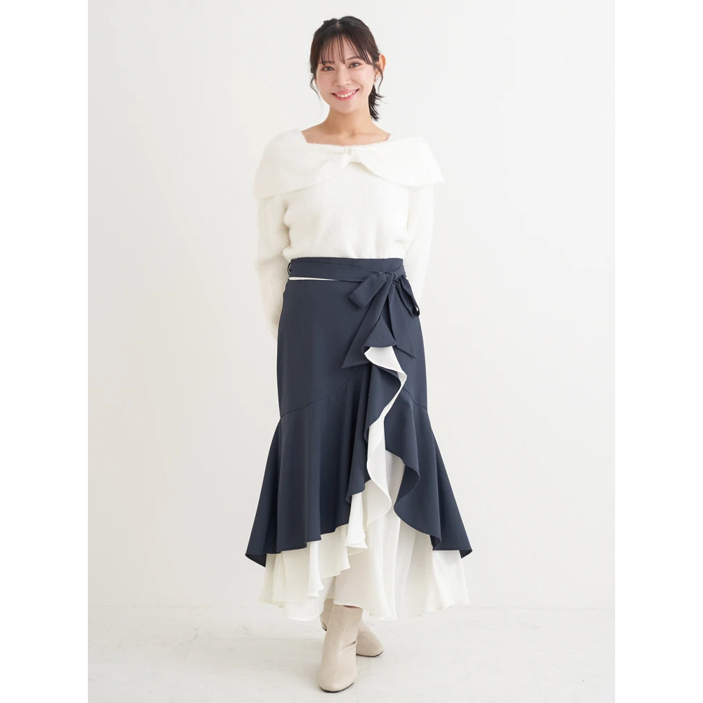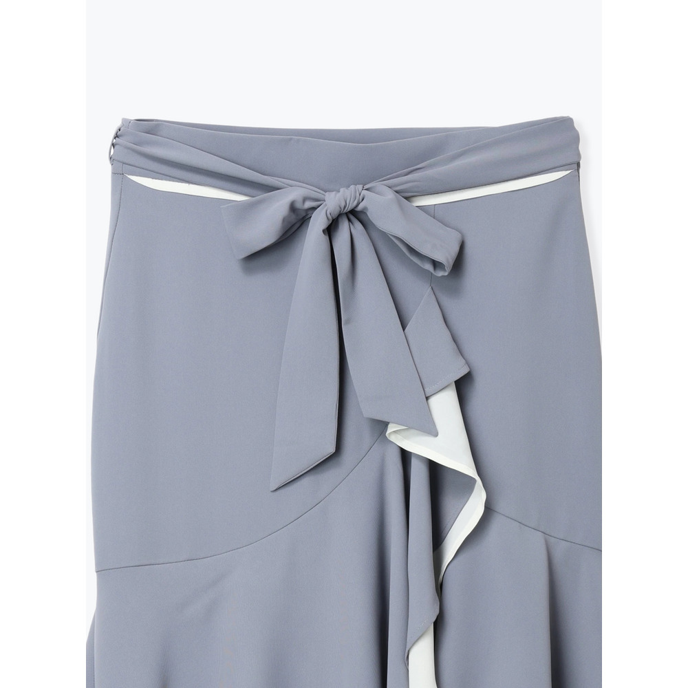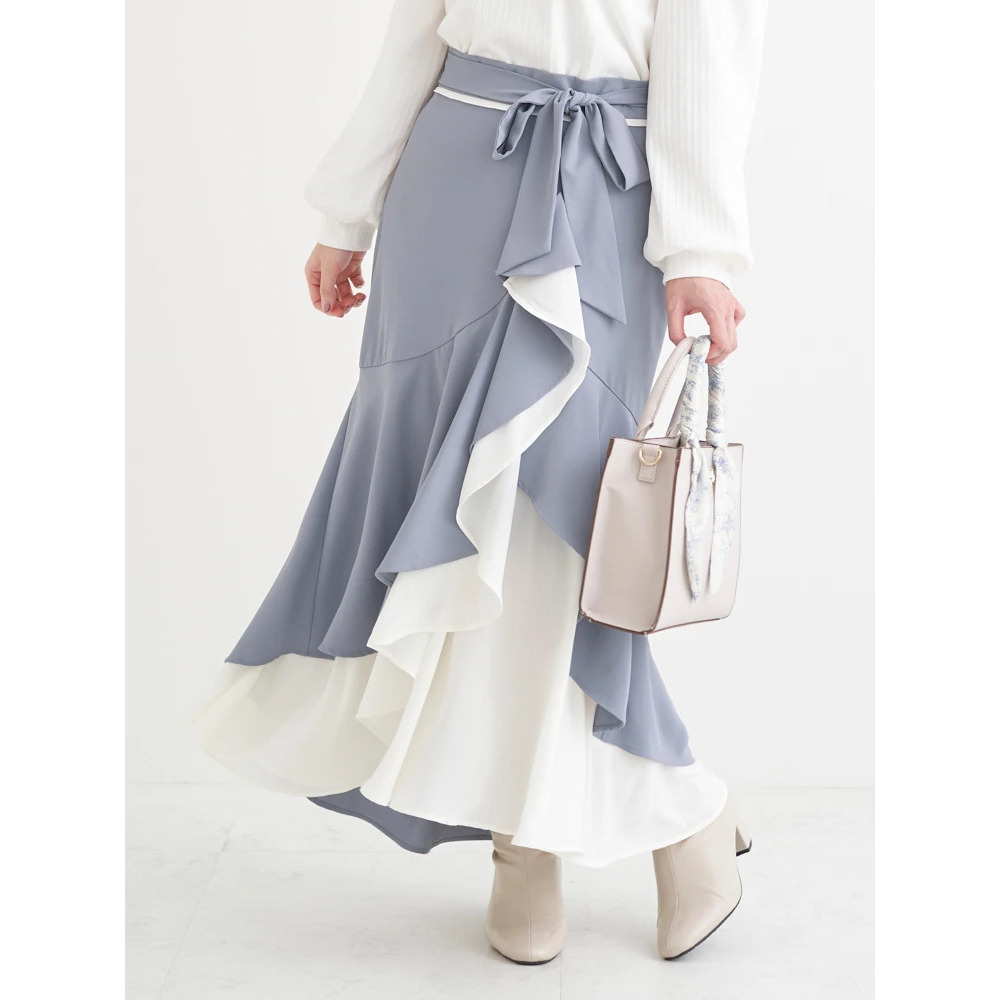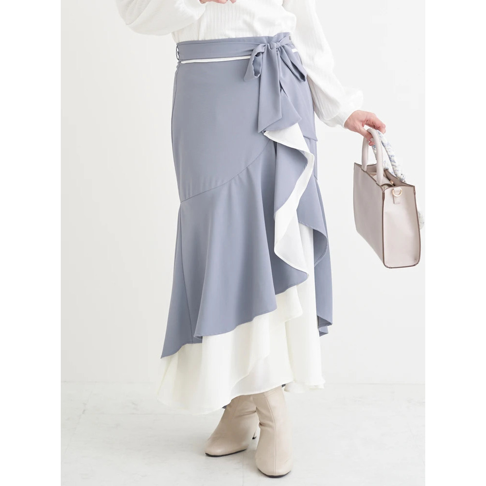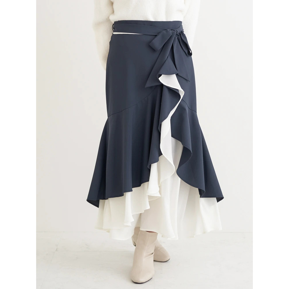 リボンベルト付き配色ラッフルマーメイドスカート