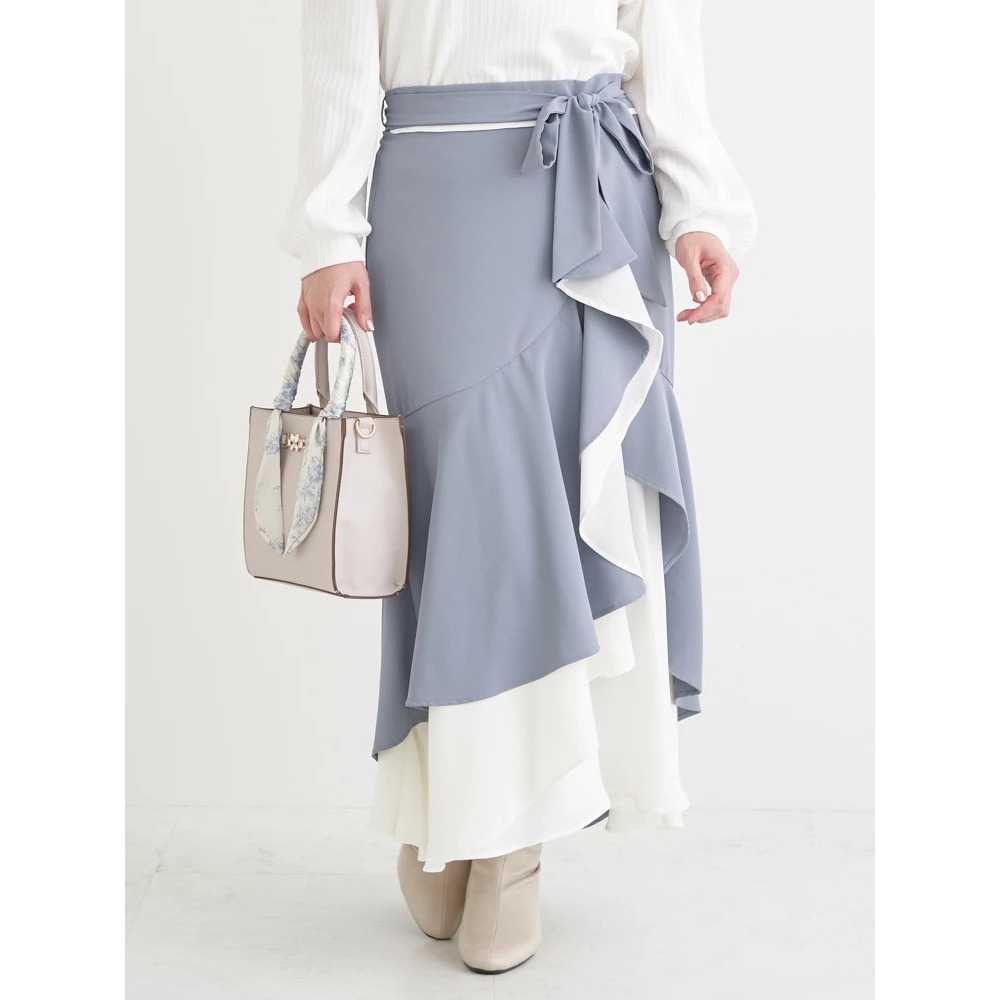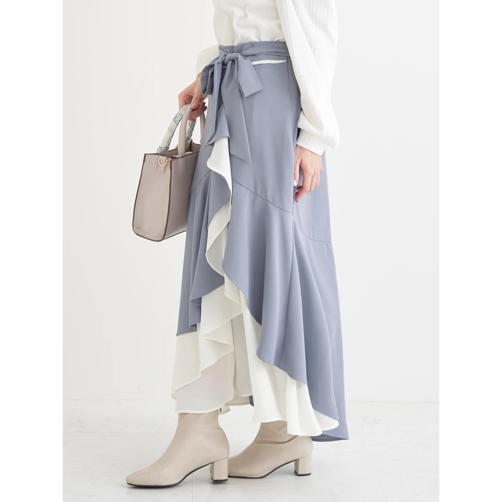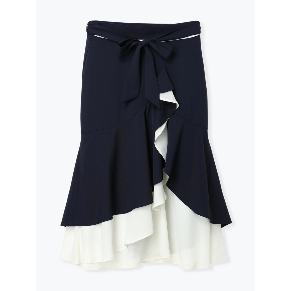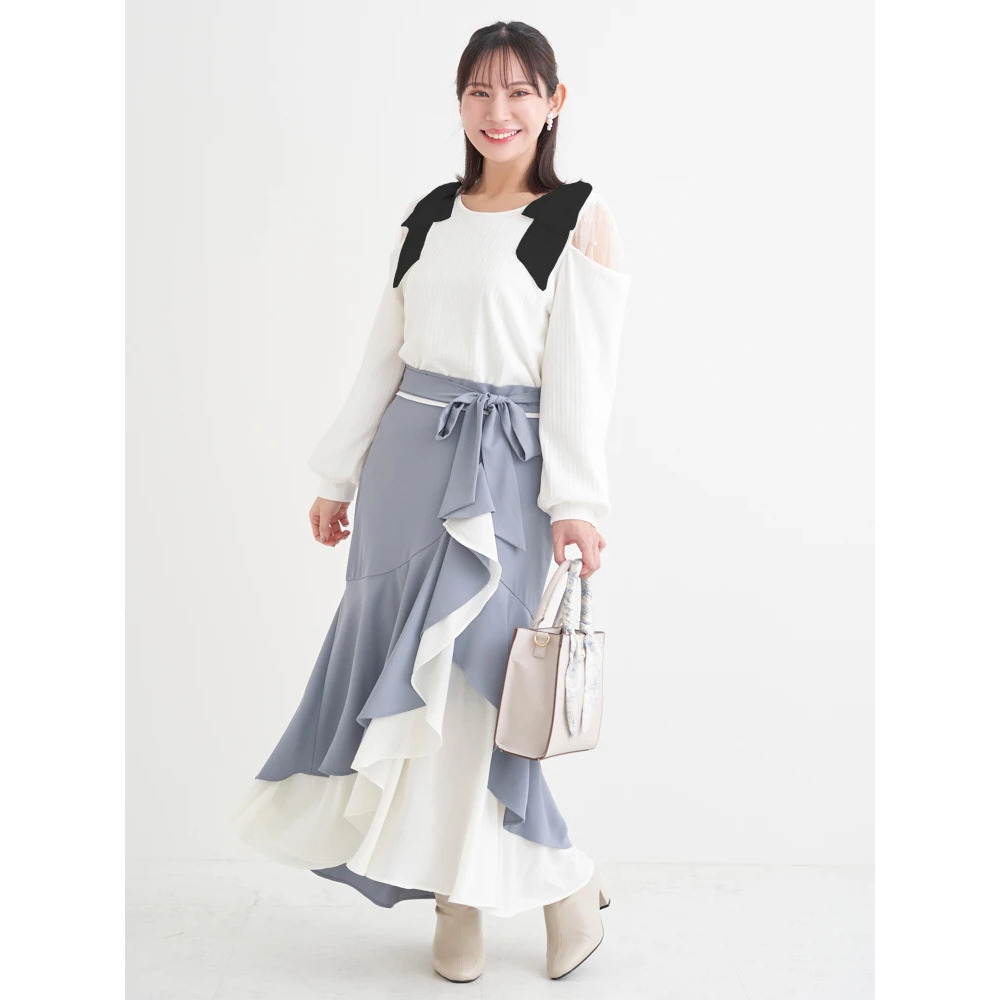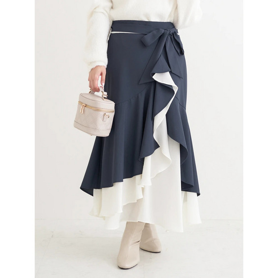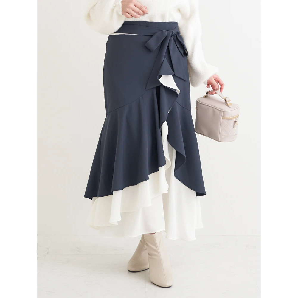 リボンベルト付き配色ラッフルマーメイドスカート