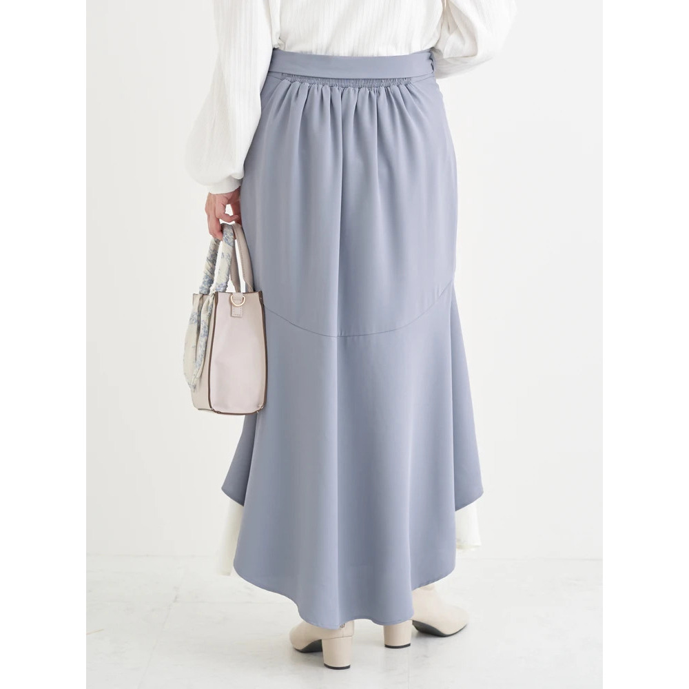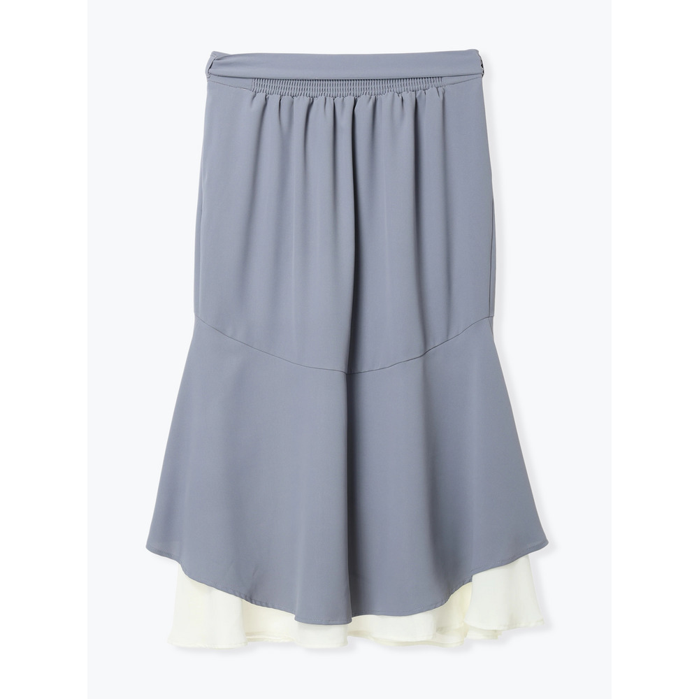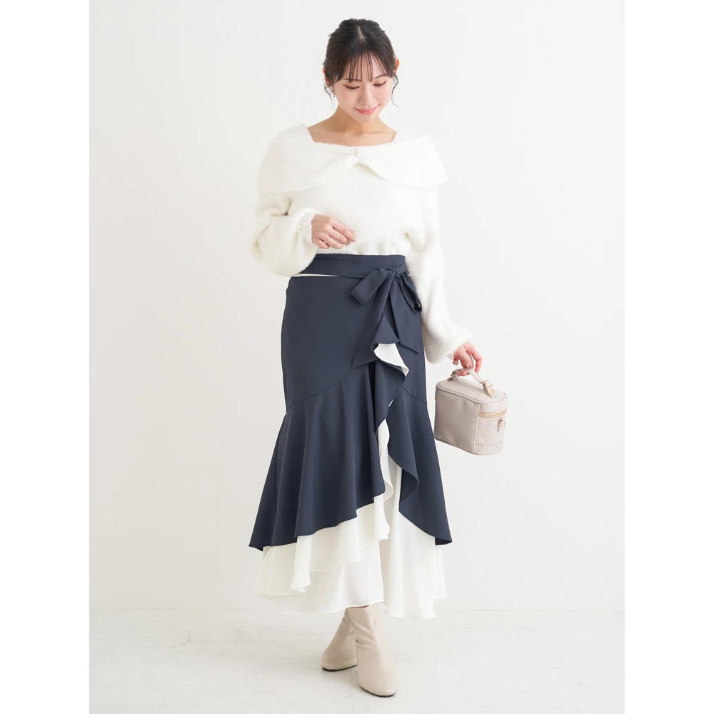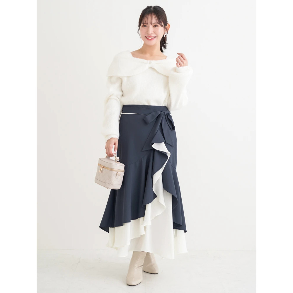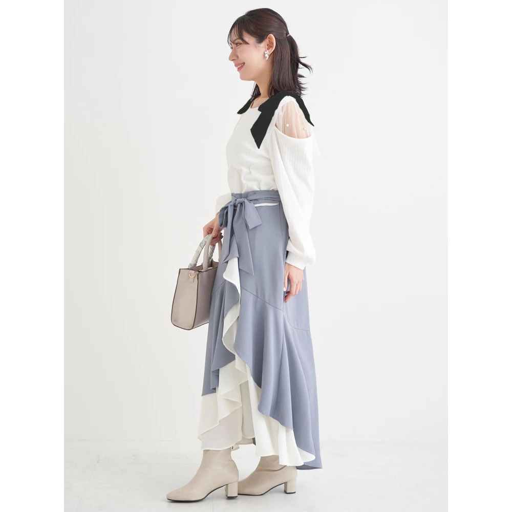 リボンベルト付き配色ラッフルマーメイドスカート