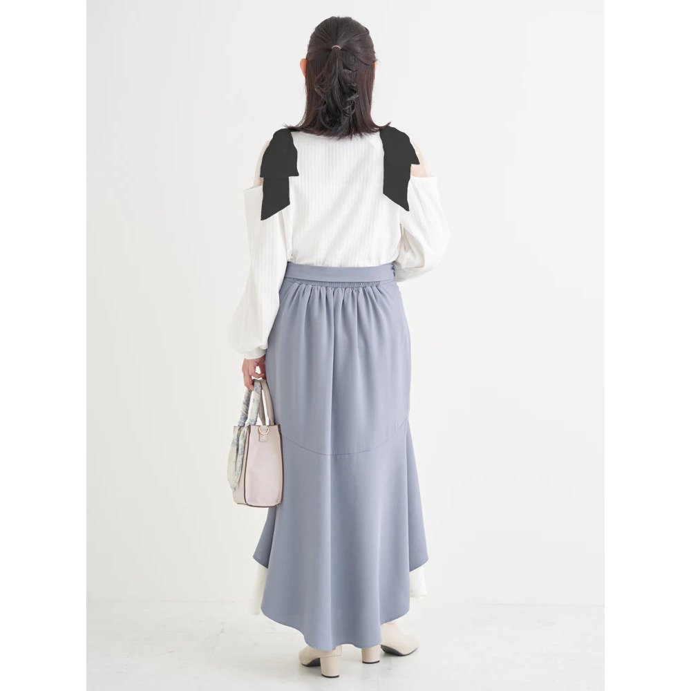 ・ウエスト部分はリボンベルトになっており、スタイリングにメリハリ感をプラス。