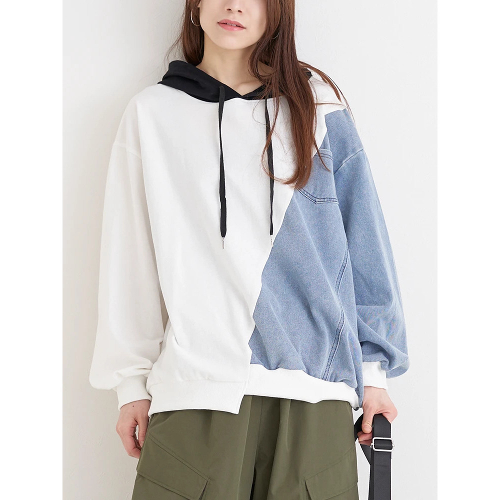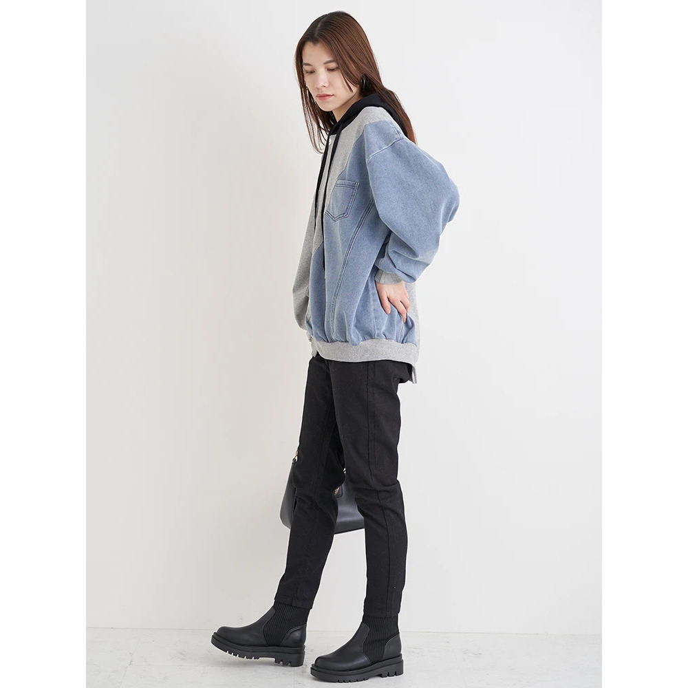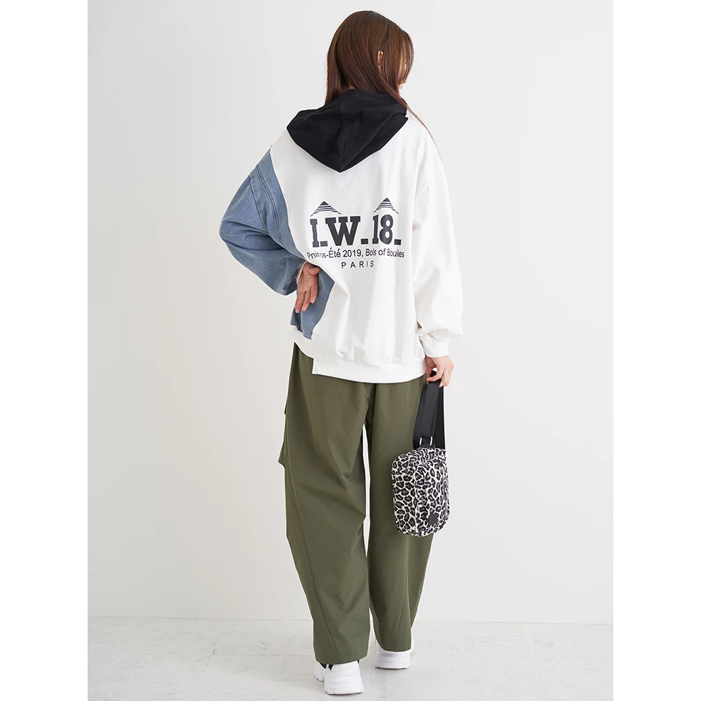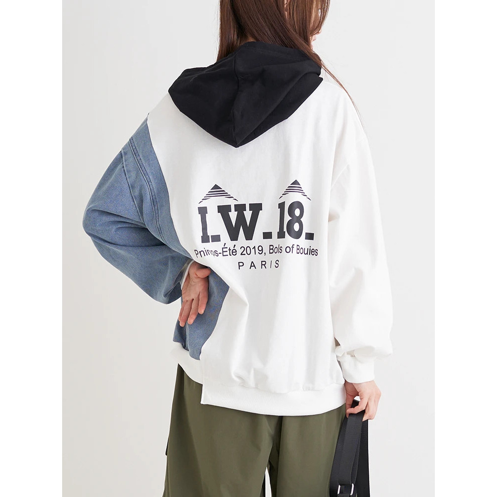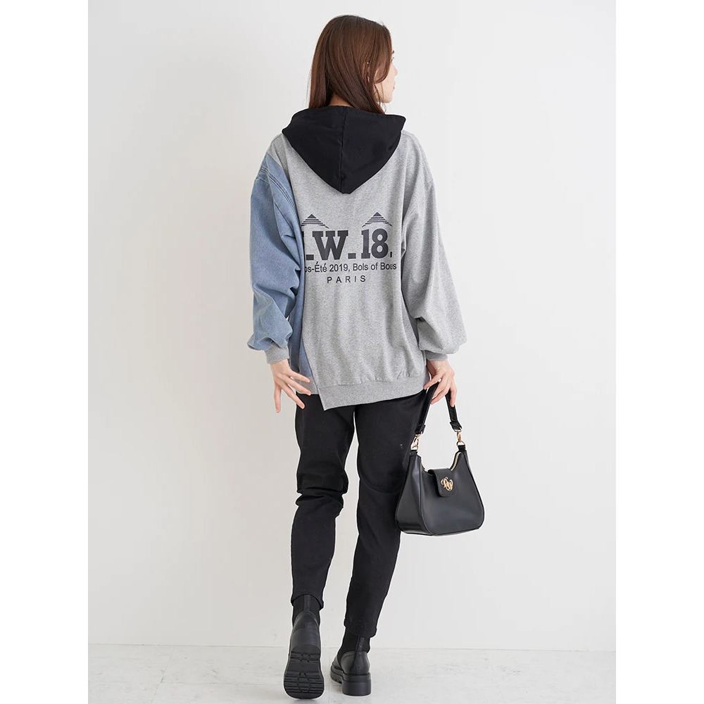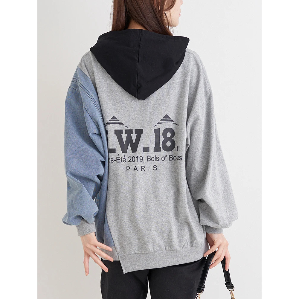 デニム切り替えBACKロゴパーカー