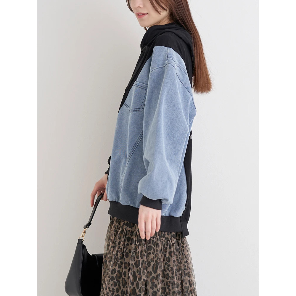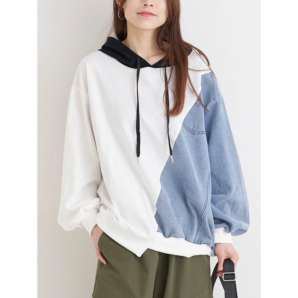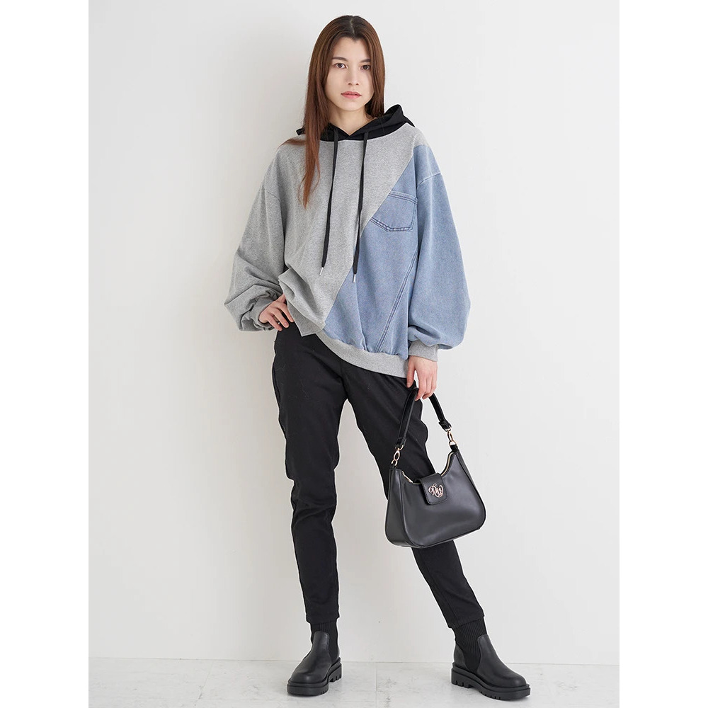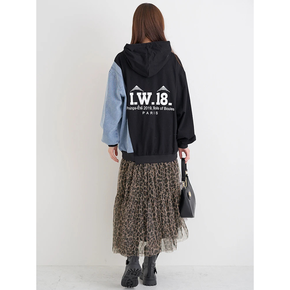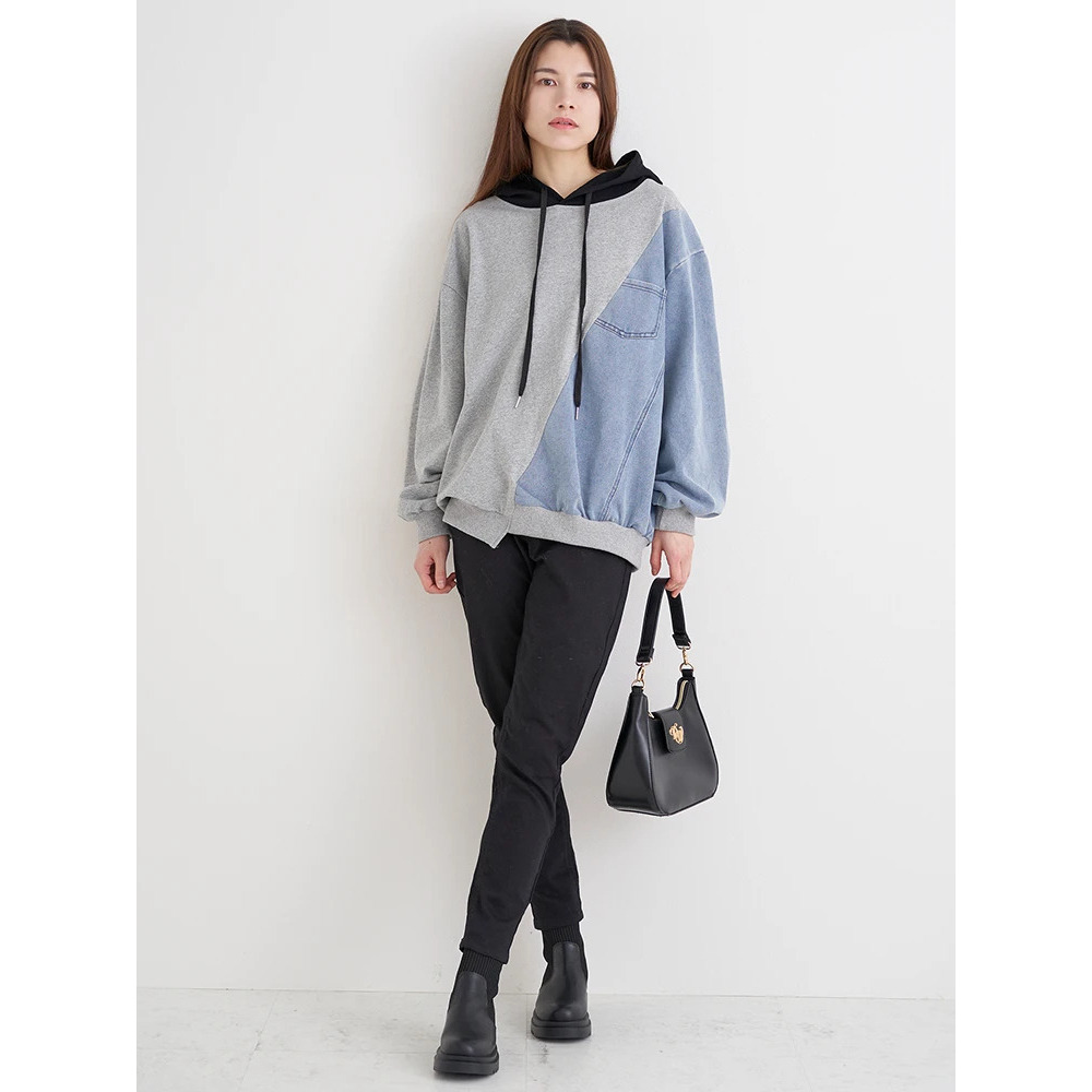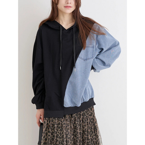 デニム切り替えBACKロゴパーカー