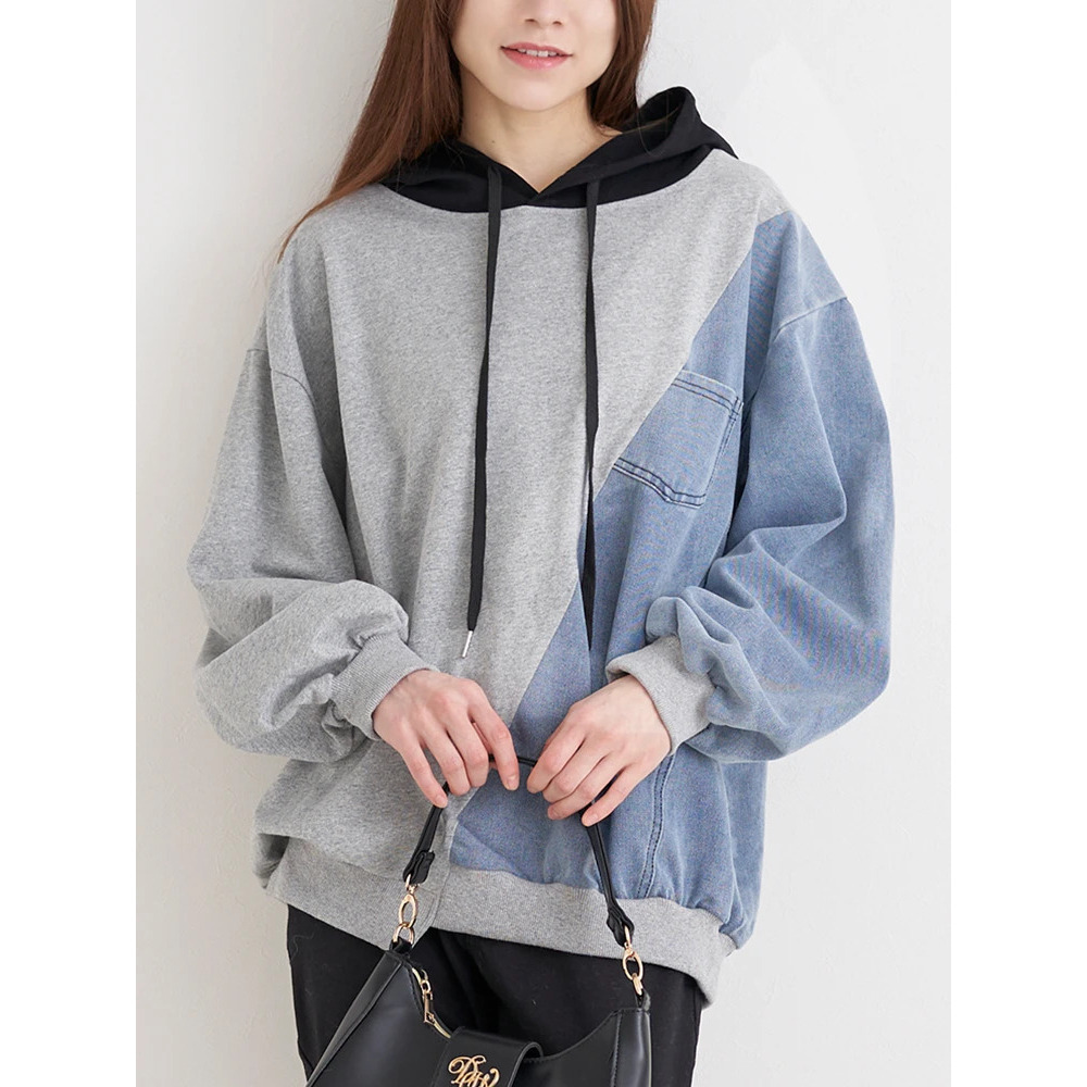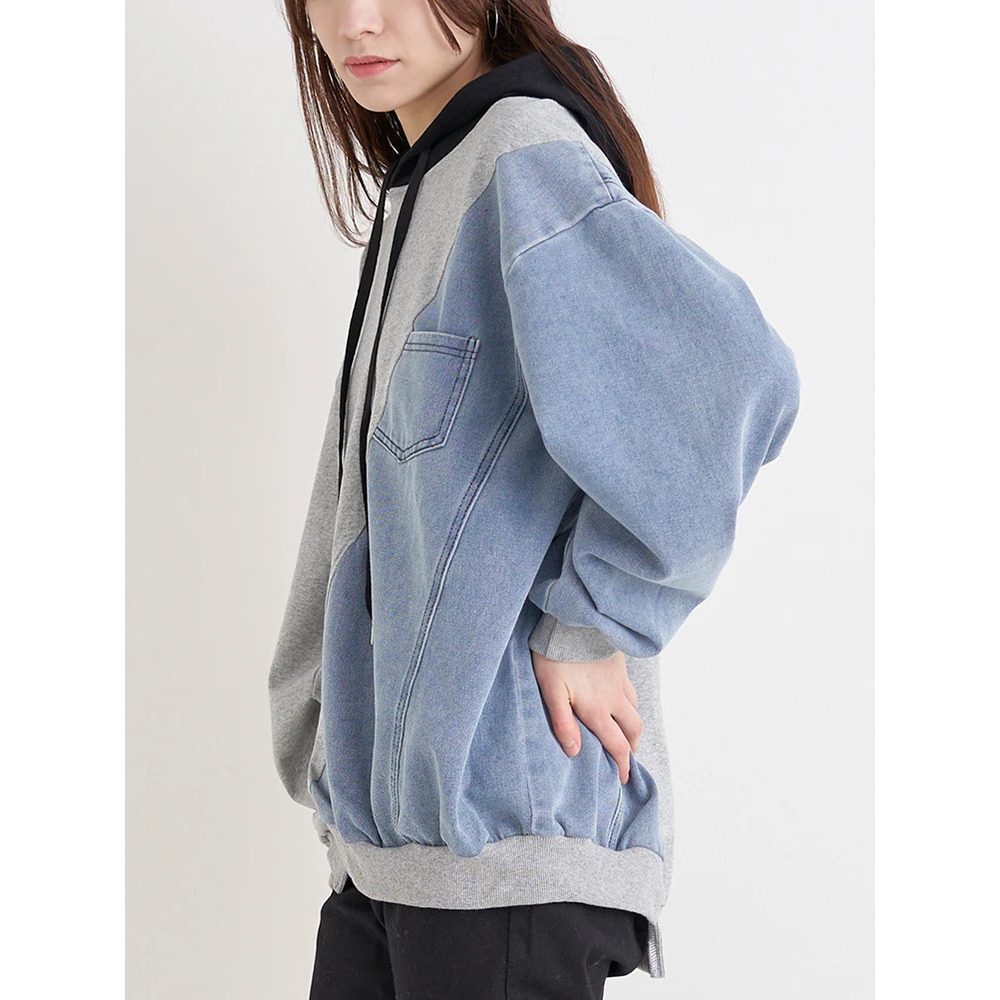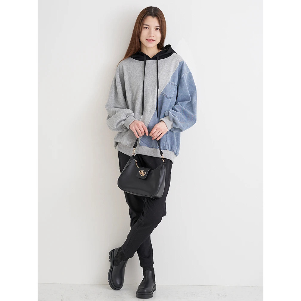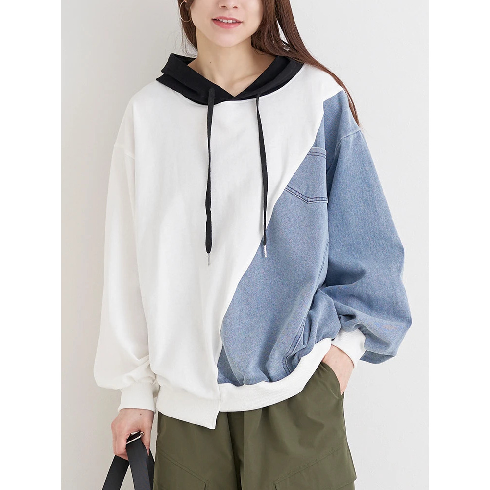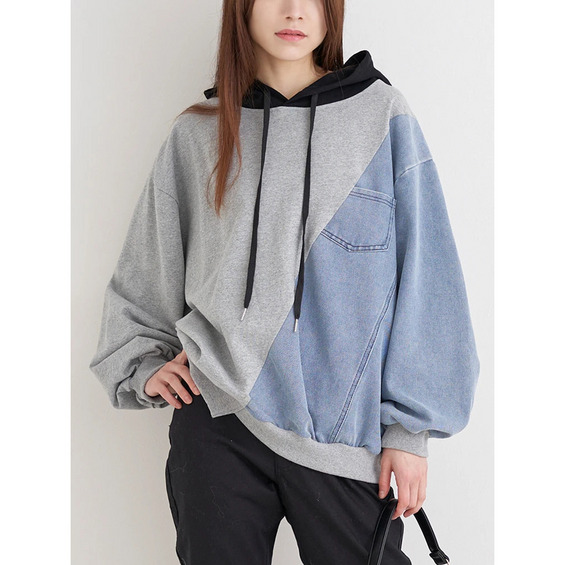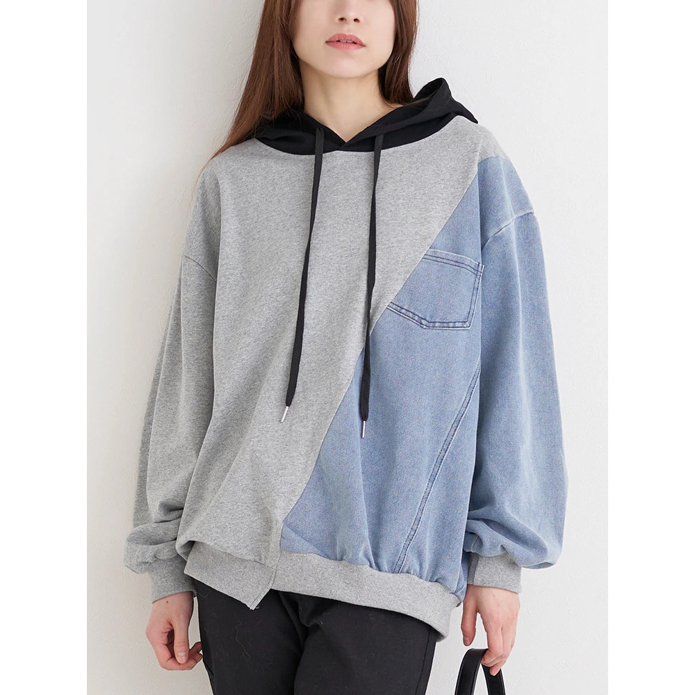 デニム切り替えBACKロゴパーカー
