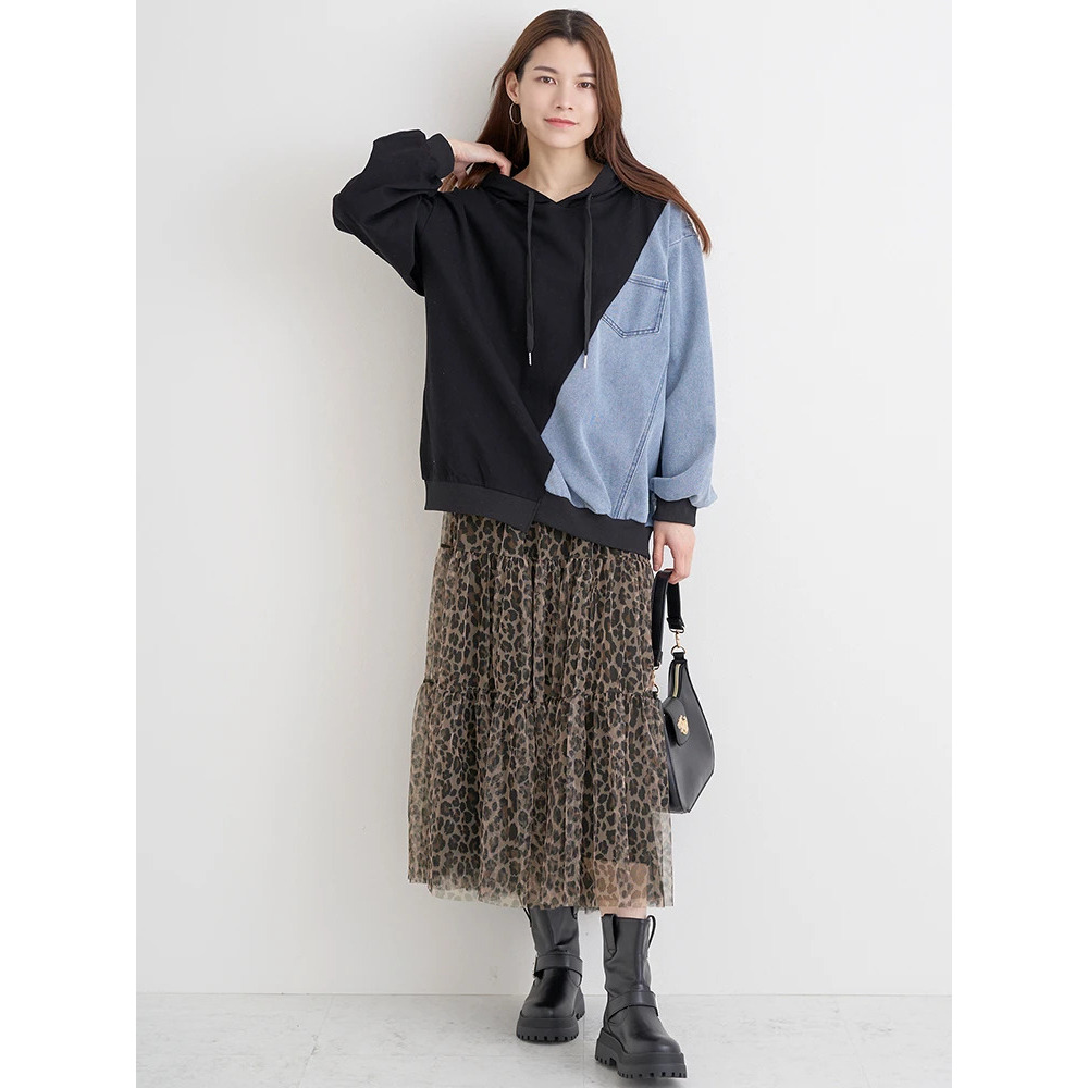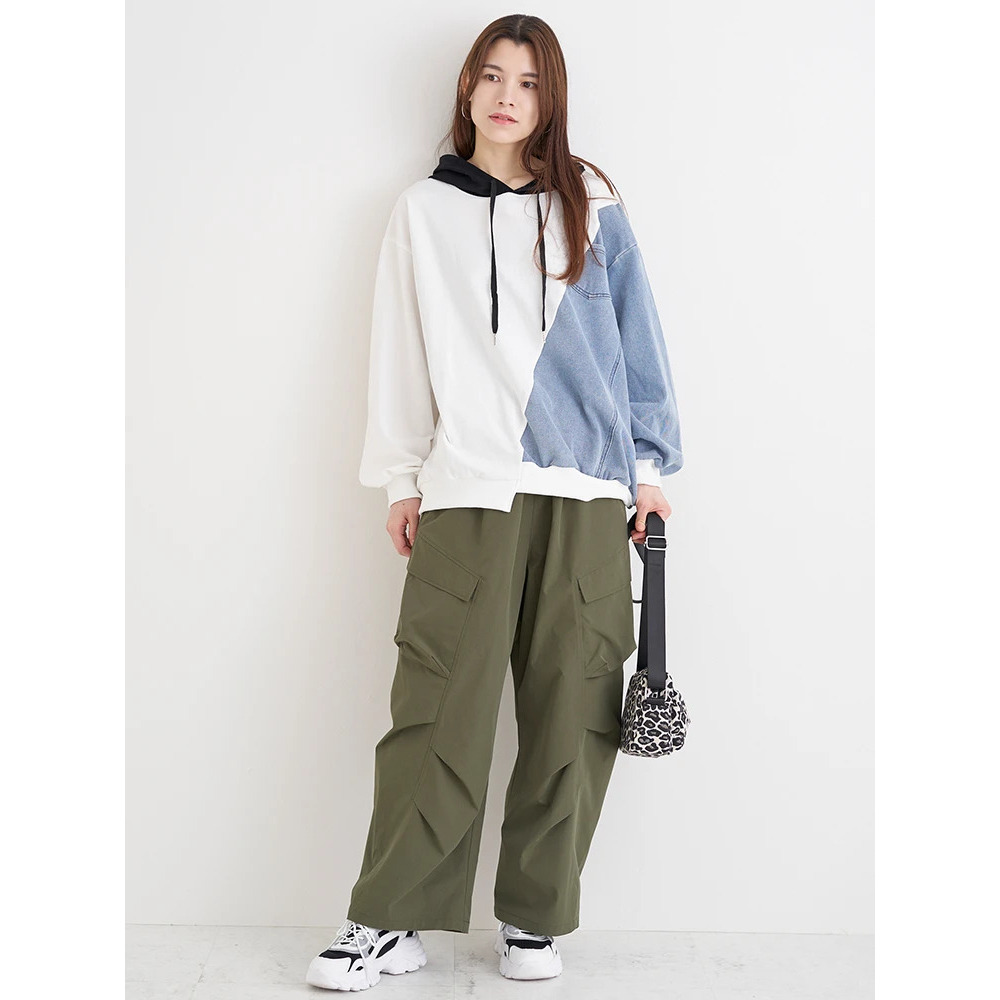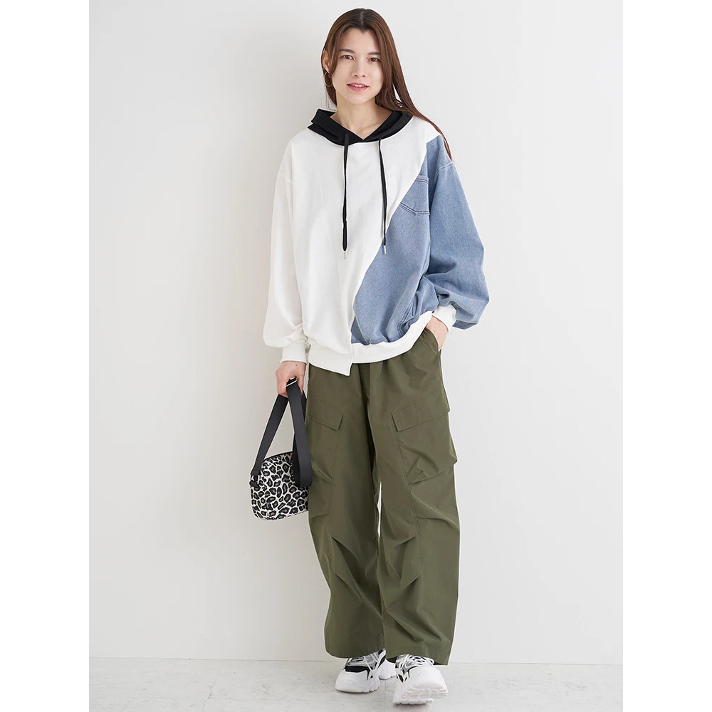 ・サイドをデニム素材で切り替えたデザインが目を惹き1枚でおしゃれ見え♪