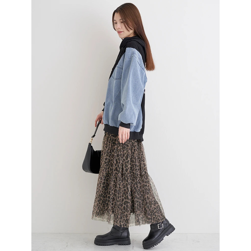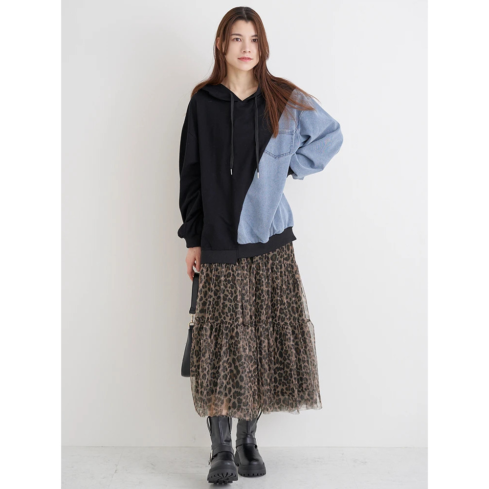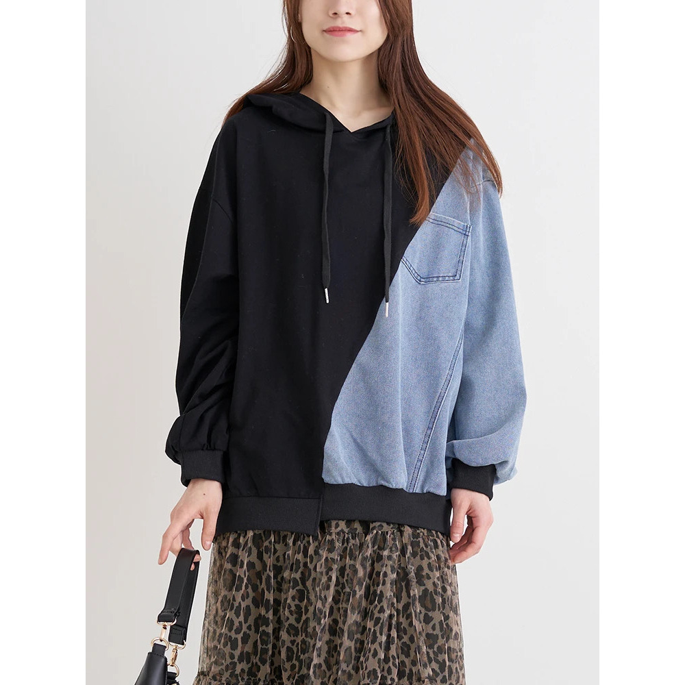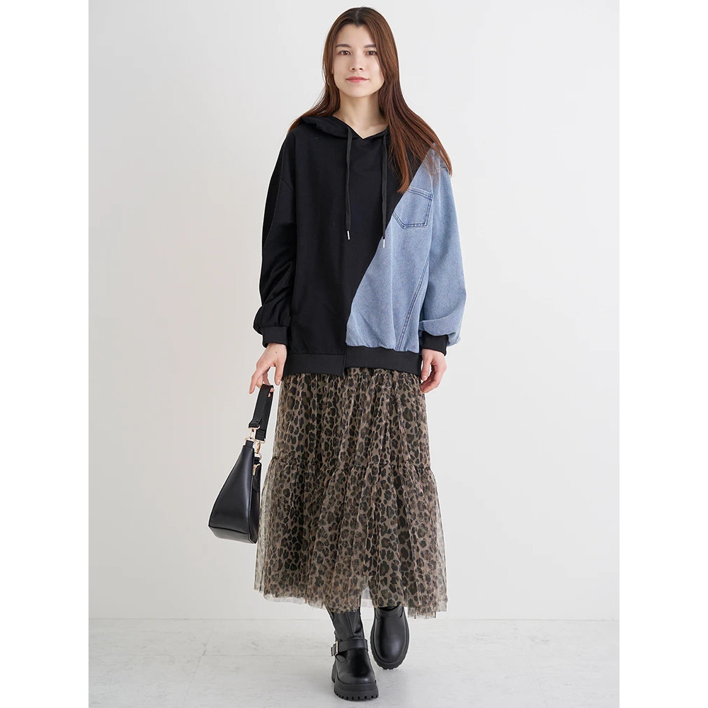 ・サイドをデニム素材で切り替えたデザインが目を惹き1枚でおしゃれ見え♪