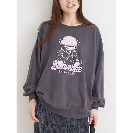 ニット帽くま刺繍裏毛プルオーバー