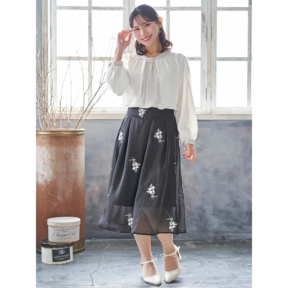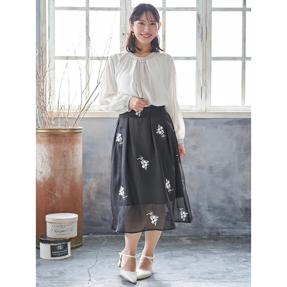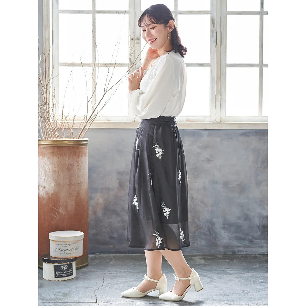 花柄刺繍オーガンジースカート