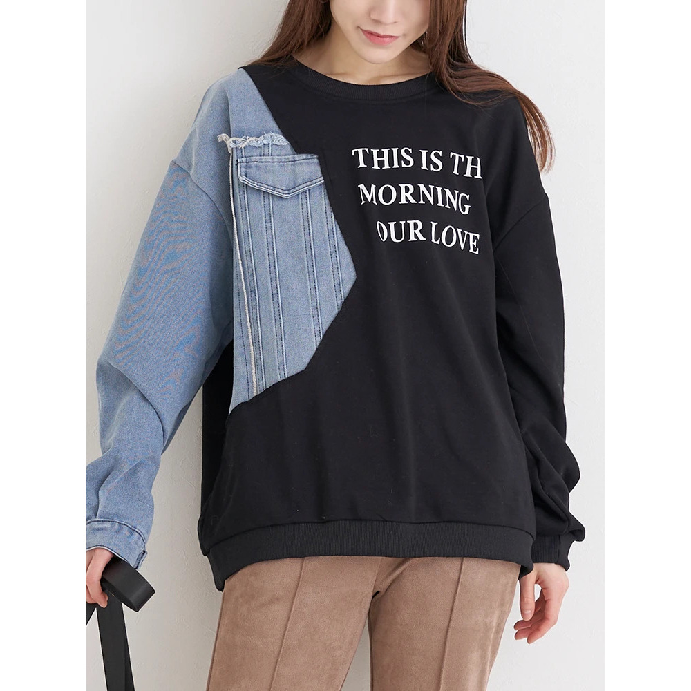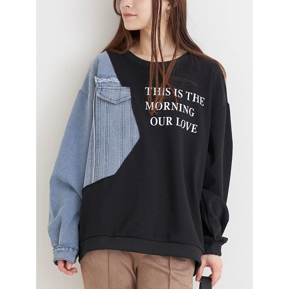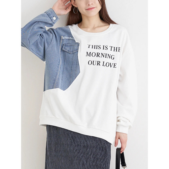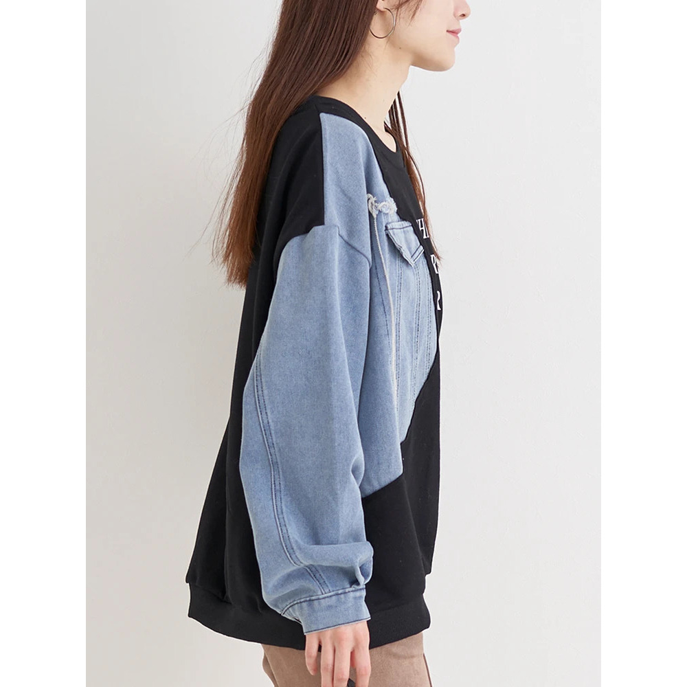 デニム×裏毛の異素材使いがこなれカジュアルを演出するプルオーバー