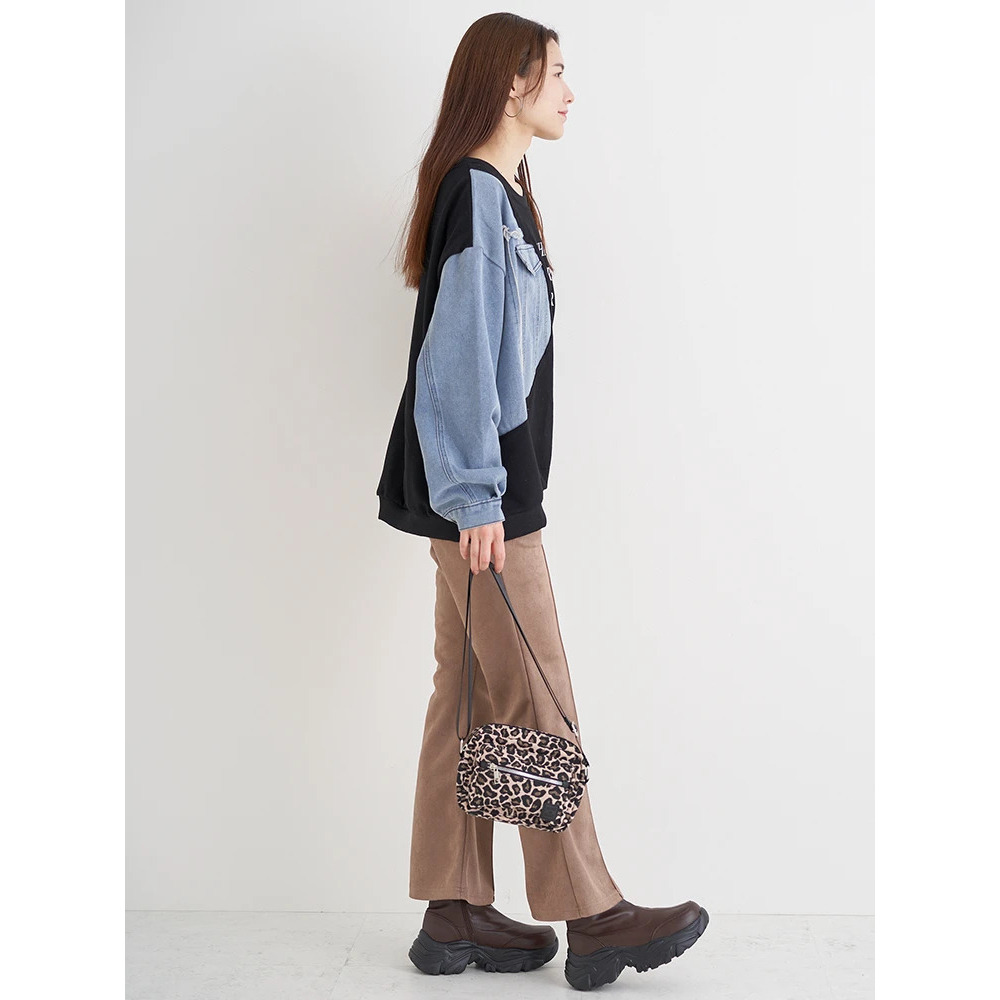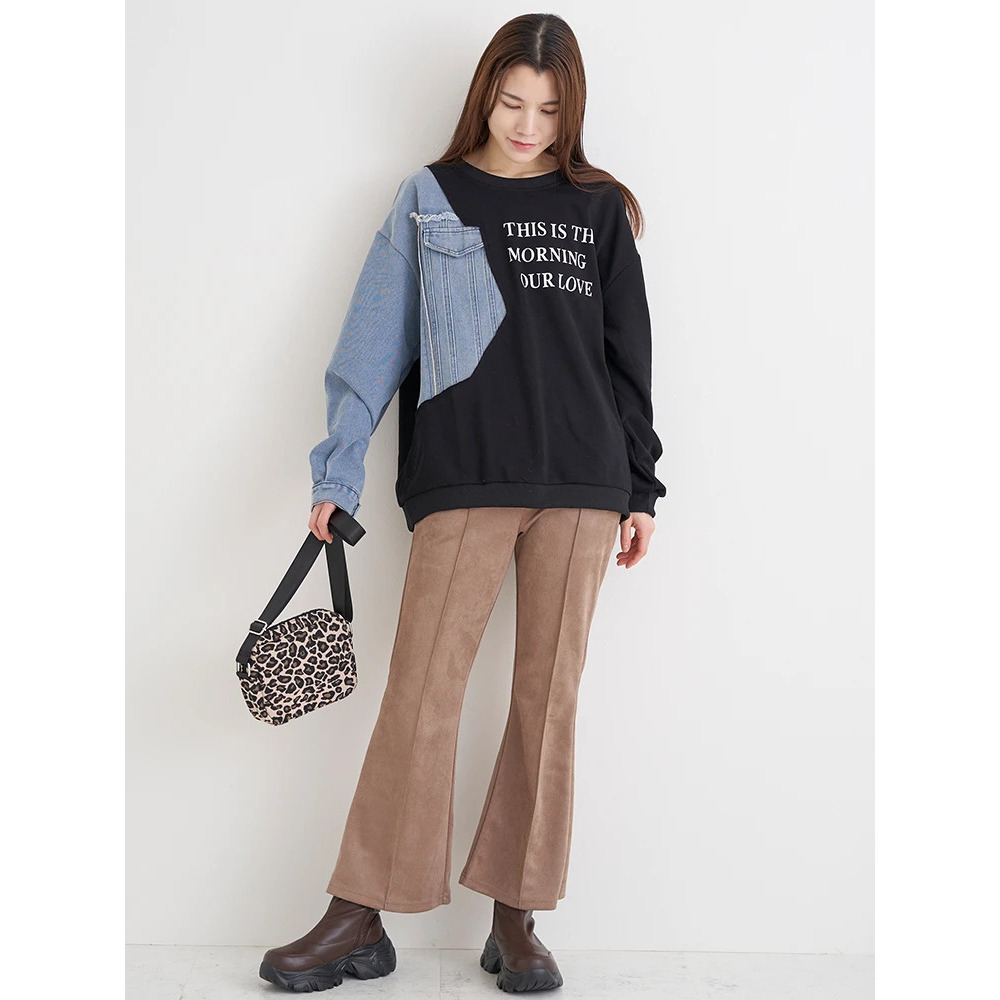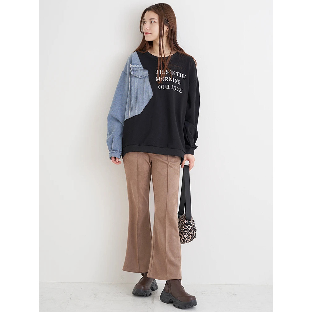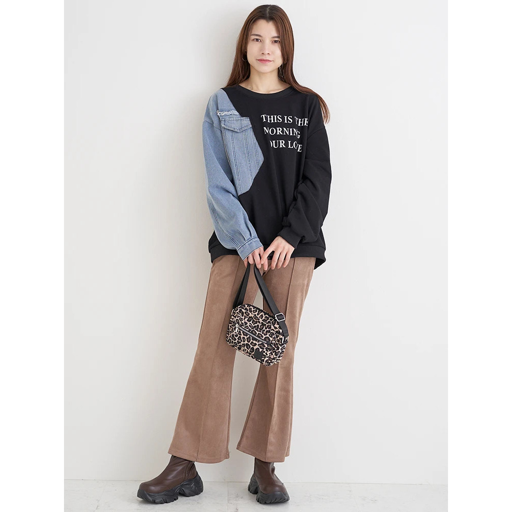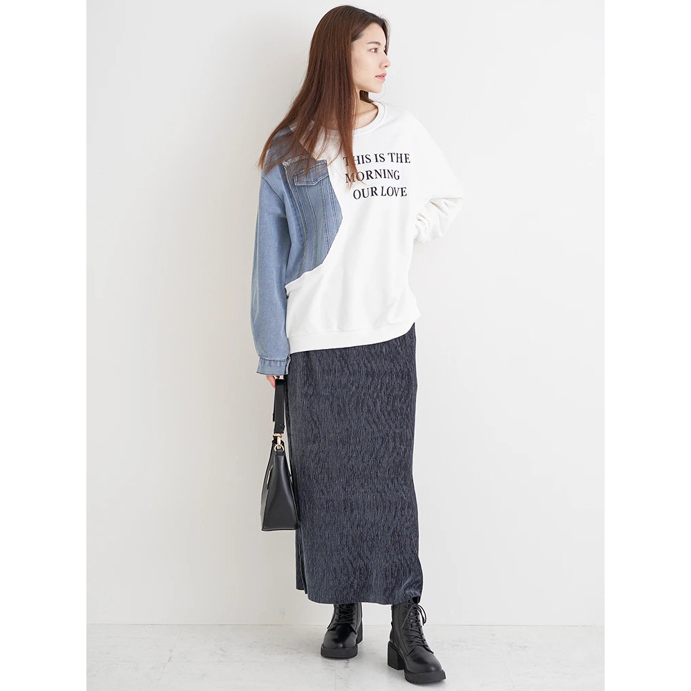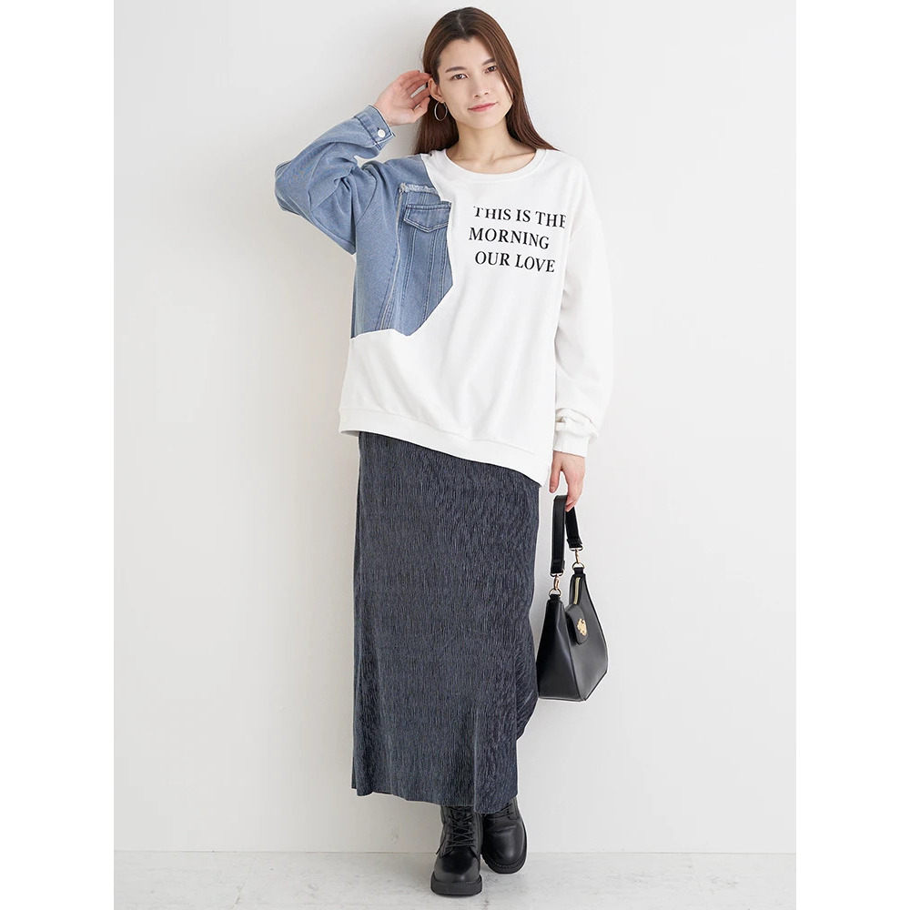 ・サイドをデニム素材で切り替えたデザインが目を惹き1枚でおしゃれ見え♪