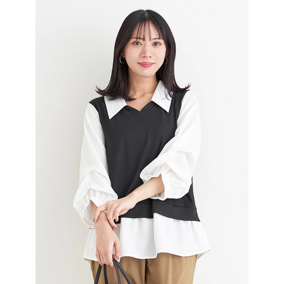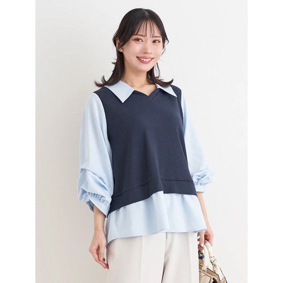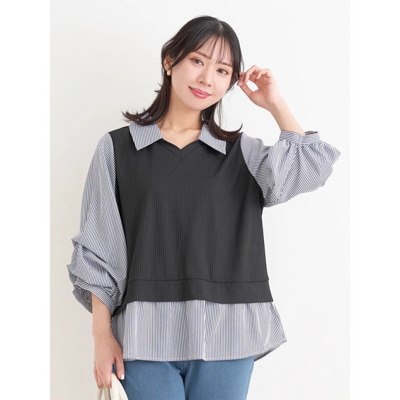 伸縮性:なし(シャツ部分)あり(リブカットソー部分)