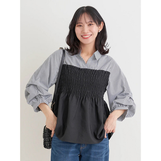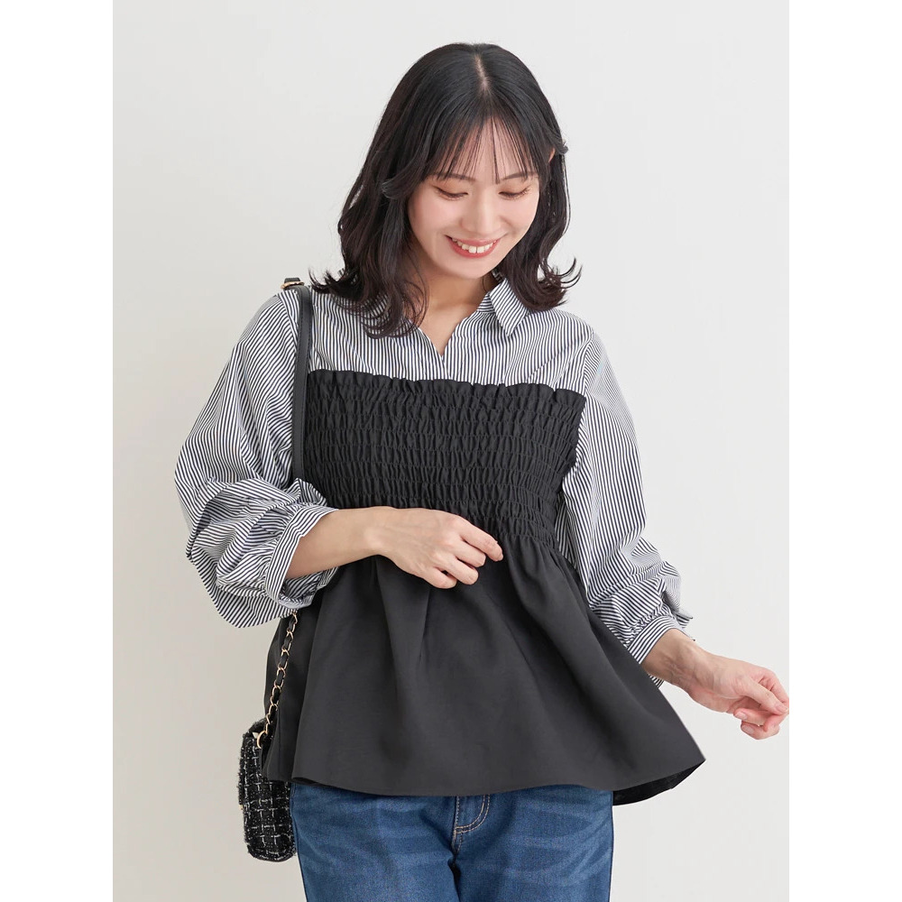 シャツドッキングトップス(無地/ストライプ柄/チェック柄)