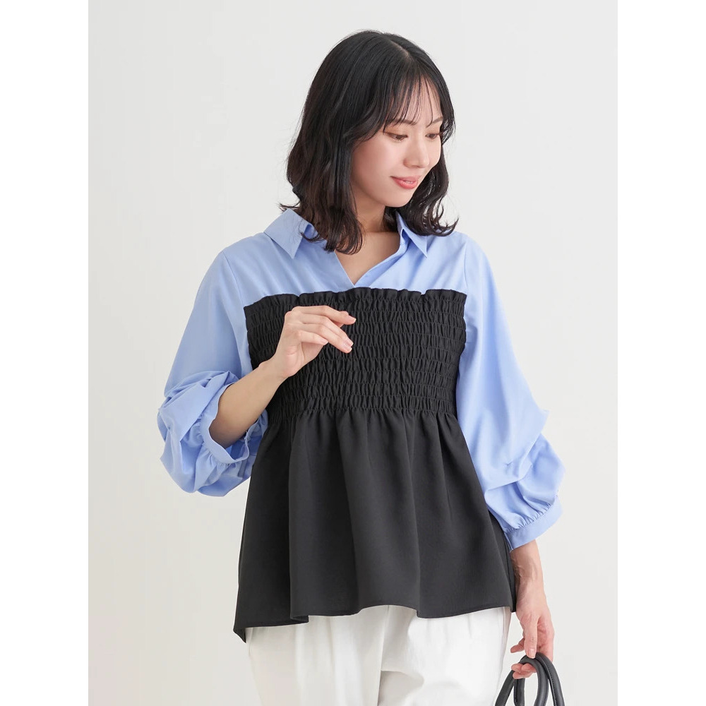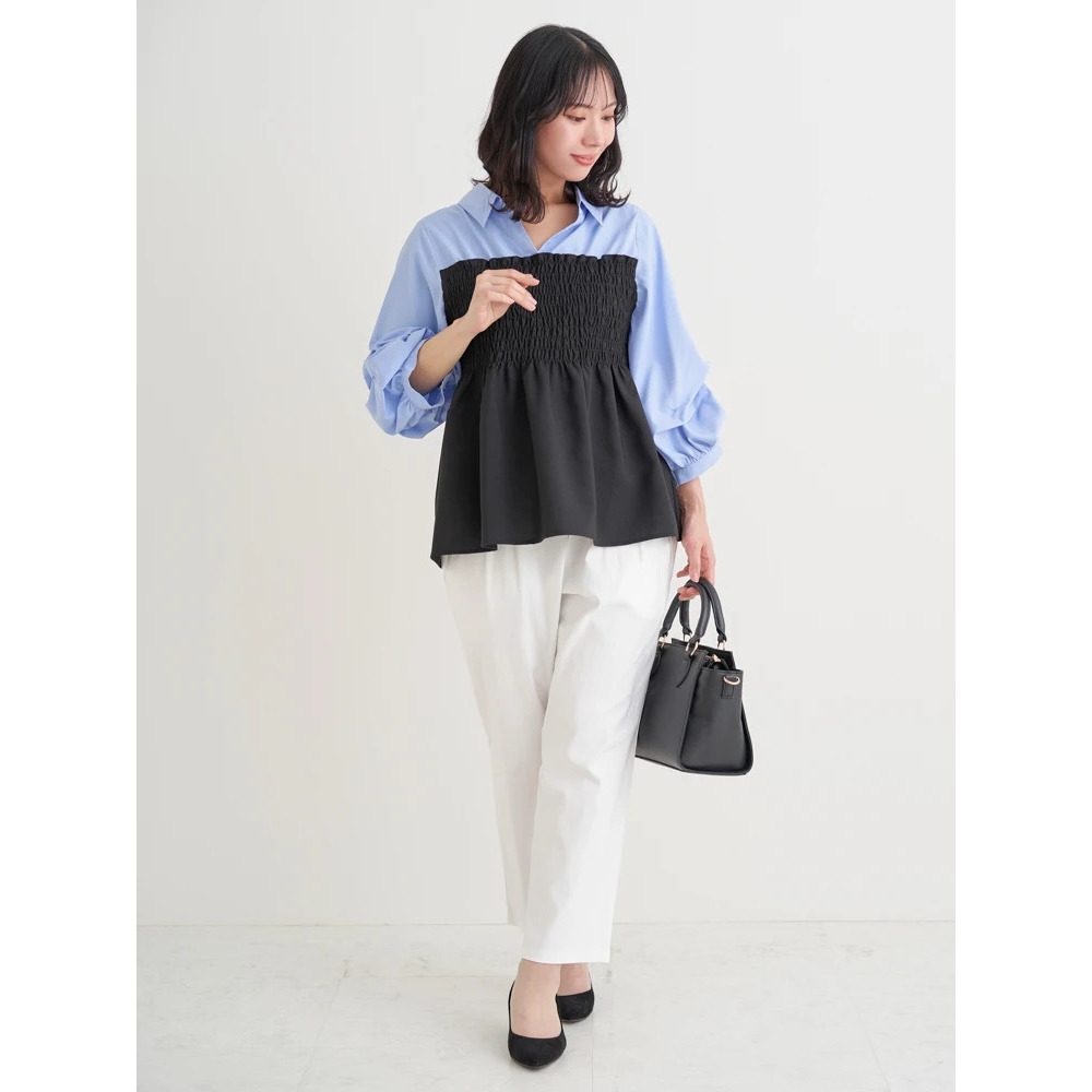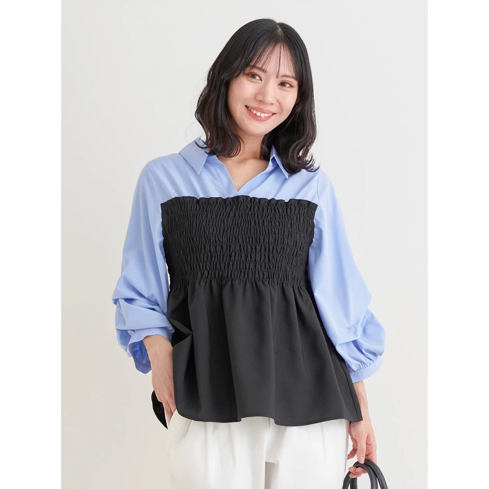 透け感:ややあり(オフホワイト/B柄のシャツ部分)なし(青/A柄のシャツ部分と胸下切り替え無地部分)