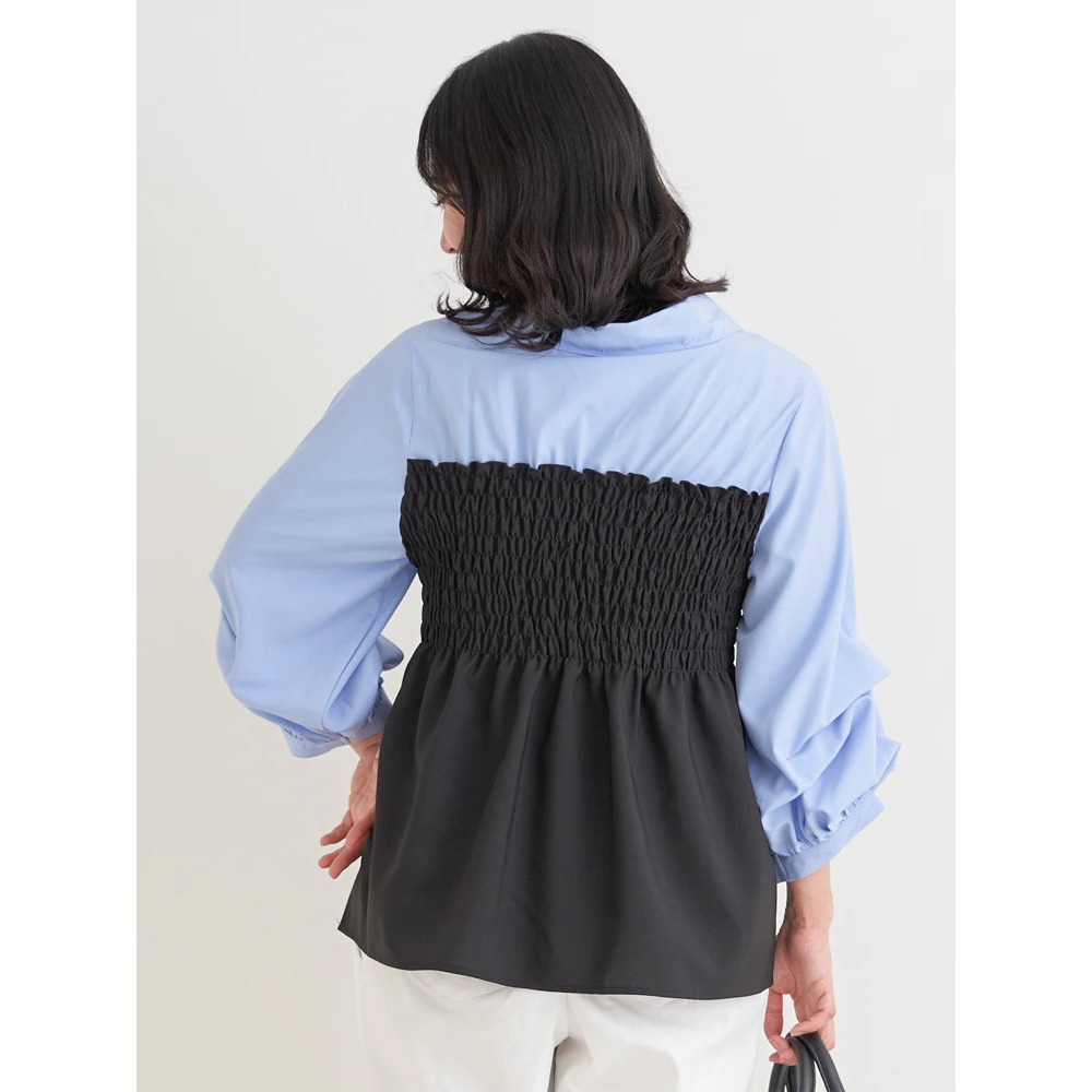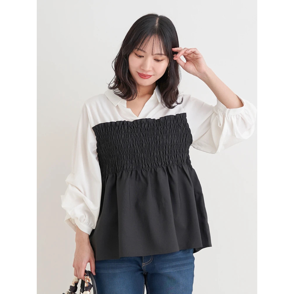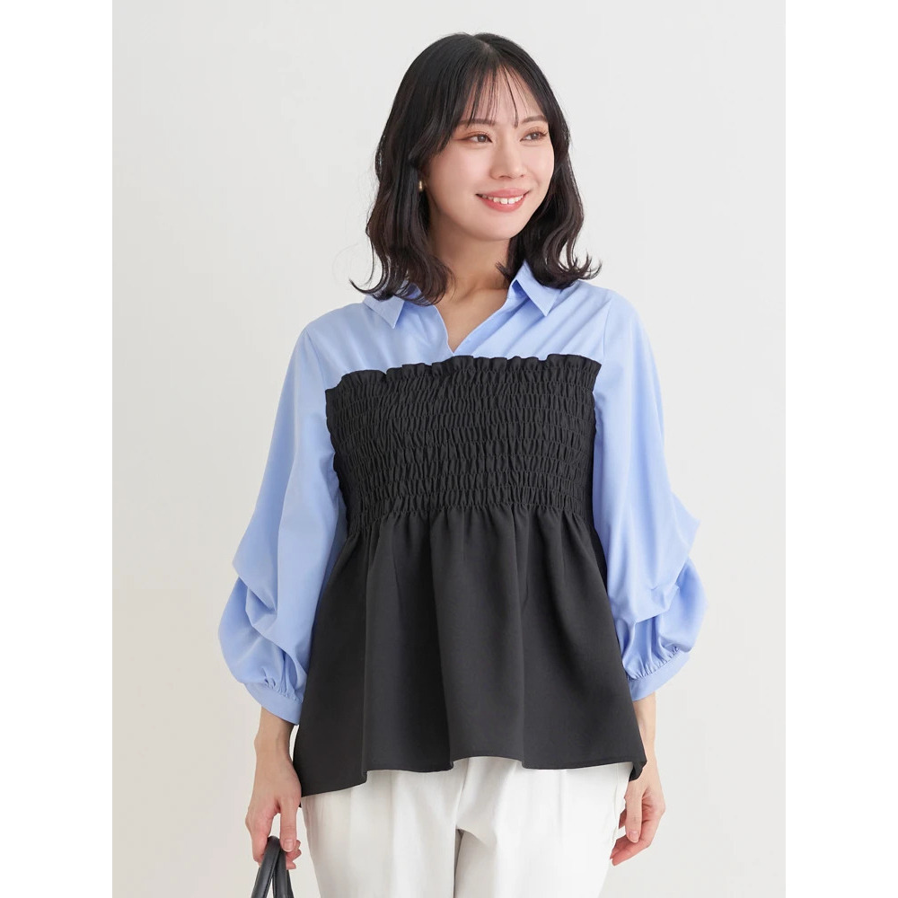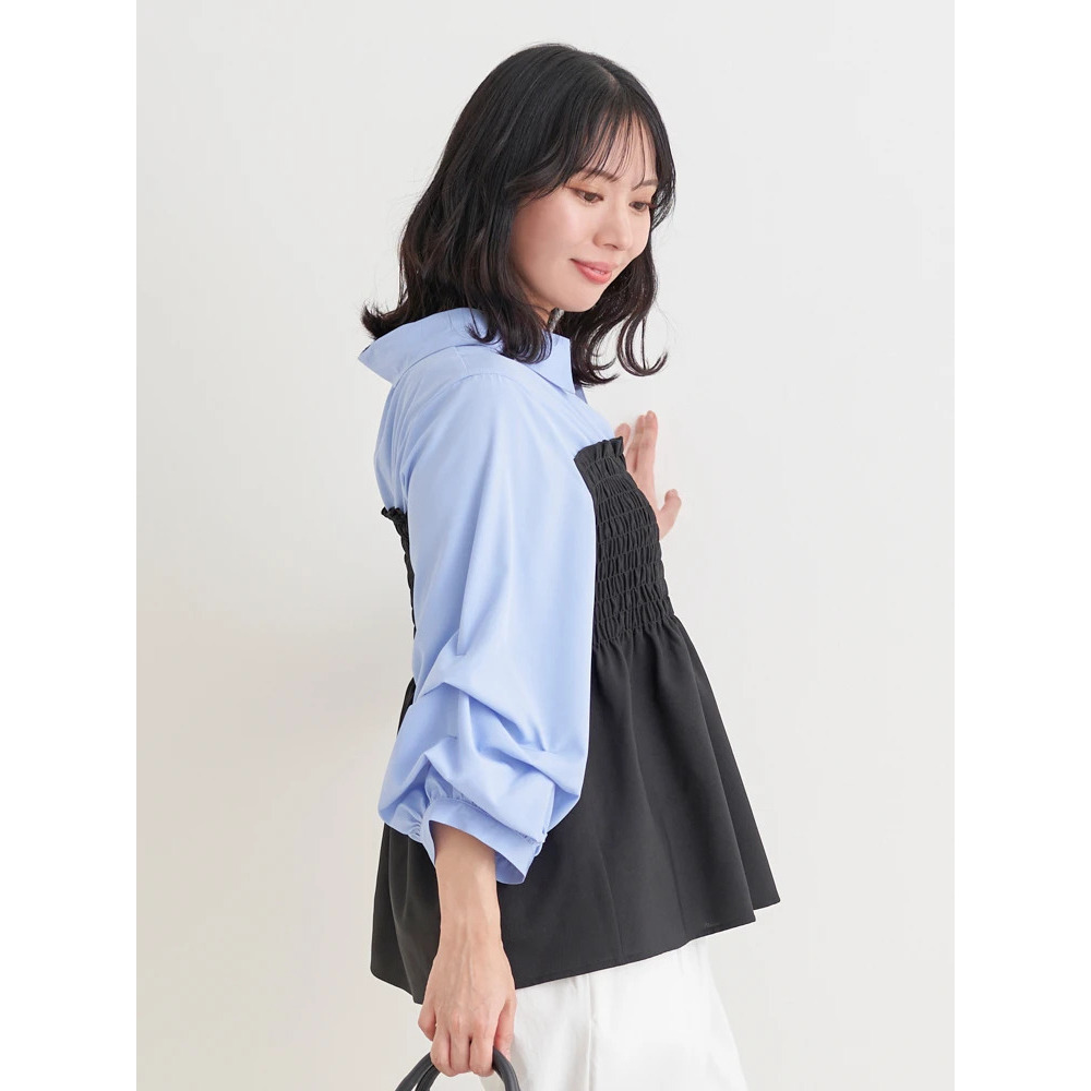 透け感:ややあり(オフホワイト/B柄のシャツ部分)なし(青/A柄のシャツ部分と胸下切り替え無地部分)
