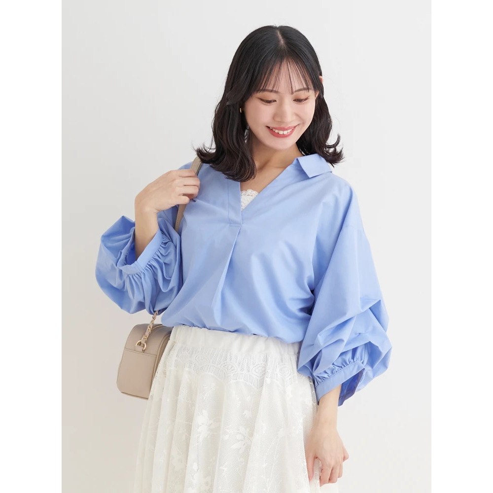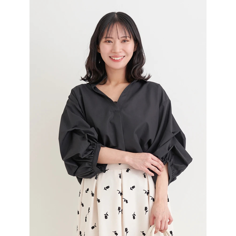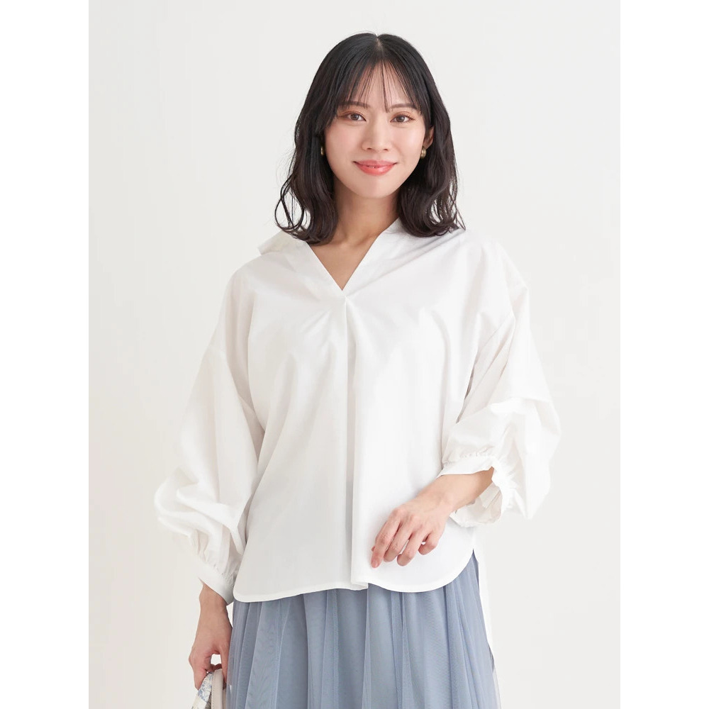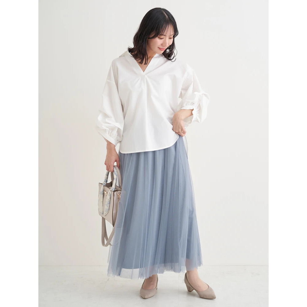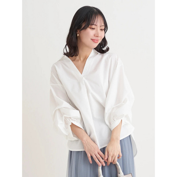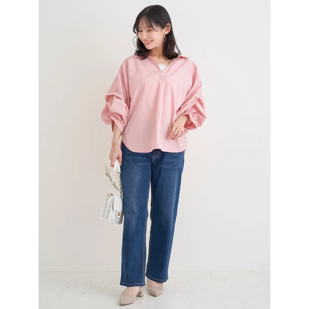・タックを施したボリューム感のある袖がスタイリングにこなれたニュアンスをプラス。