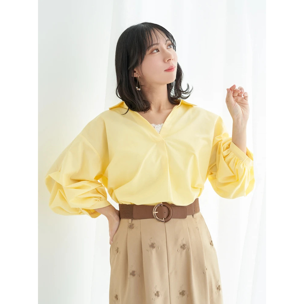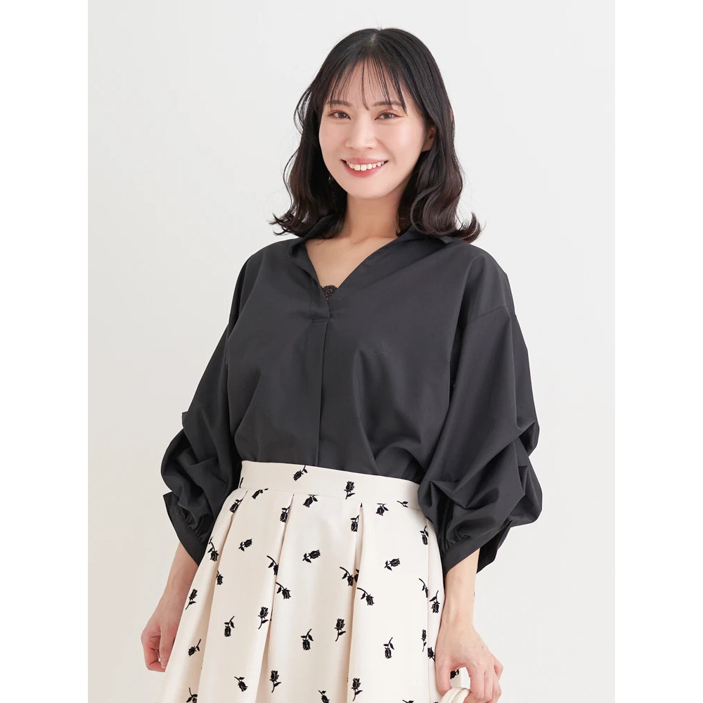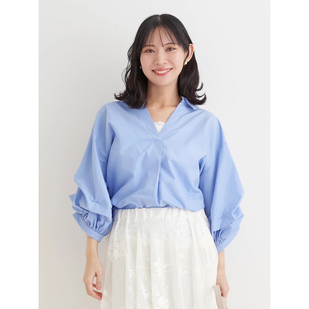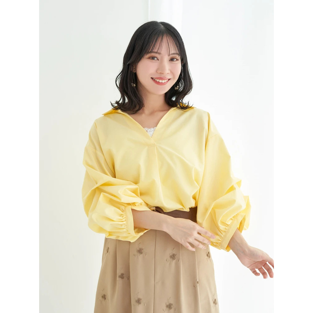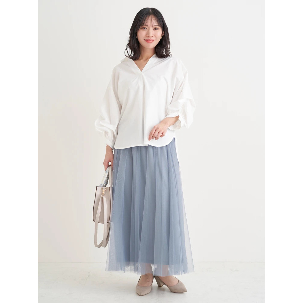 ・タックを施したボリューム感のある袖がスタイリングにこなれたニュアンスをプラス。