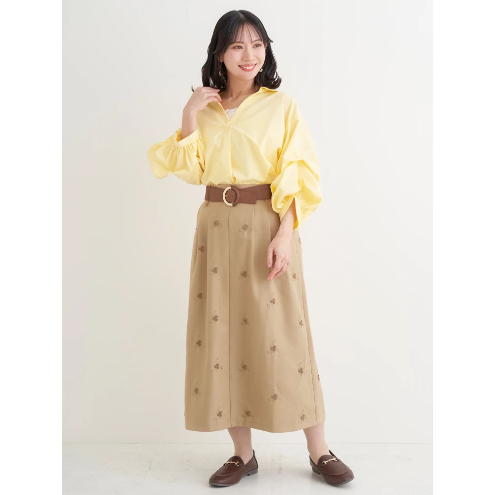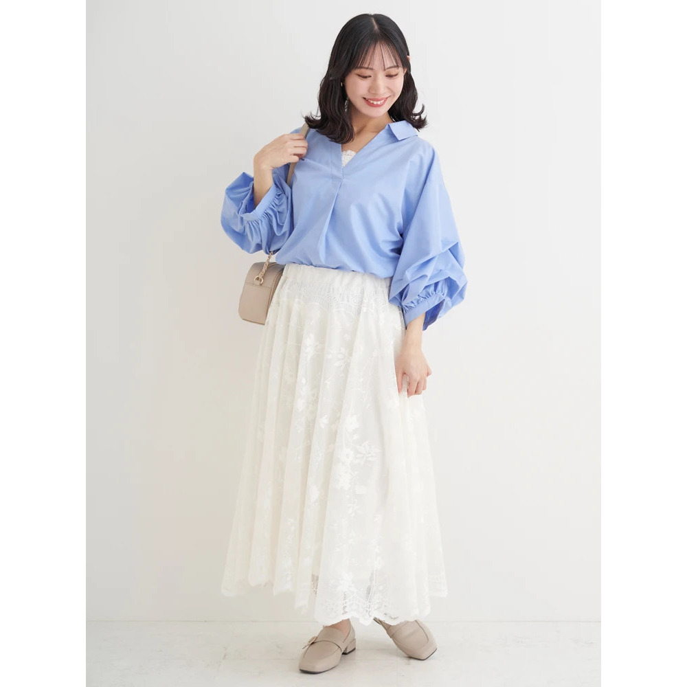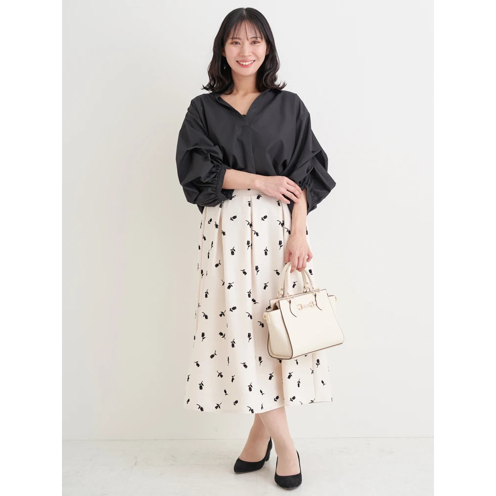 スカートと合わせればエレガントな印象に。柄物アイテムとも好相性の着回し力抜群の1枚です!