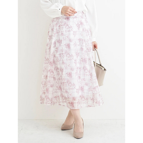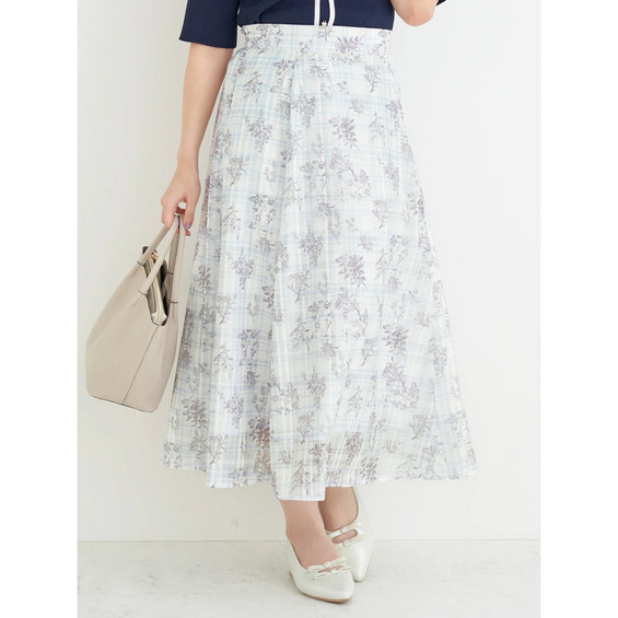・チェック柄×花柄プリントを施したデザインが大人フェミニンなムードをプラス。
