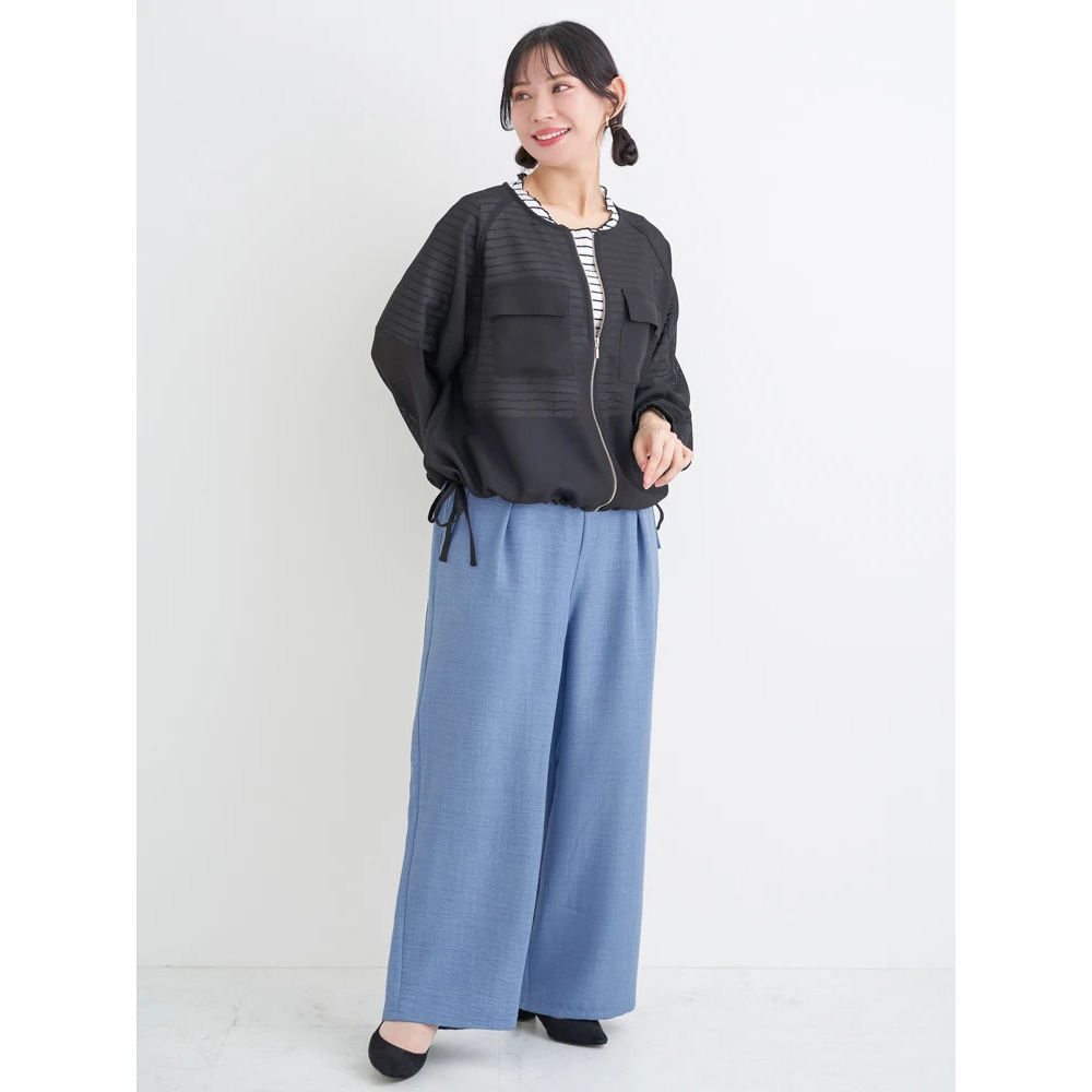 デニムボトムスやカーブパンツなどを合わせればカジュアルに。