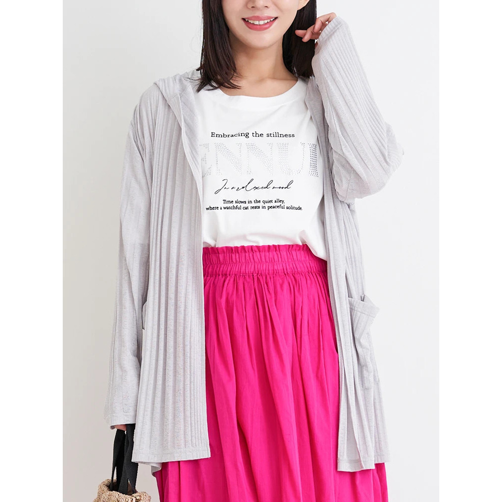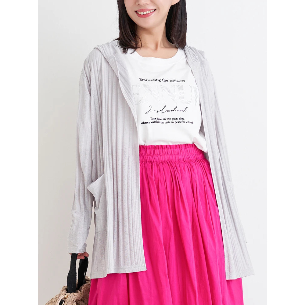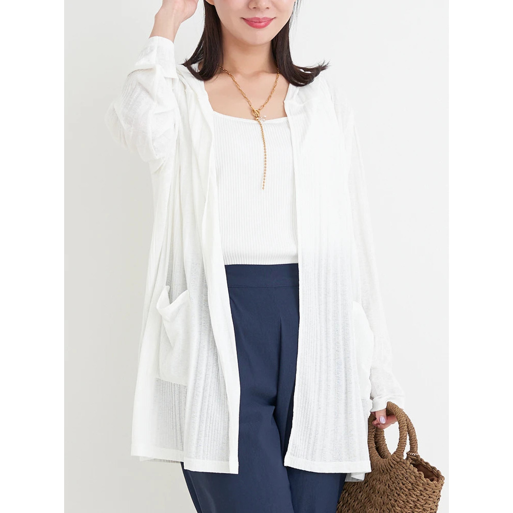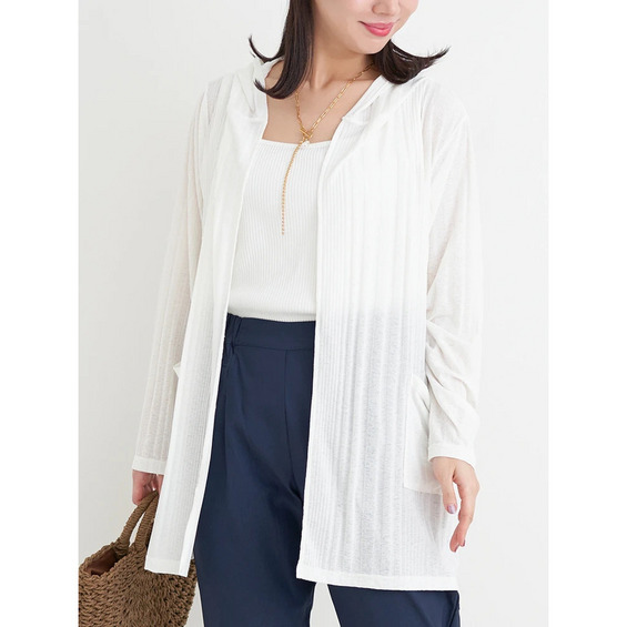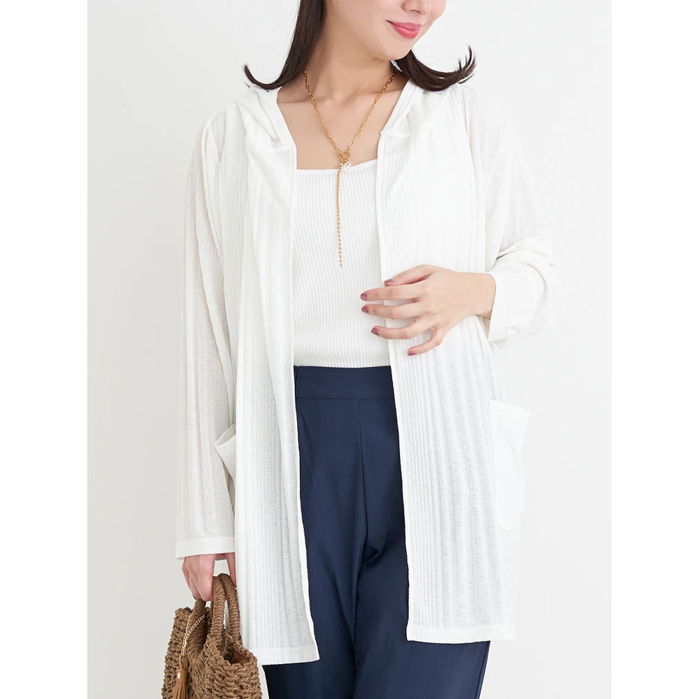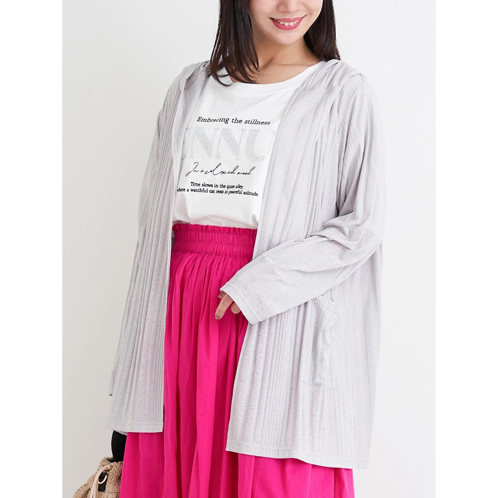 【吸水速乾・UVケア】ランダムリブフード付きトッパーカーディガン