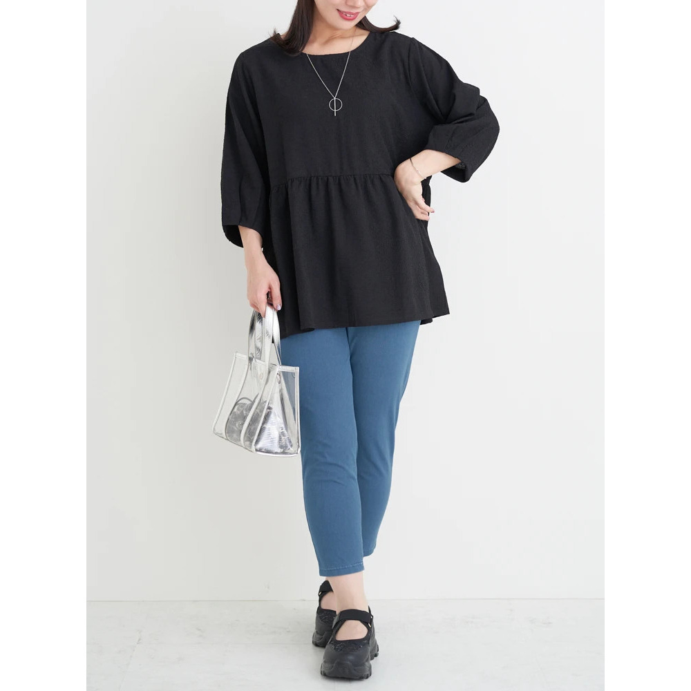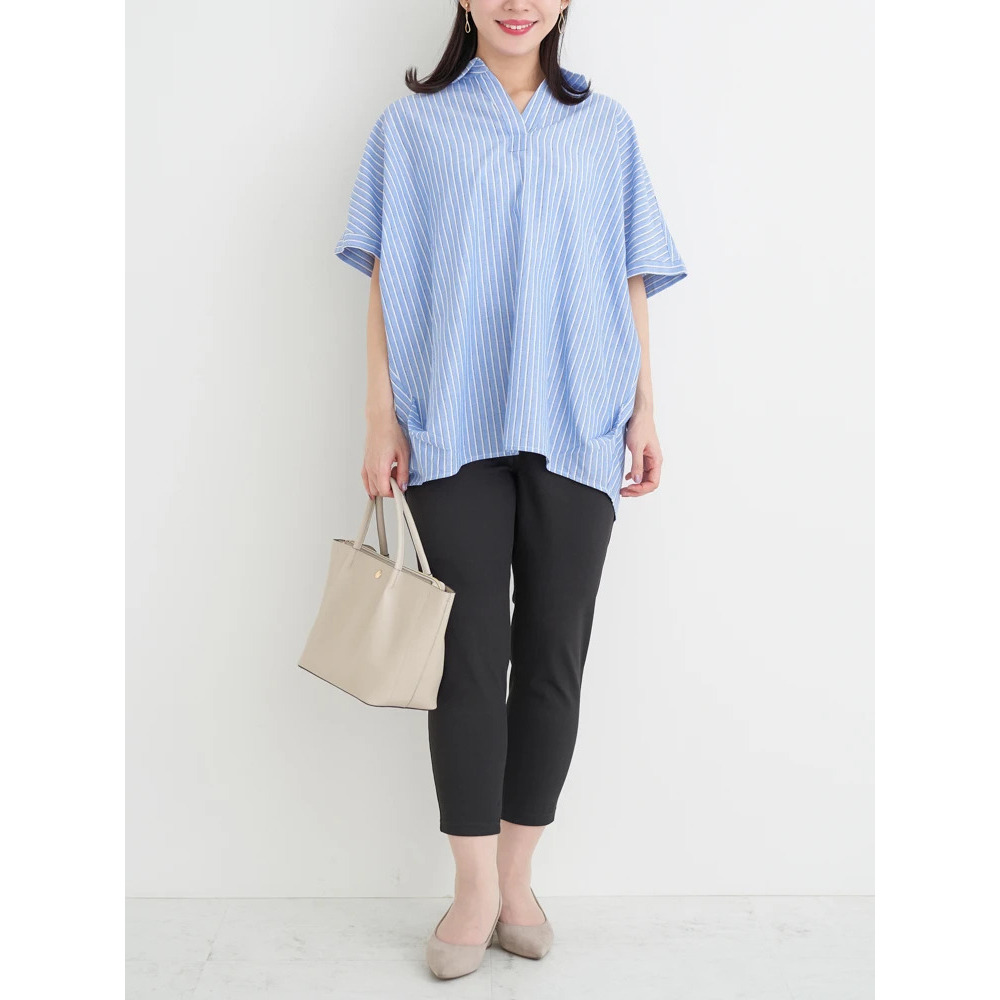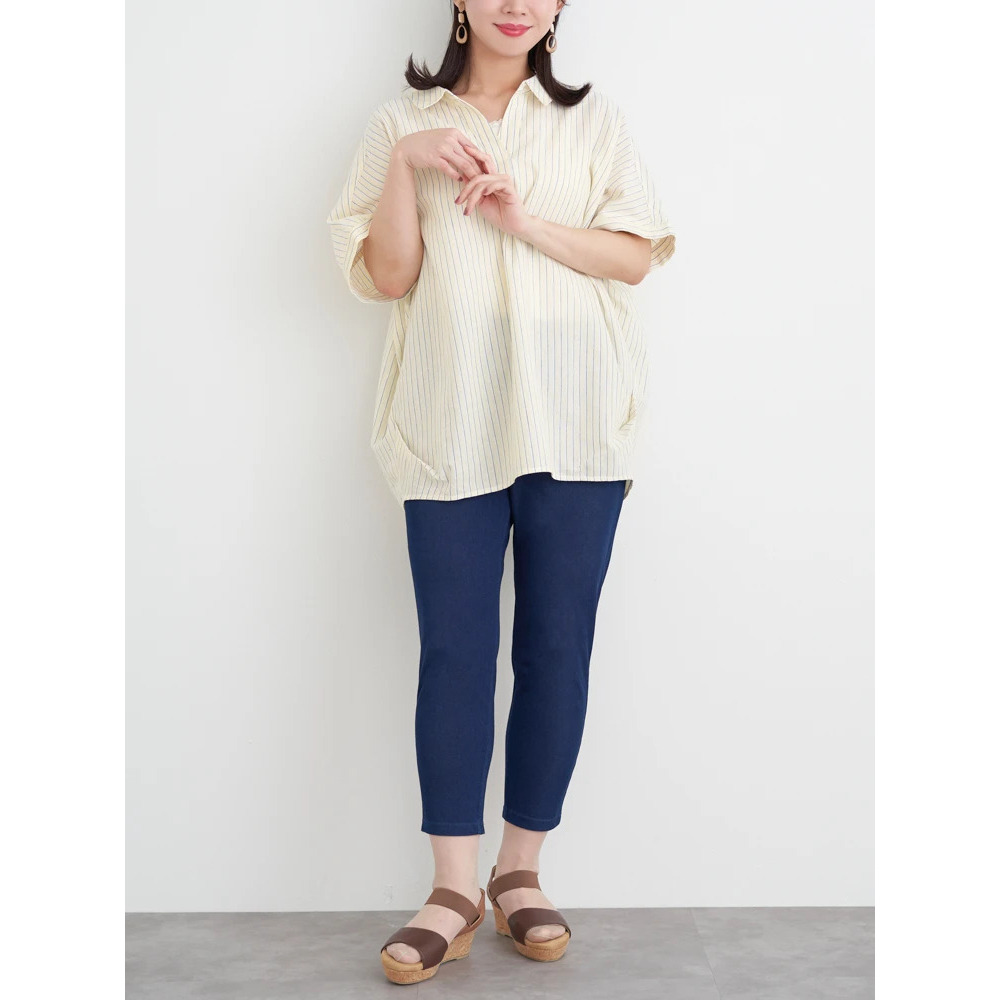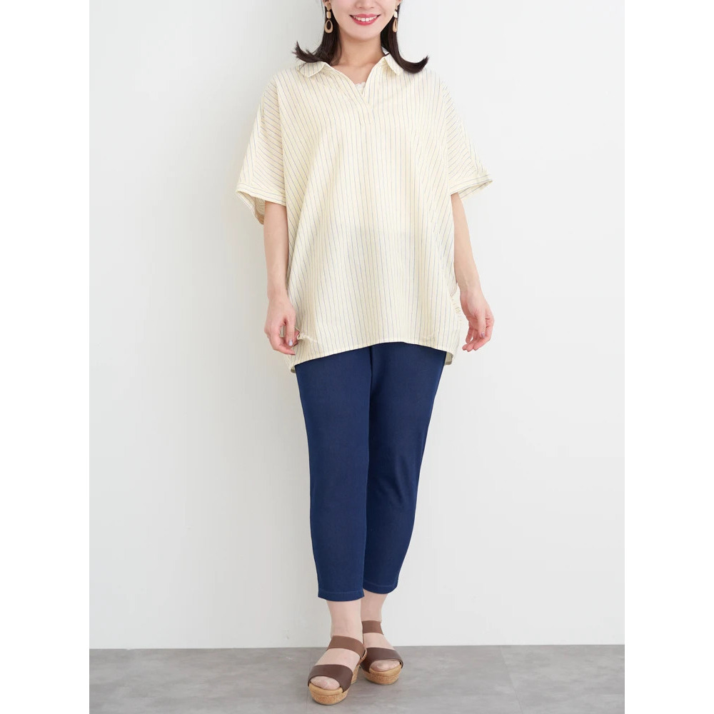 ゆったりシルエットのシャツや、ペプラムシルエットやチュニック丈のトップスとのコーディネートがおすすめです!