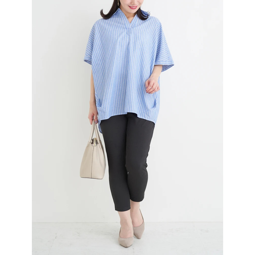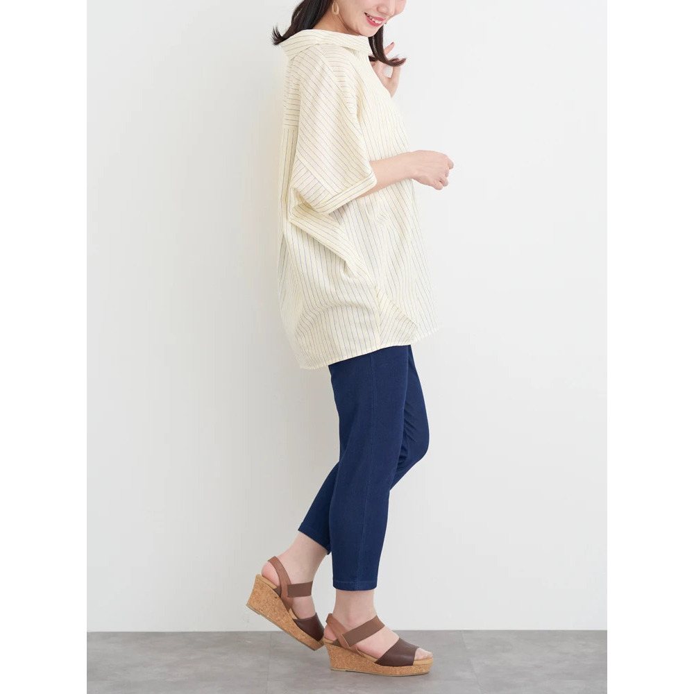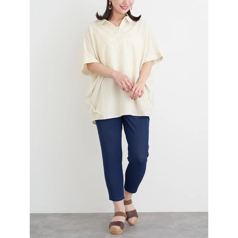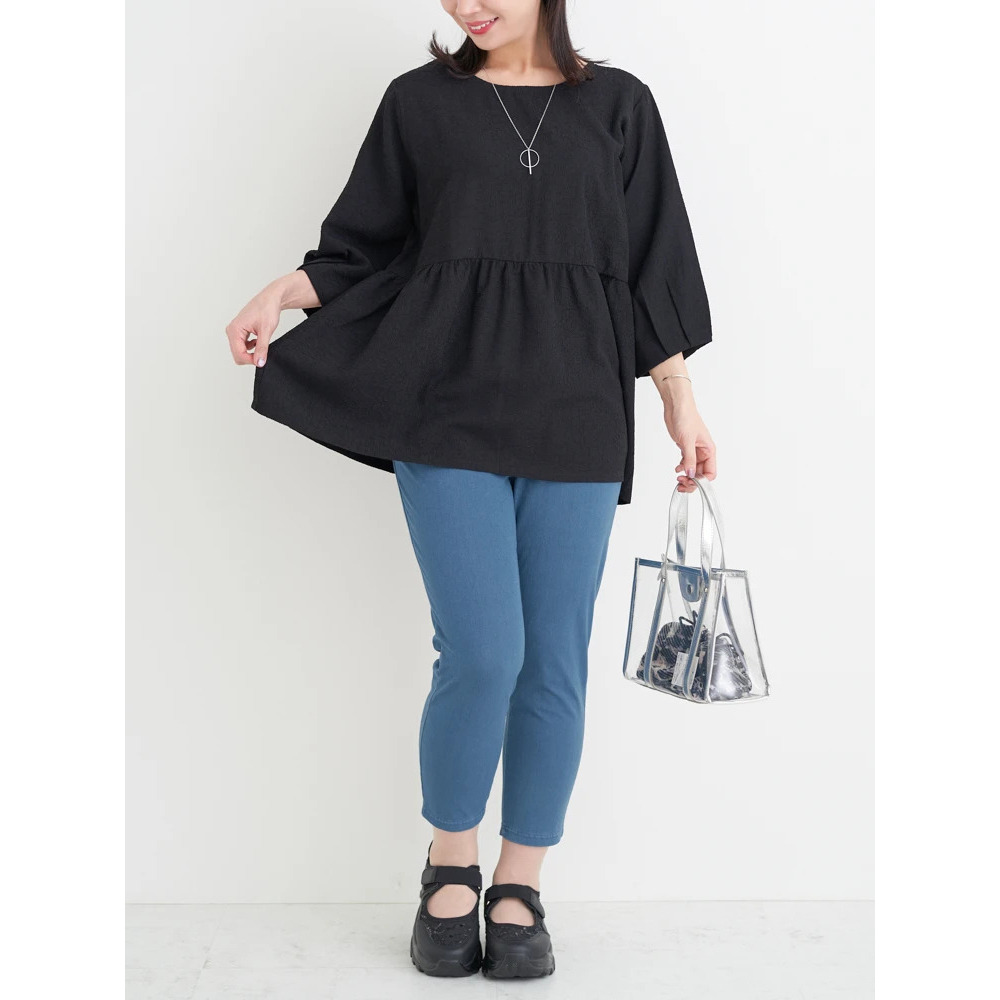 ゆったりシルエットのシャツや、ペプラムシルエットやチュニック丈のトップスとのコーディネートがおすすめです!
