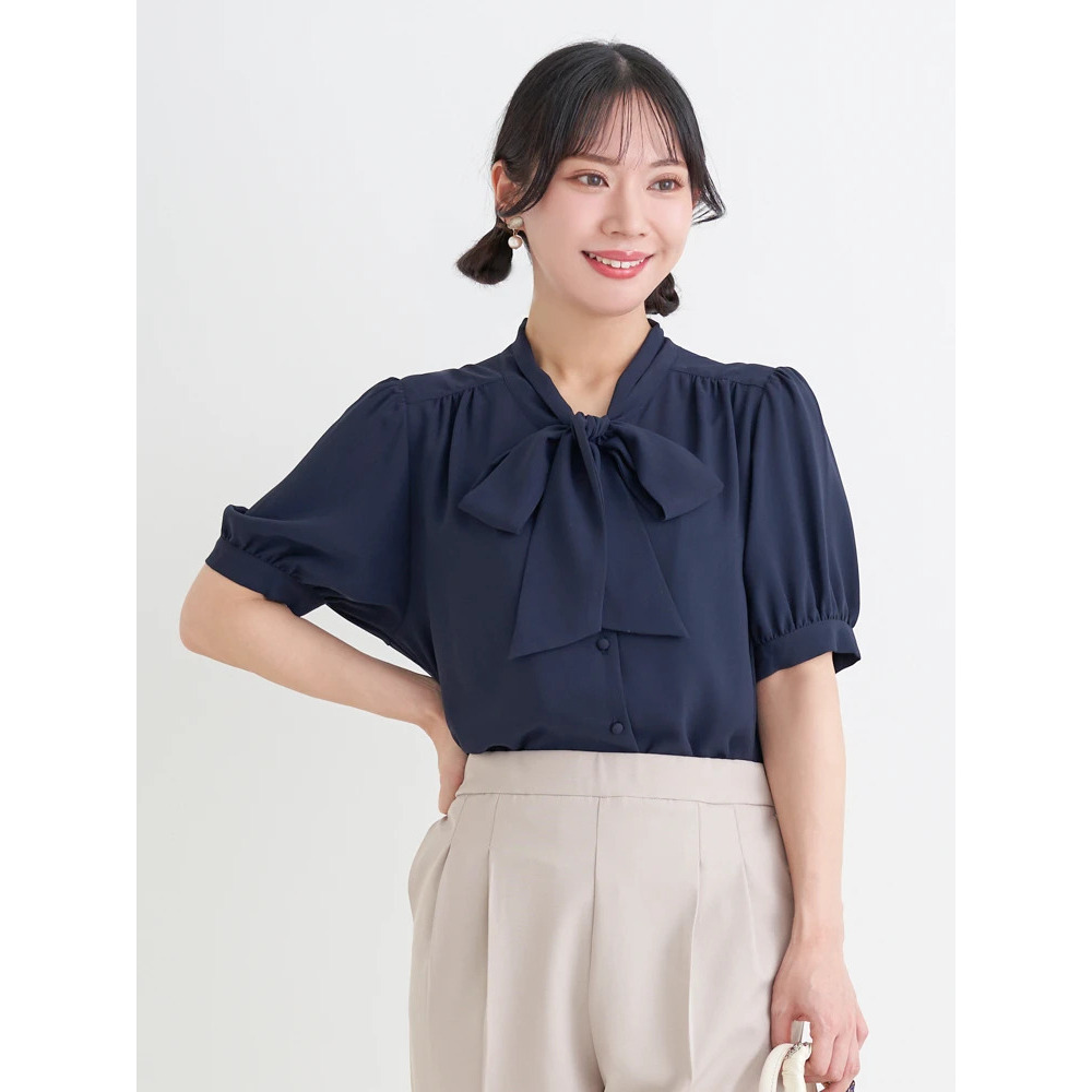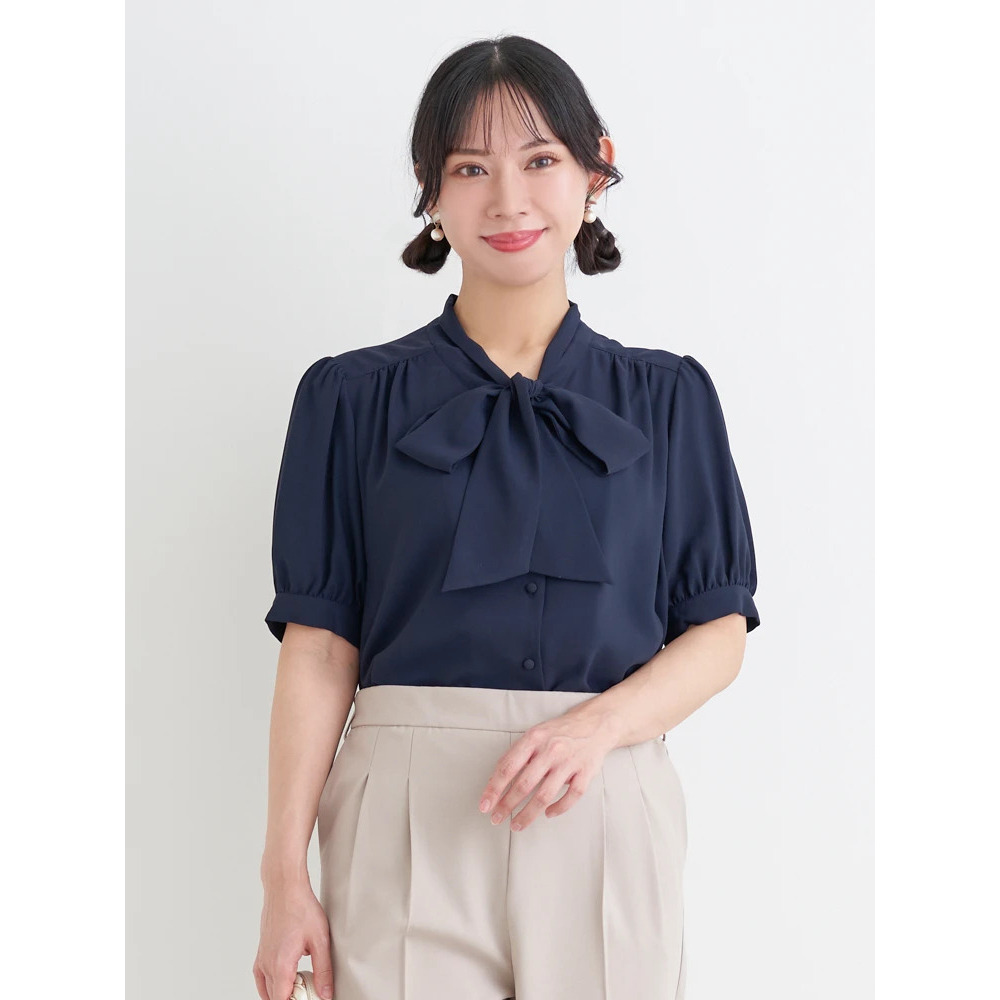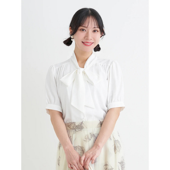 ・ボウタイデザインが顔周りを華やかな印象に演出。