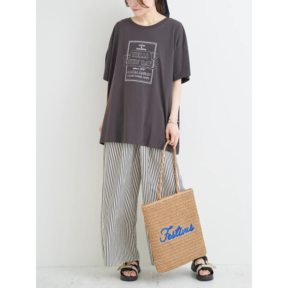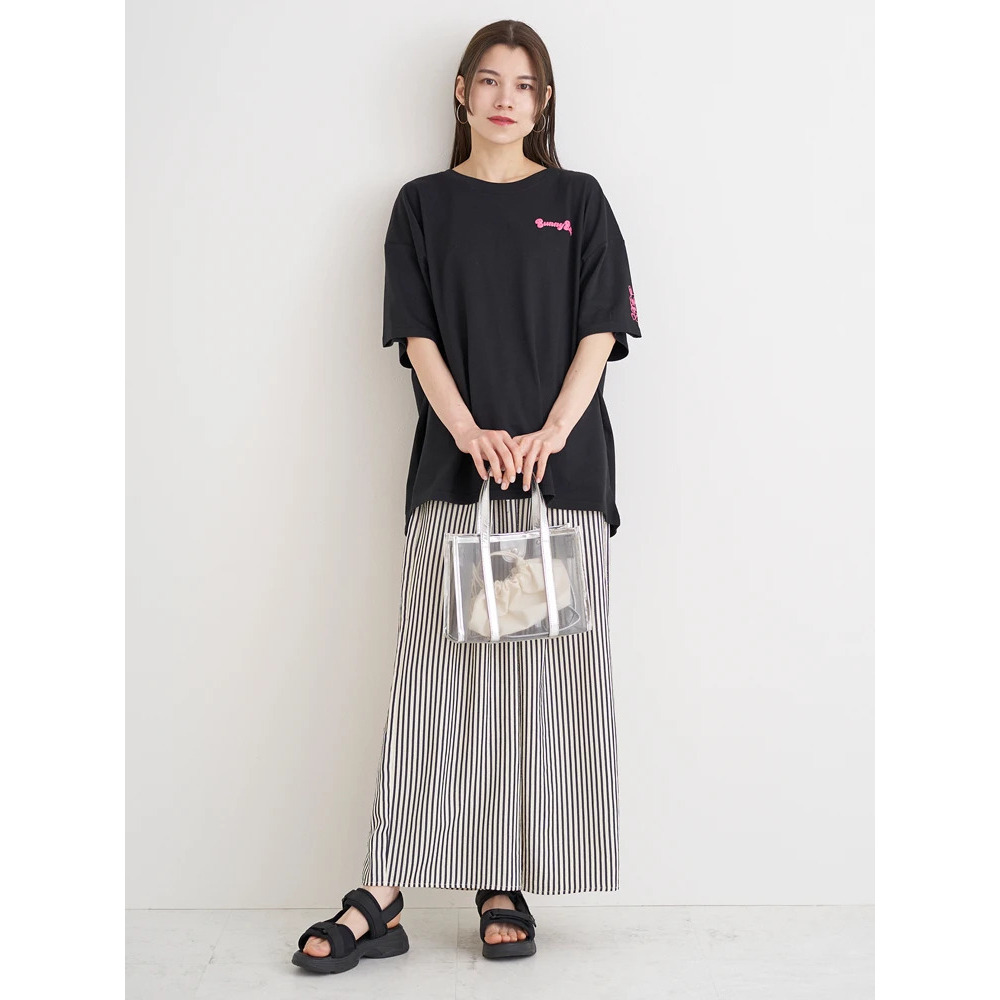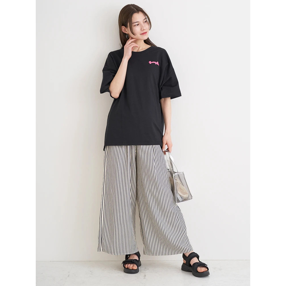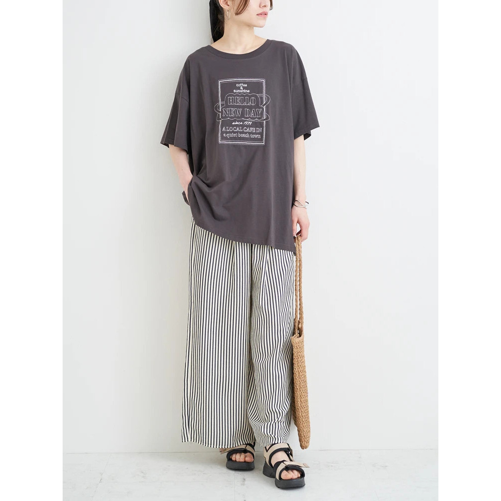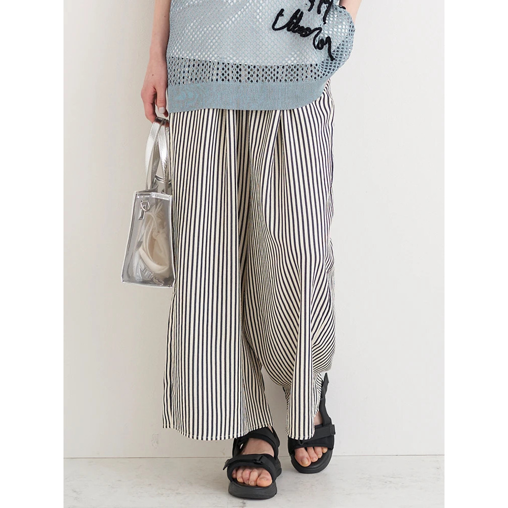 シンプルなトップスに合わせるだけでもストライプ柄がコーデのアクセントに♪