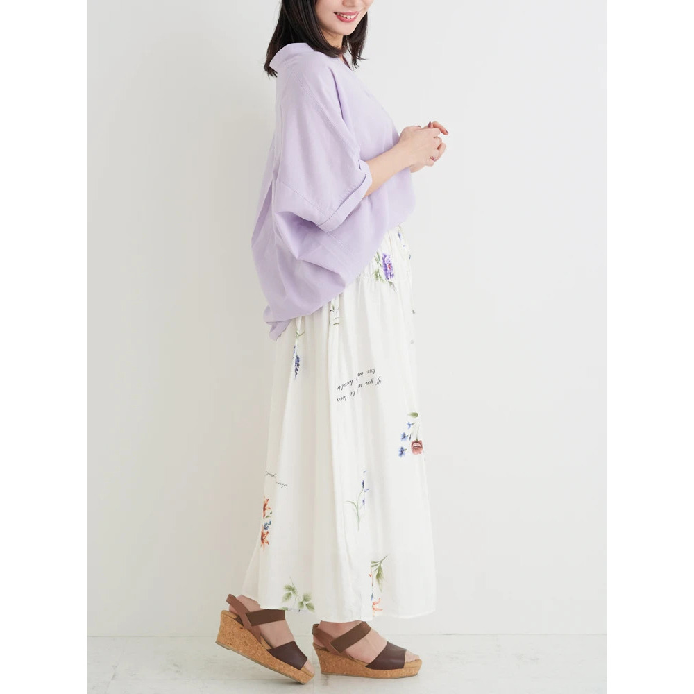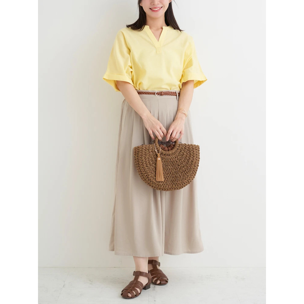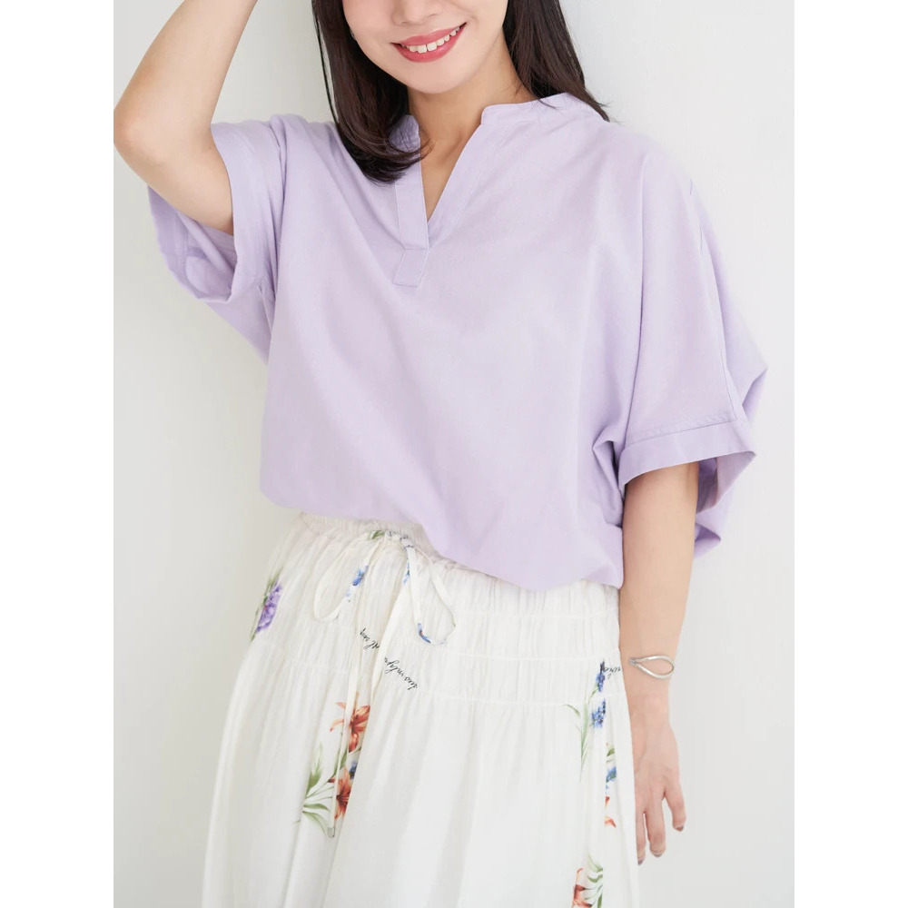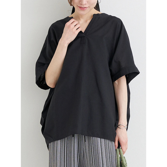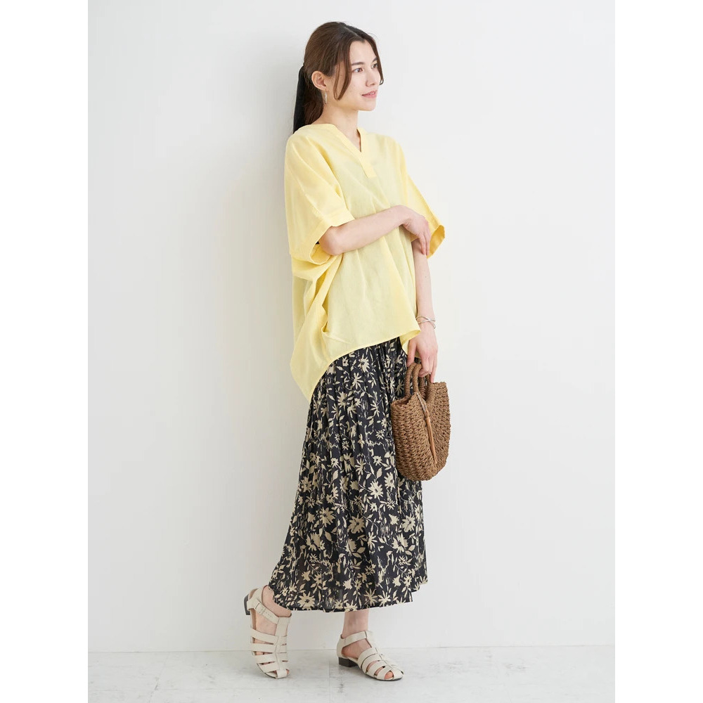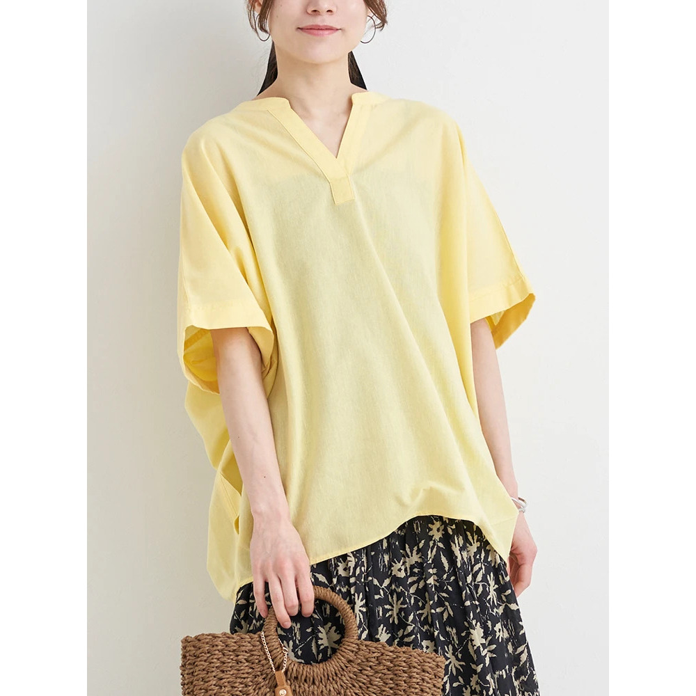 【涼風リネン】スキッパーネックバンドカラーブラウス