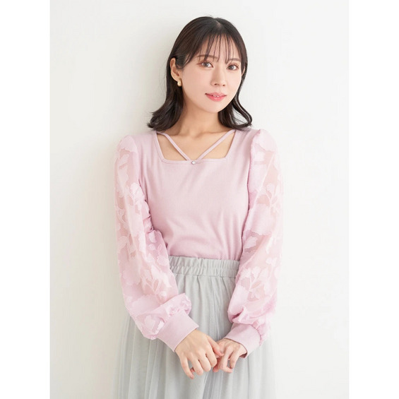 ・袖部分の花柄シアー素材が抜け感をプラスしレディーな雰囲気に♡