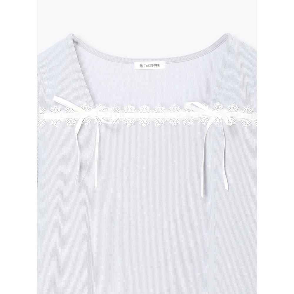 ややシャリ感があるリブ素材×繊細な透け感が魅力のレース×光沢感のあるリボン