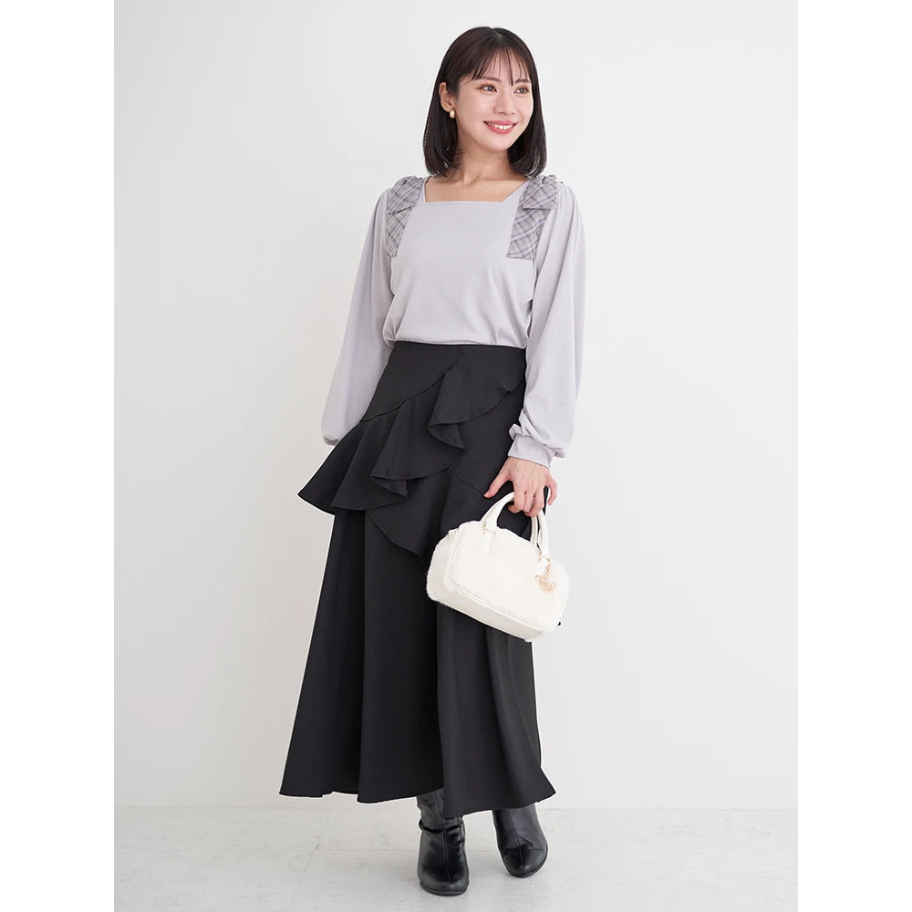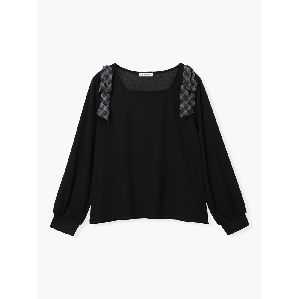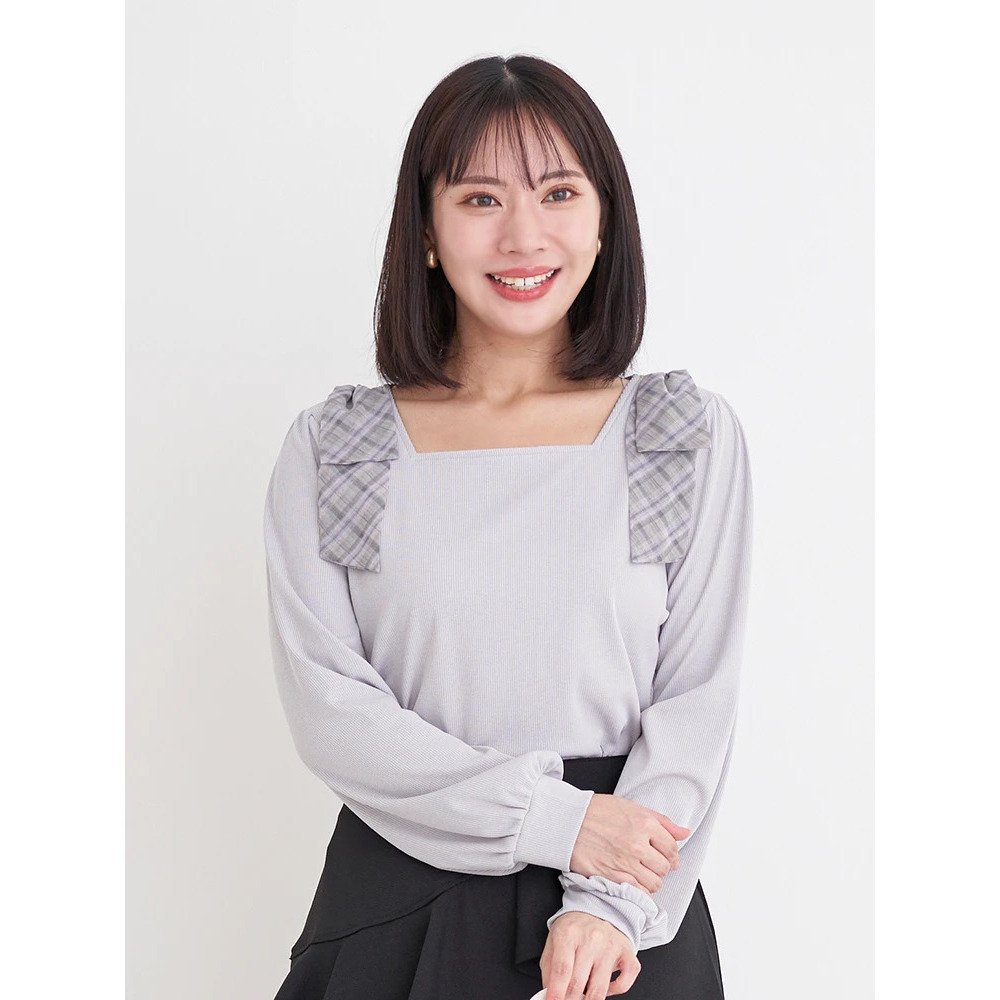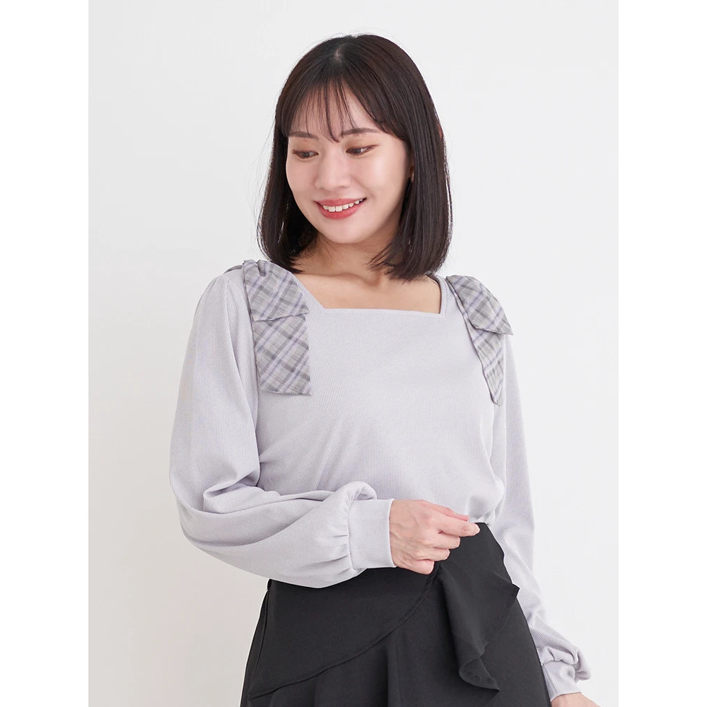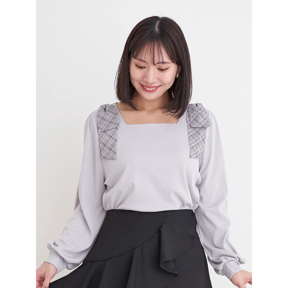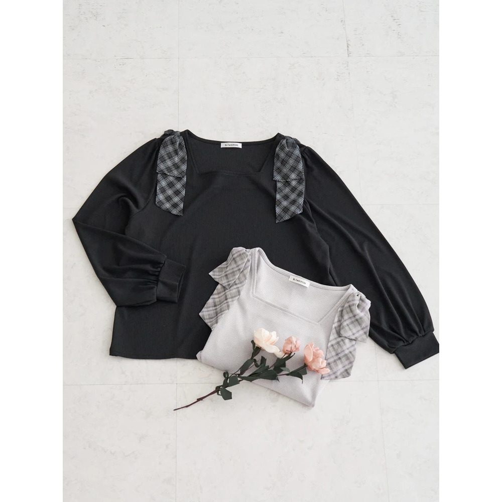 • チェック柄ショルダーリボントップス21