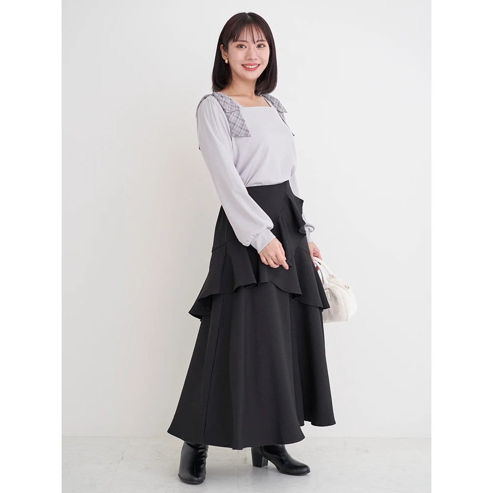 • チェック柄ショルダーリボントップス12