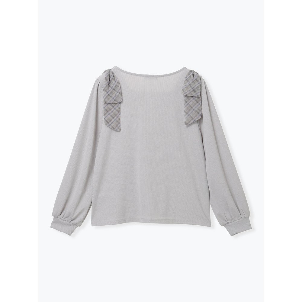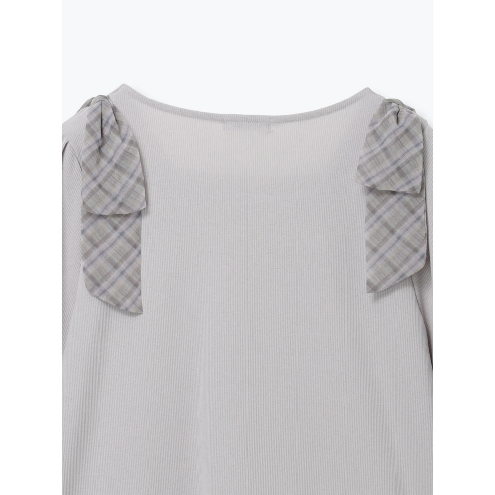 • チェック柄ショルダーリボントップス20