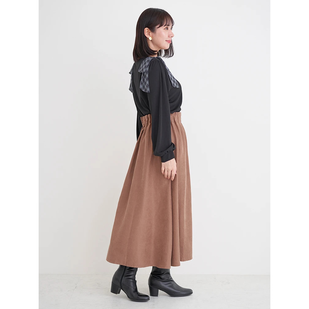 リボン部分はチェック柄シフォン素材を使用。