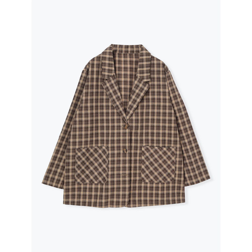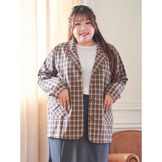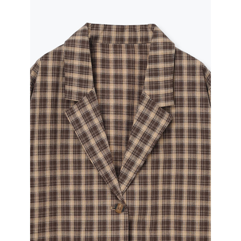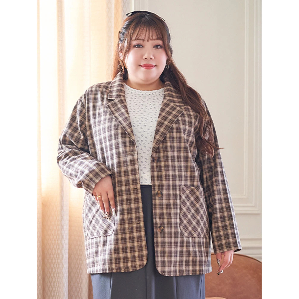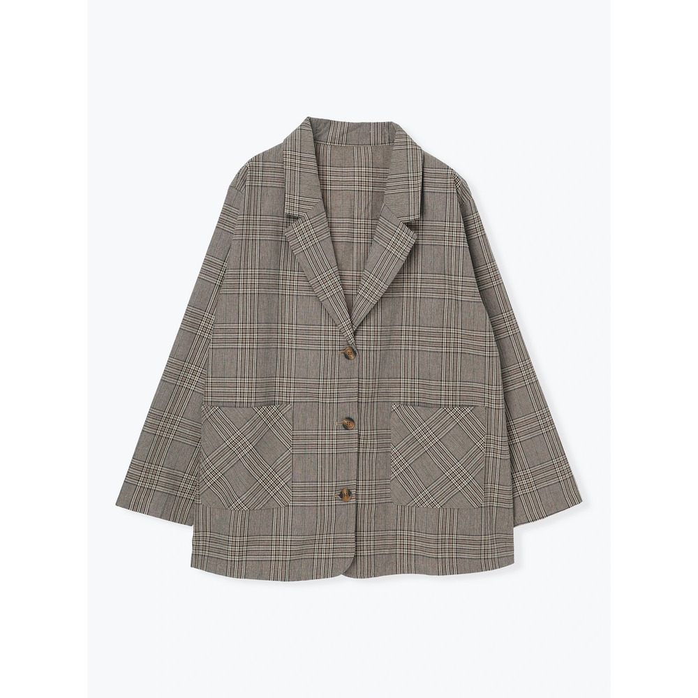 トラッドなイメージの チェックジャケットを、抜け感のあるゆるシルエットでカジュアルにシフト。
