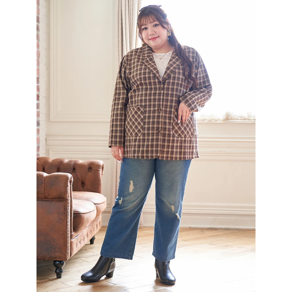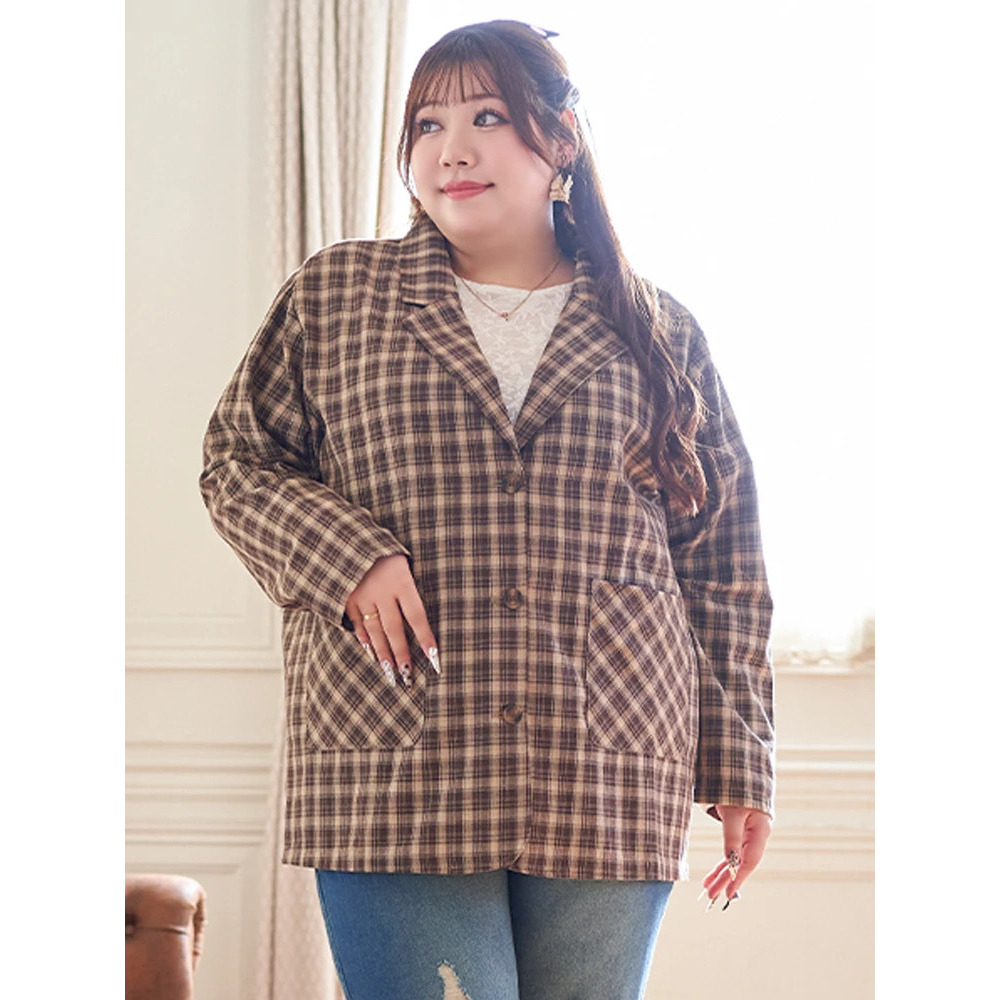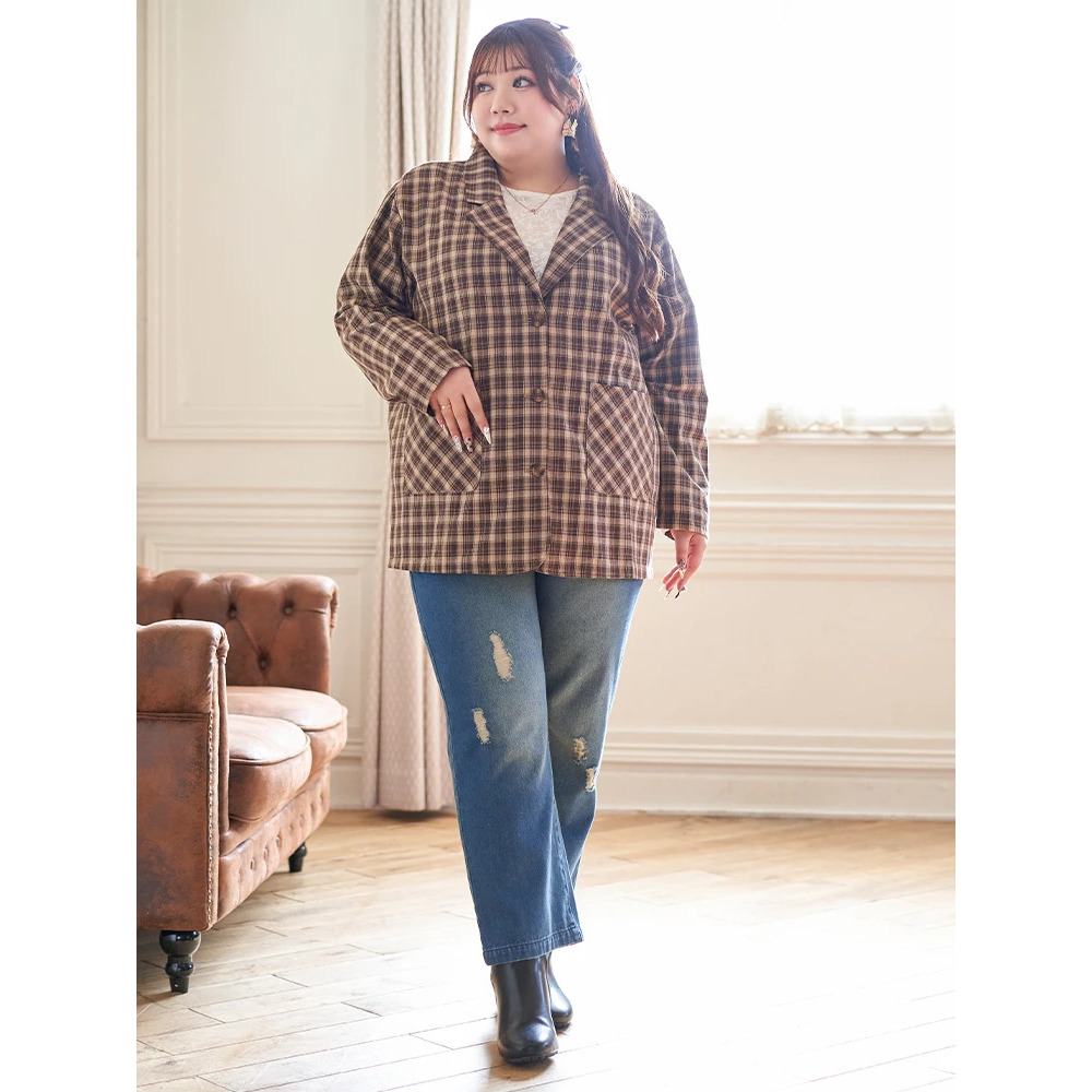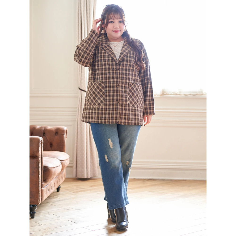 トラッドなイメージの チェックジャケットを、抜け感のあるゆるシルエットでカジュアルにシフト。
