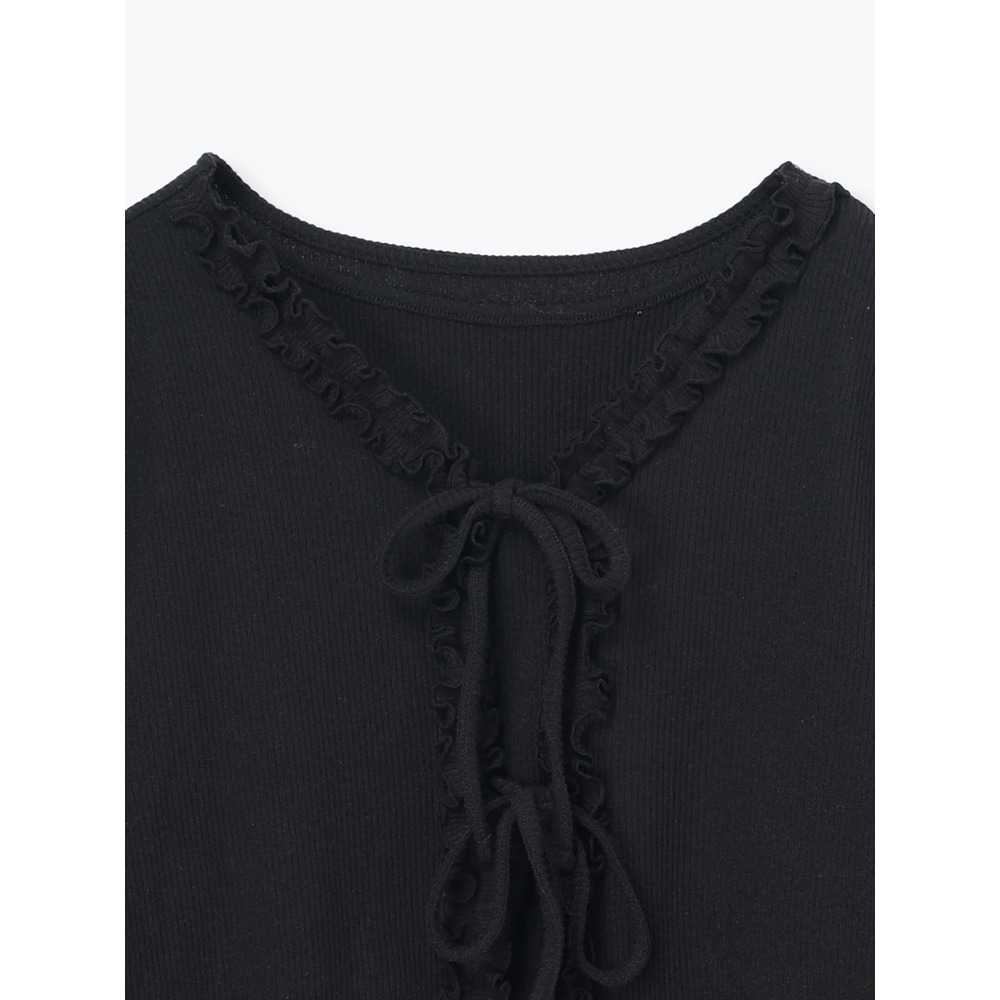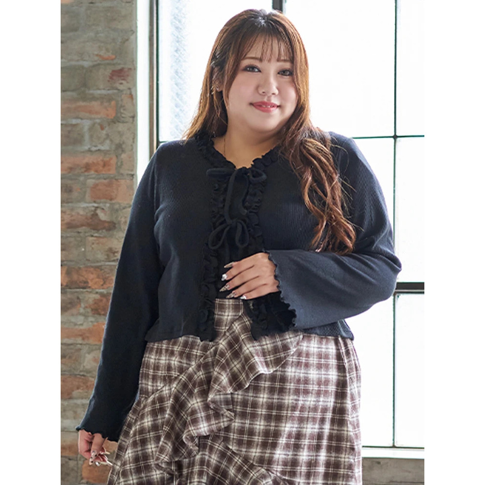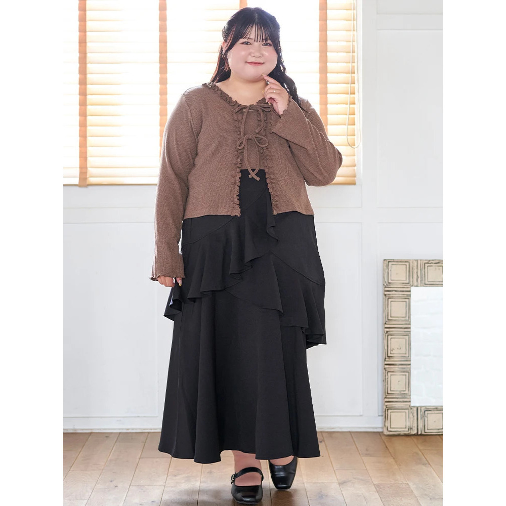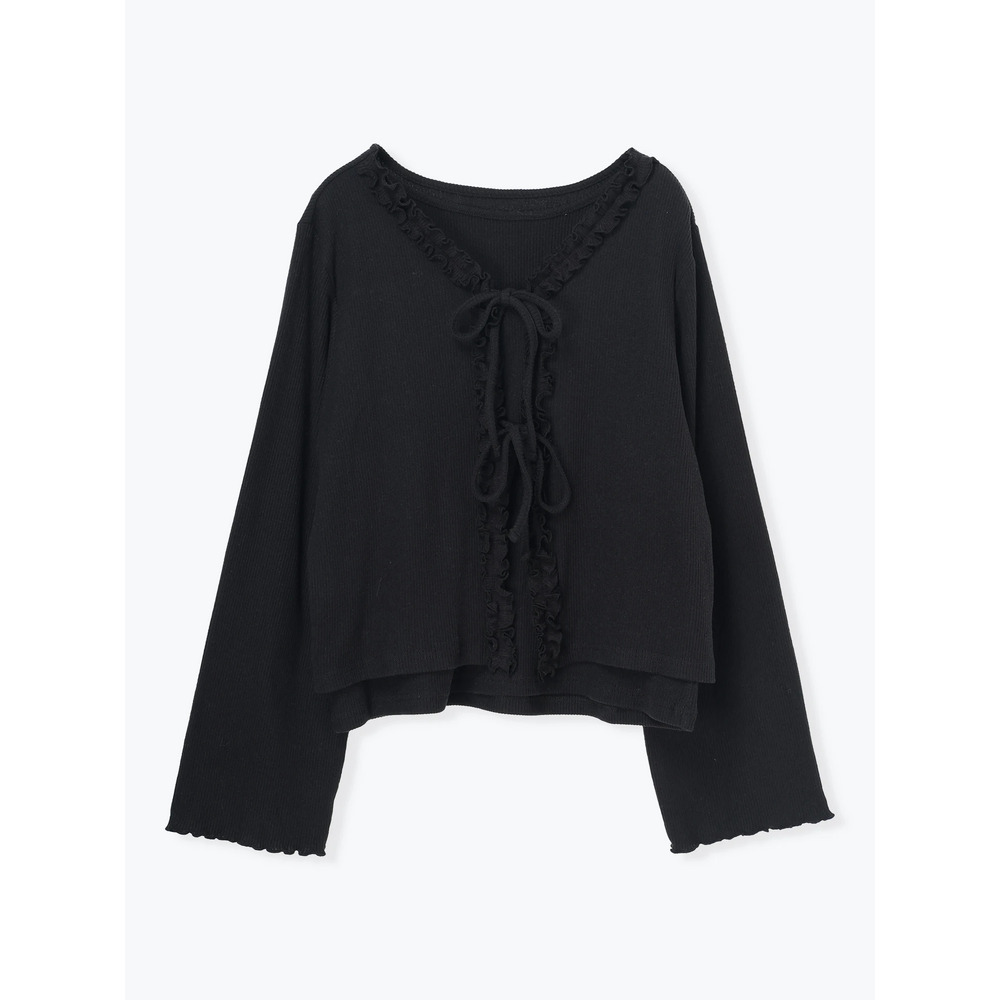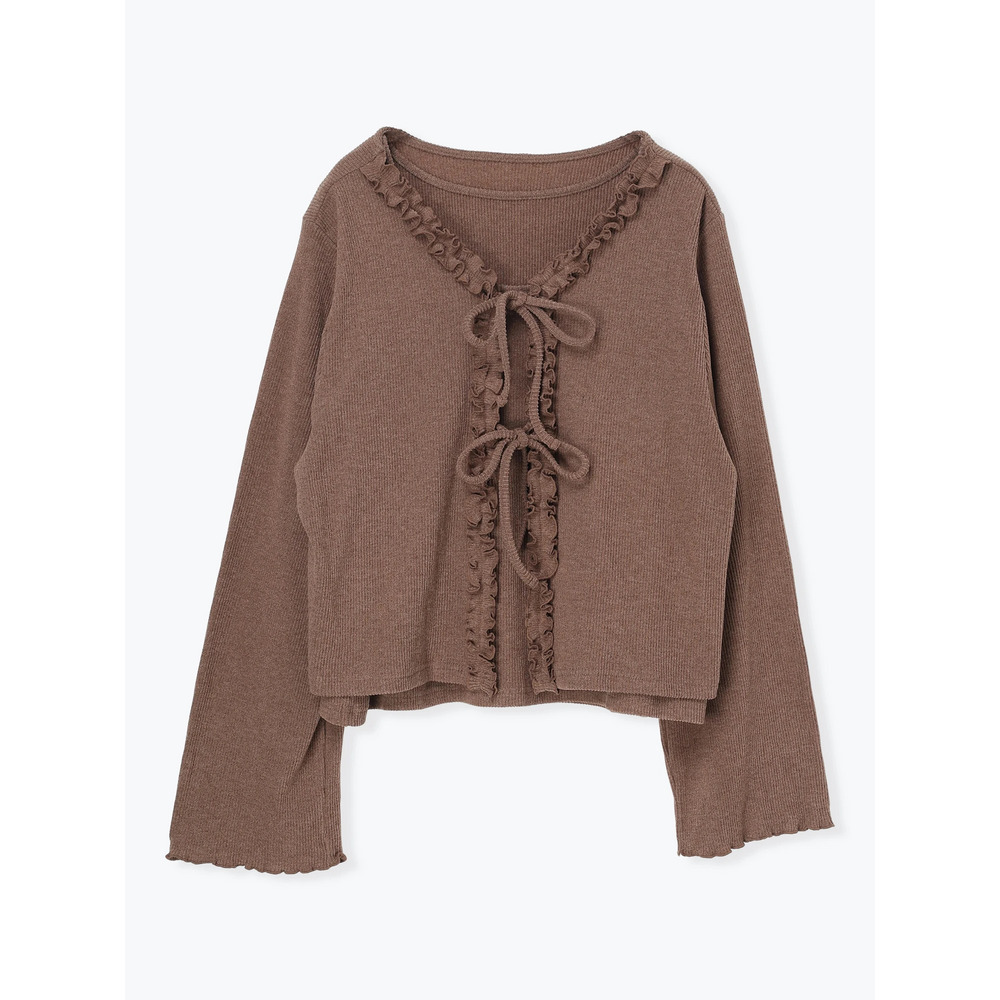 フロントにたっぷりあしらったフリルとリボンで甘さたっぷりな大人のガーリースタイルを叶えるアンサンブル。