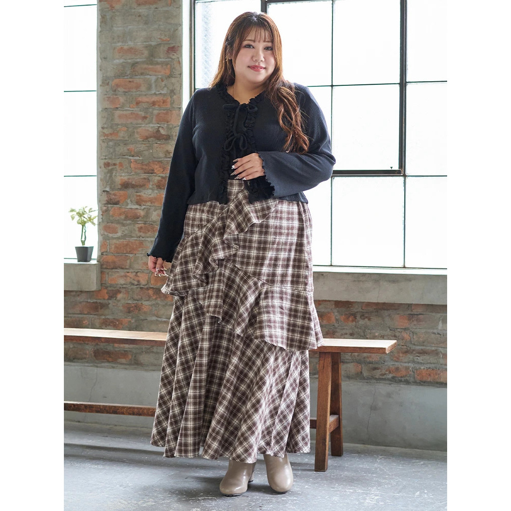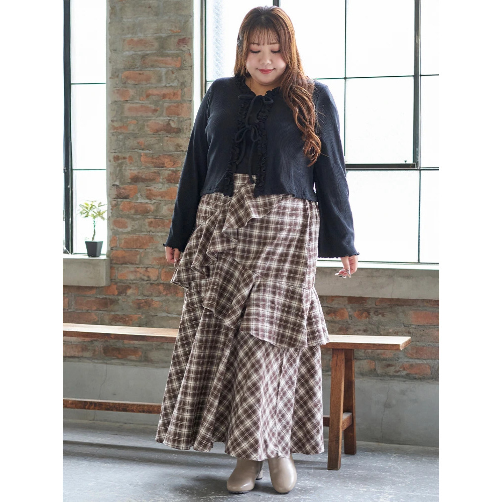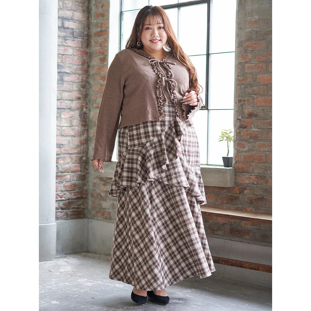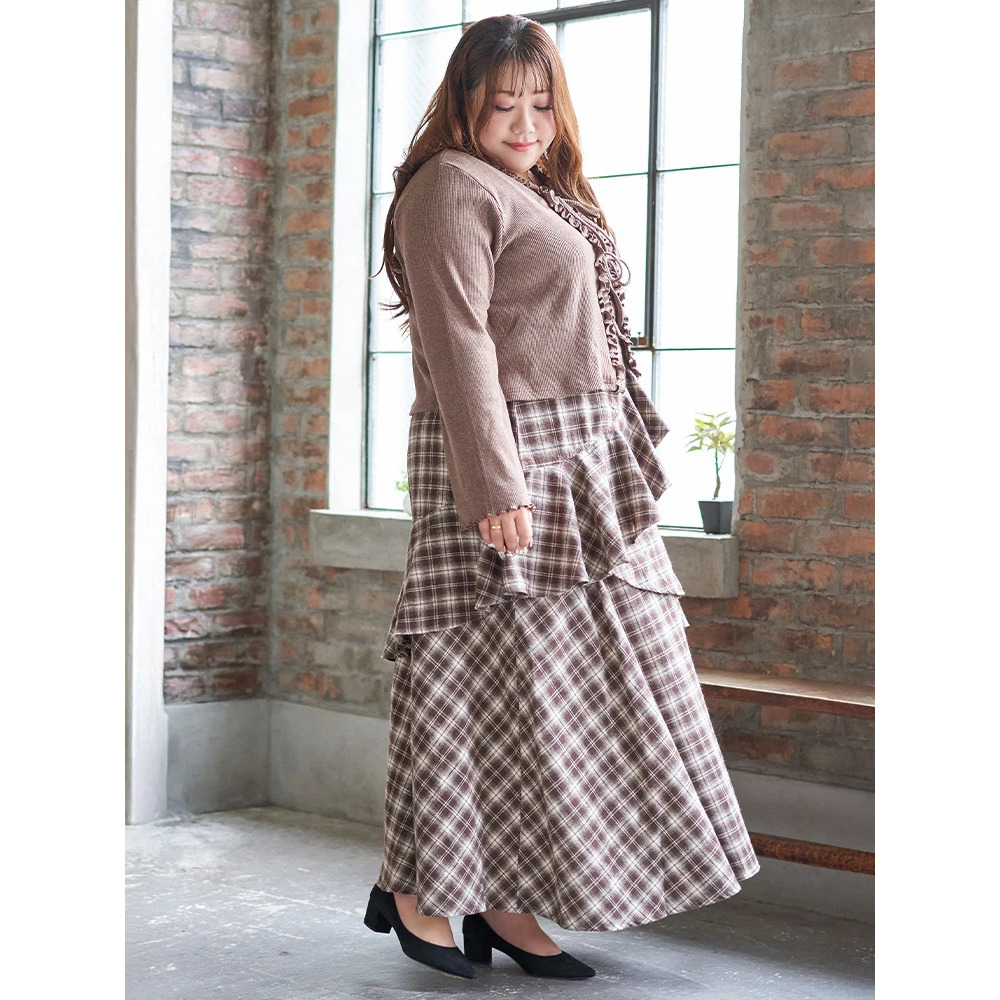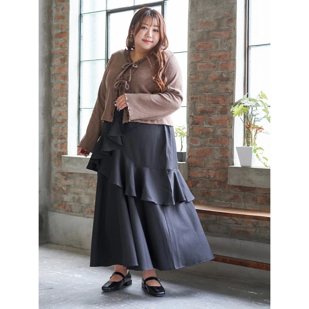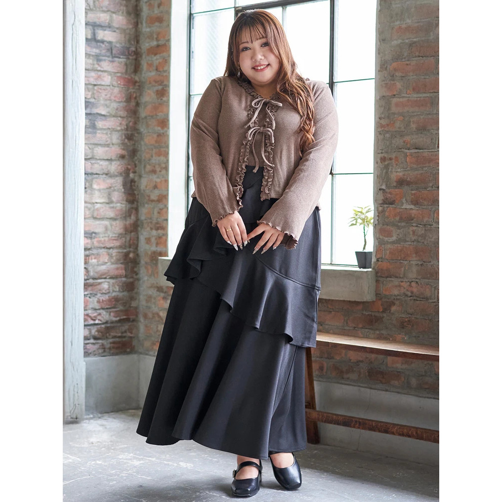 フロントにたっぷりあしらったフリルとリボンで甘さたっぷりな大人のガーリースタイルを叶えるアンサンブル。