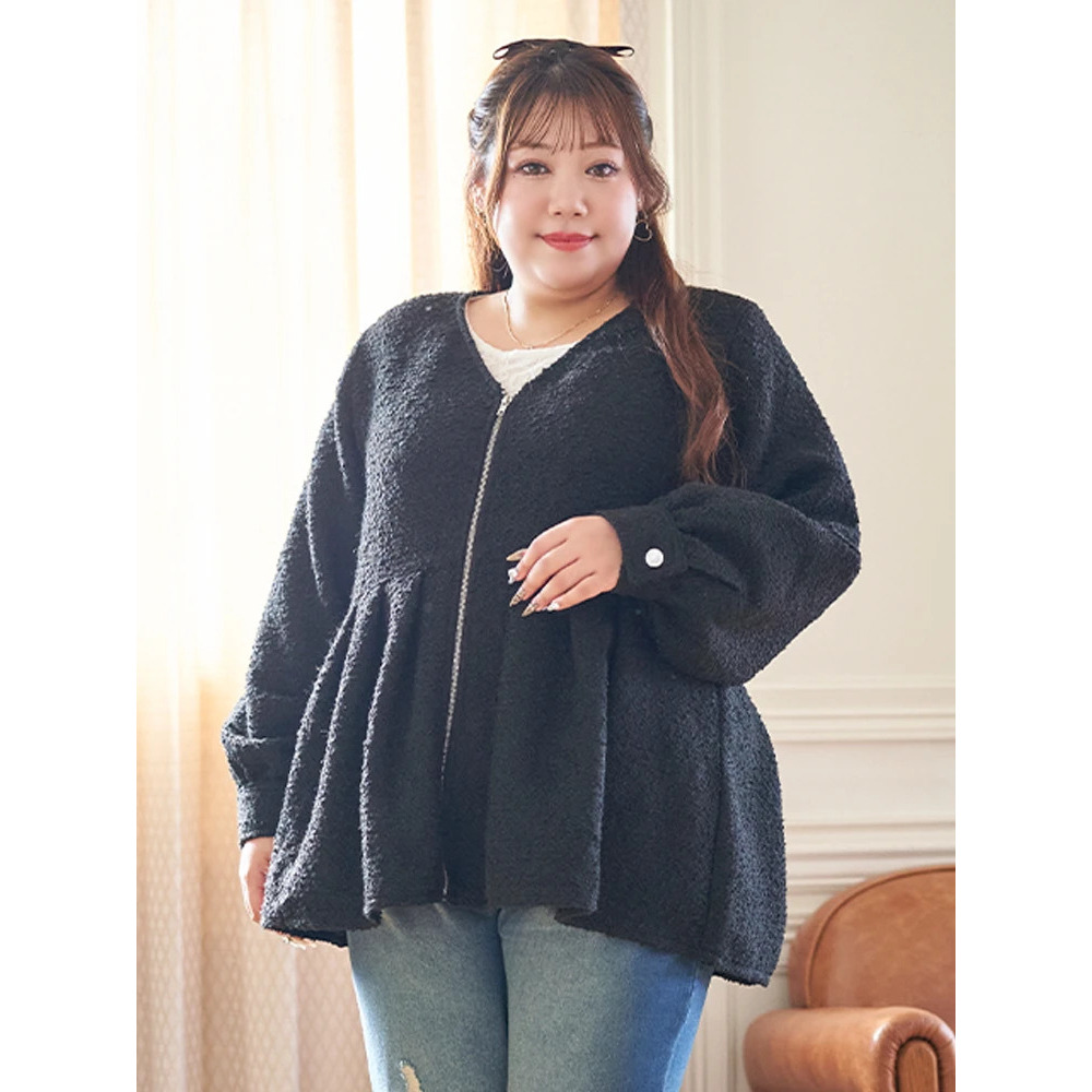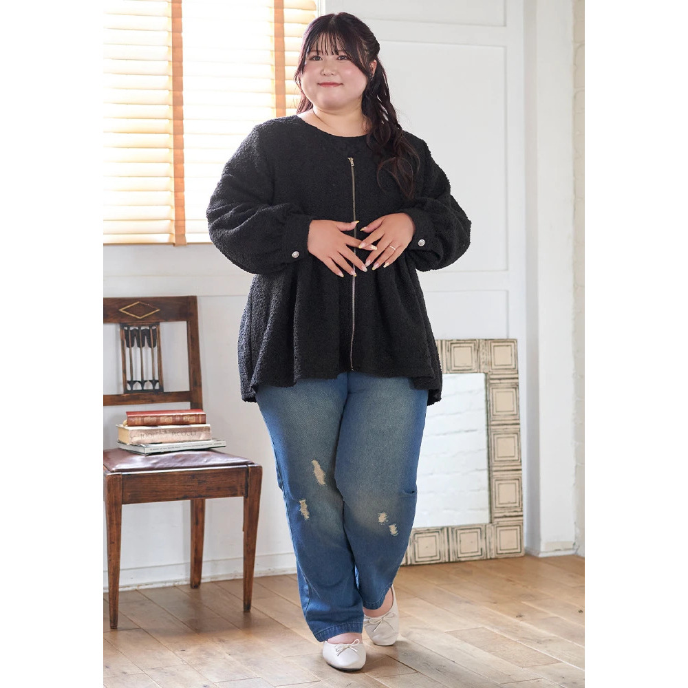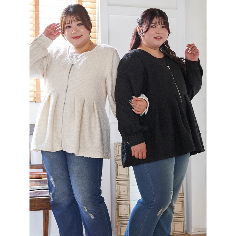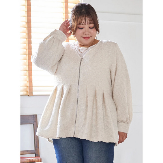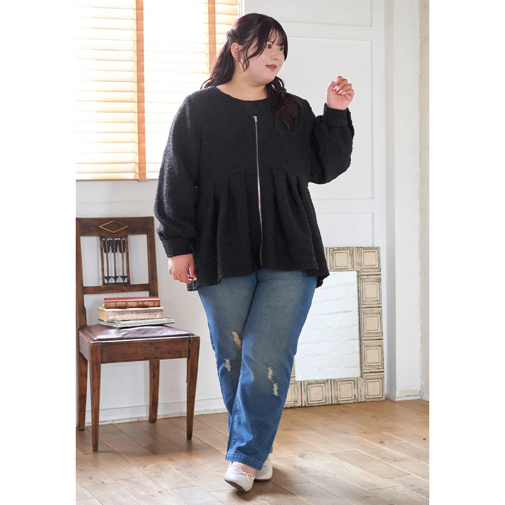 丈感にもこだわったので気になるお腹やお尻 腰まわりをすっぽりカバー♪パンツやタイトスカートなどラインを拾いやすいボトムスとの相性抜群! 前ジップなのできれいめにもカジュアルにも合わせやすいアイテムです◎