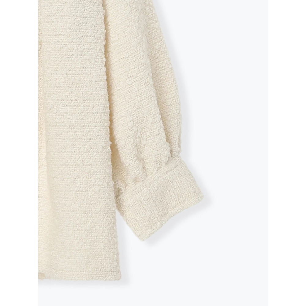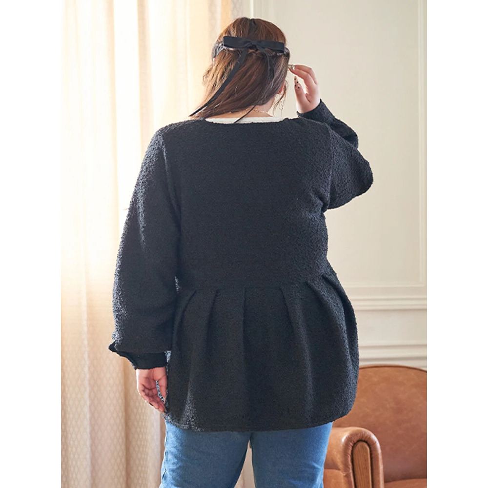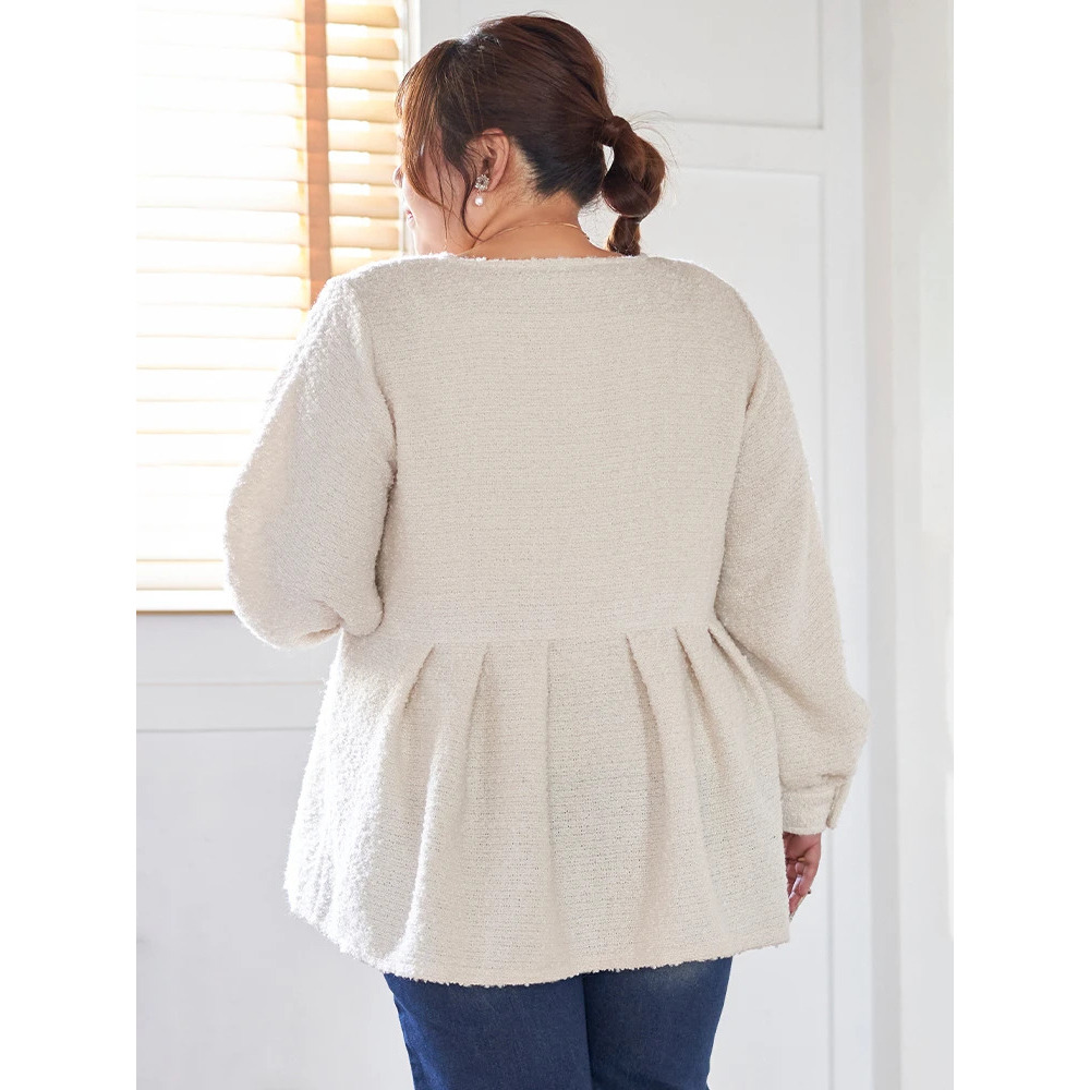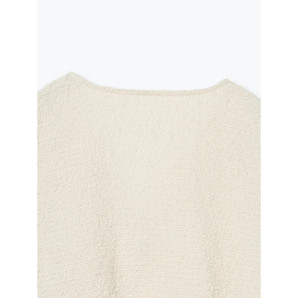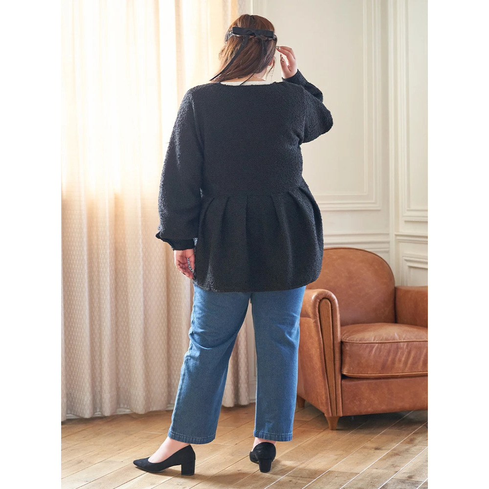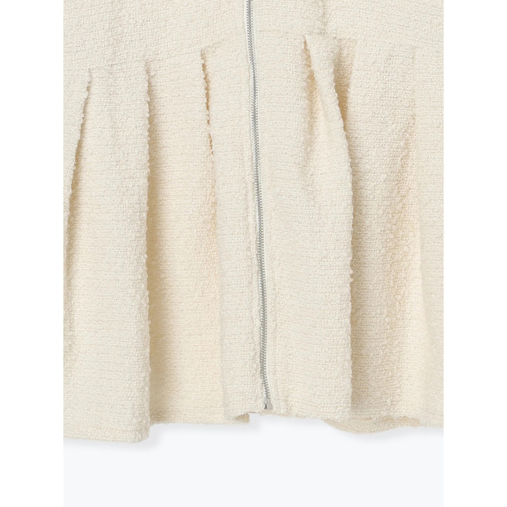 腰回りのハリ感やお腹をカバーするペプラムデザインで、気になる部分を可愛くカモフラ♪通勤着にもピッタリの 度よいキチンと感がうれしい!高見え必至なブークレ地仕立て。