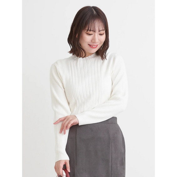 ランダムリブのデザインが大人っぽい!華奢見えニットトップス