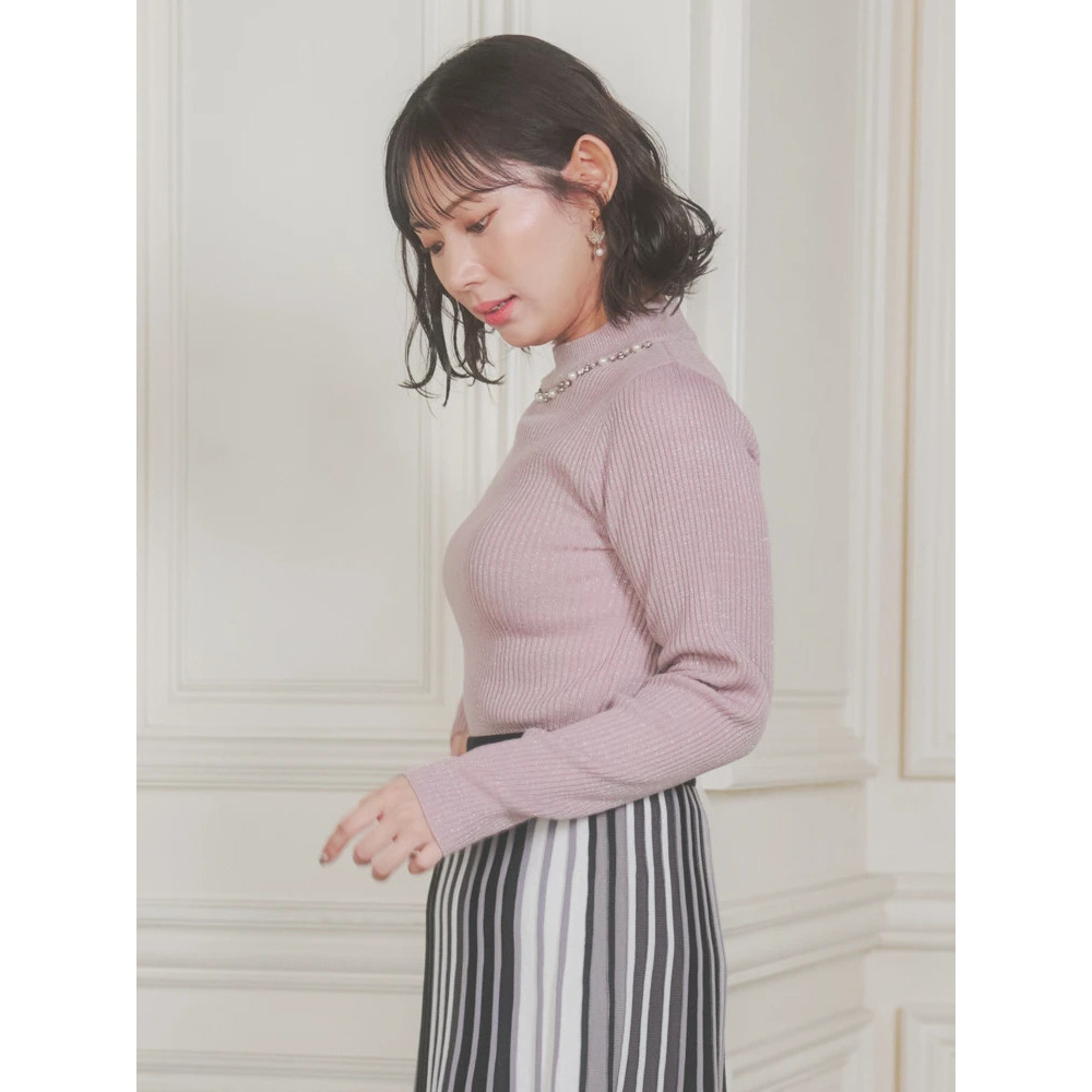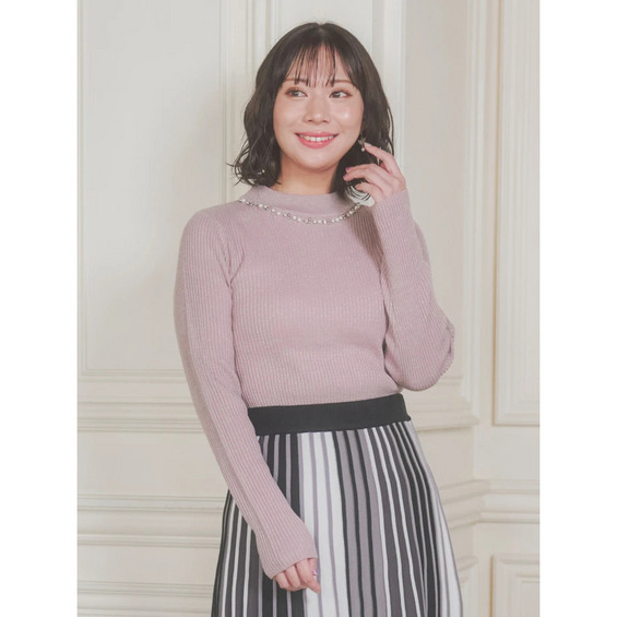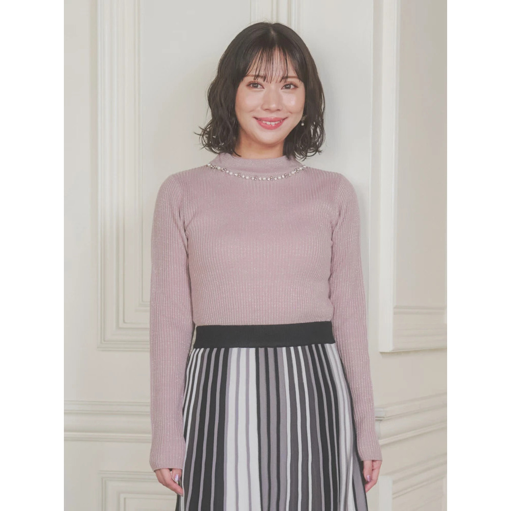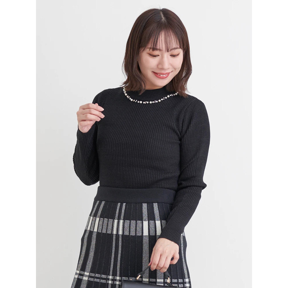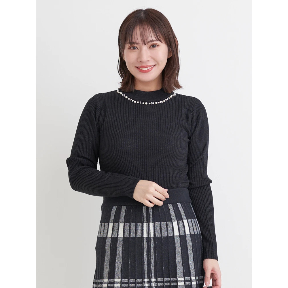 キラキラと輝きを放つビジュー×ラメニットが大人フェミニンなニットトップス