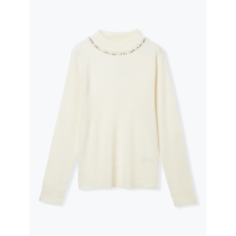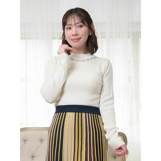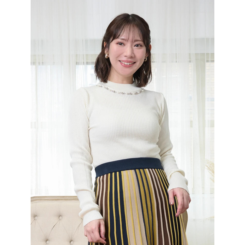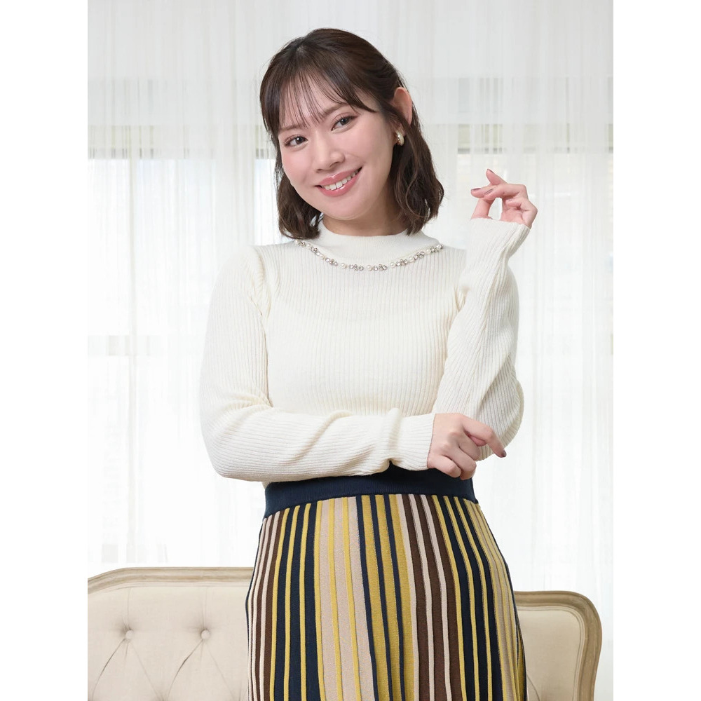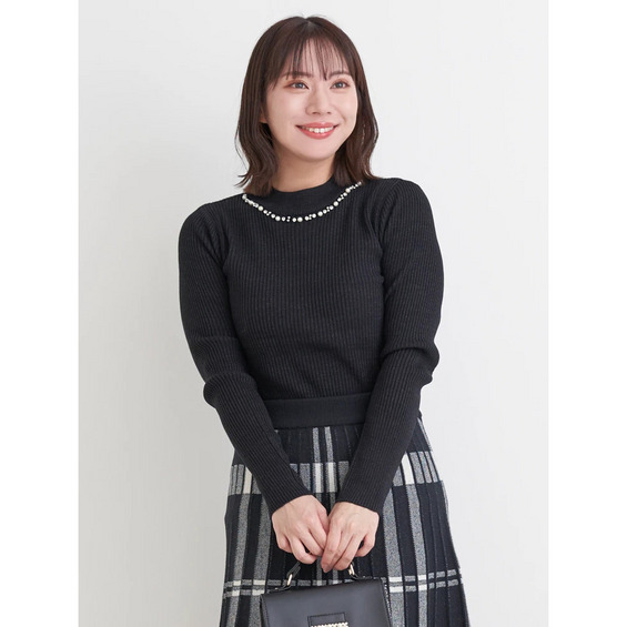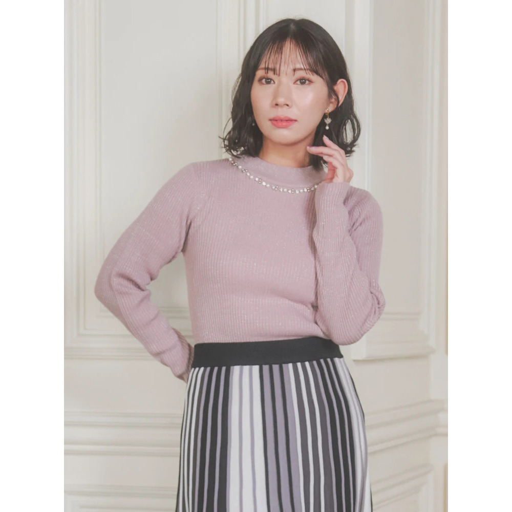 キラキラと輝きを放つビジュー×ラメニットが大人フェミニンなニットトップス