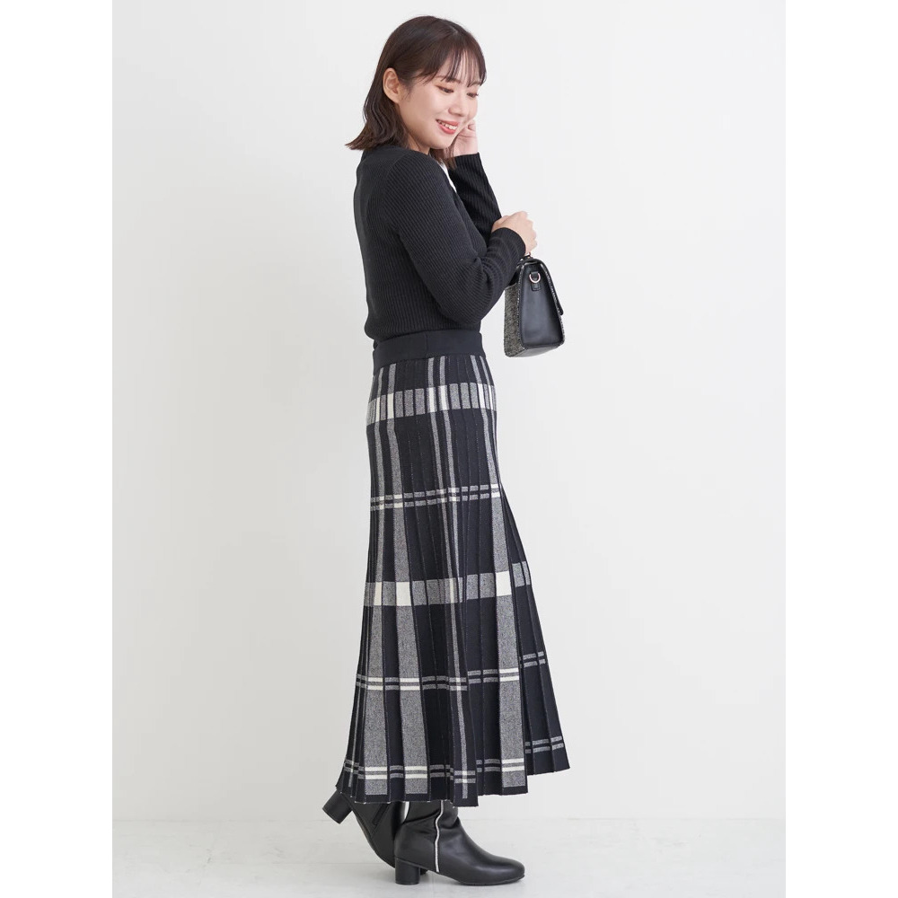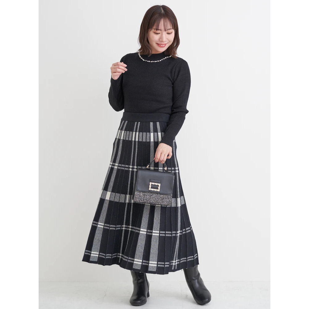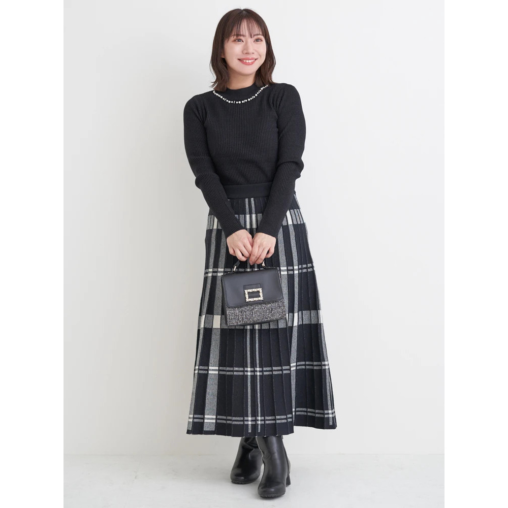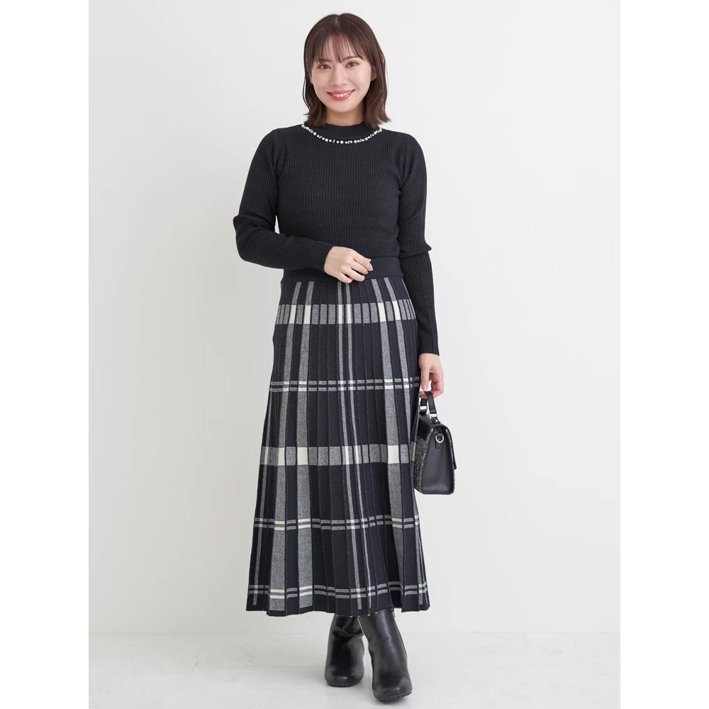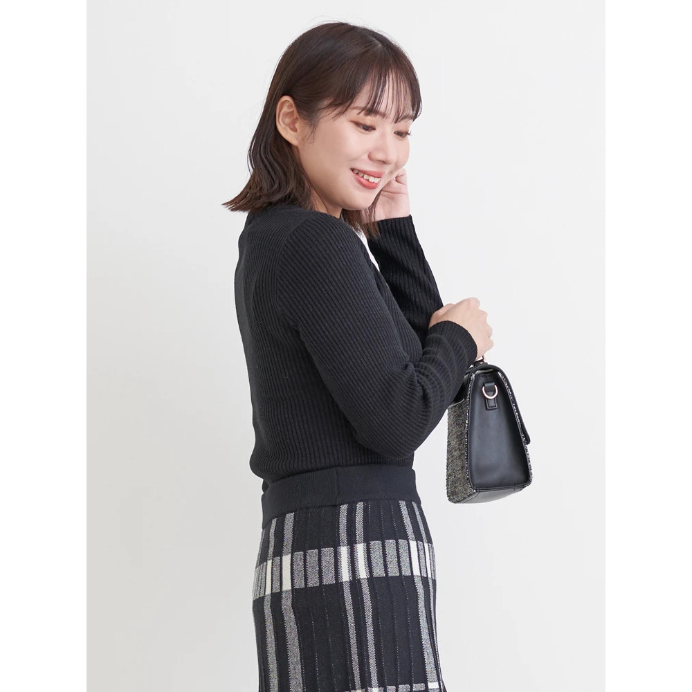 ・ラメ入りのニット素材が華やかで女性らしい雰囲気に。