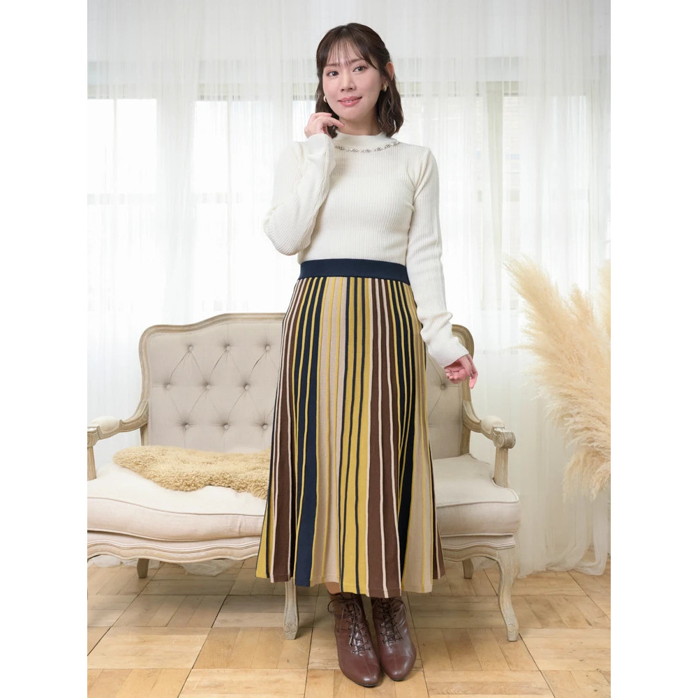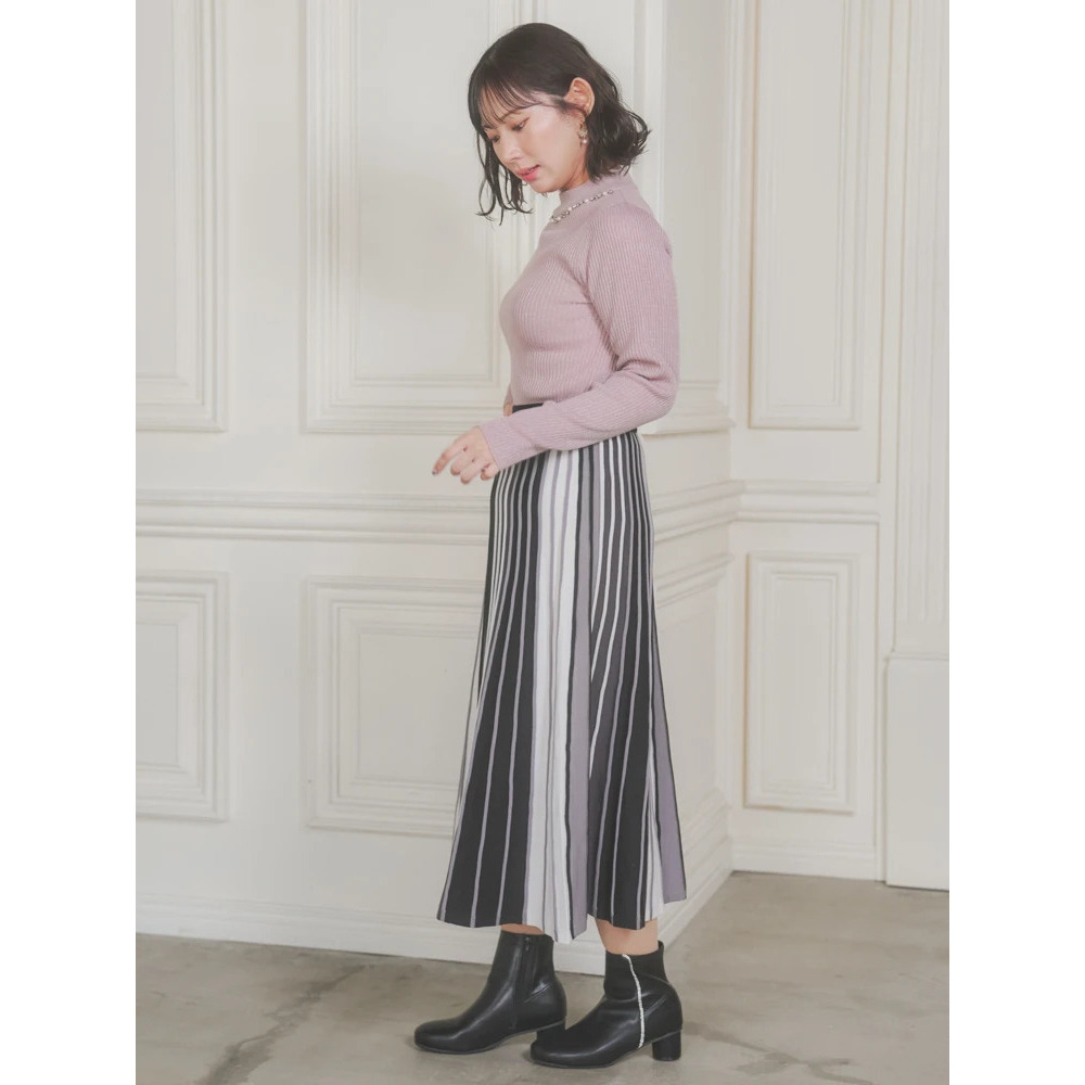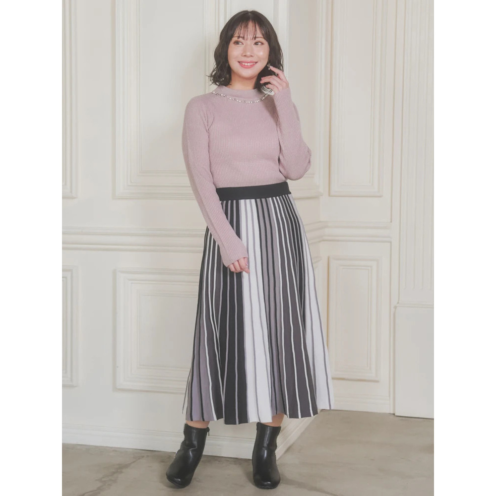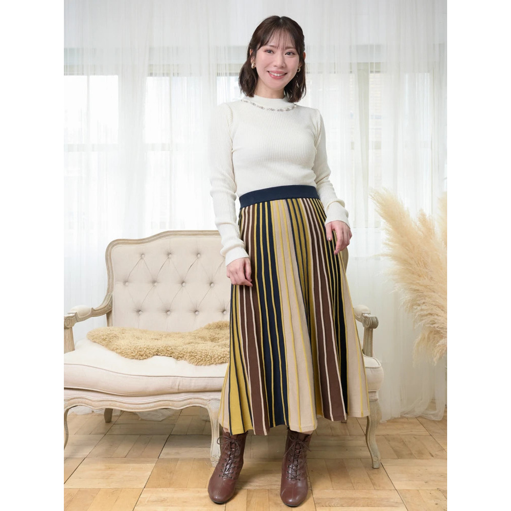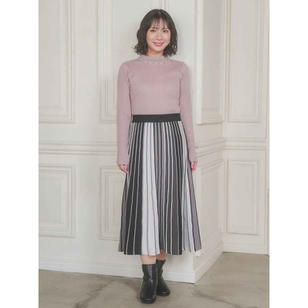 ・ラメ入りのニット素材が華やかで女性らしい雰囲気に。