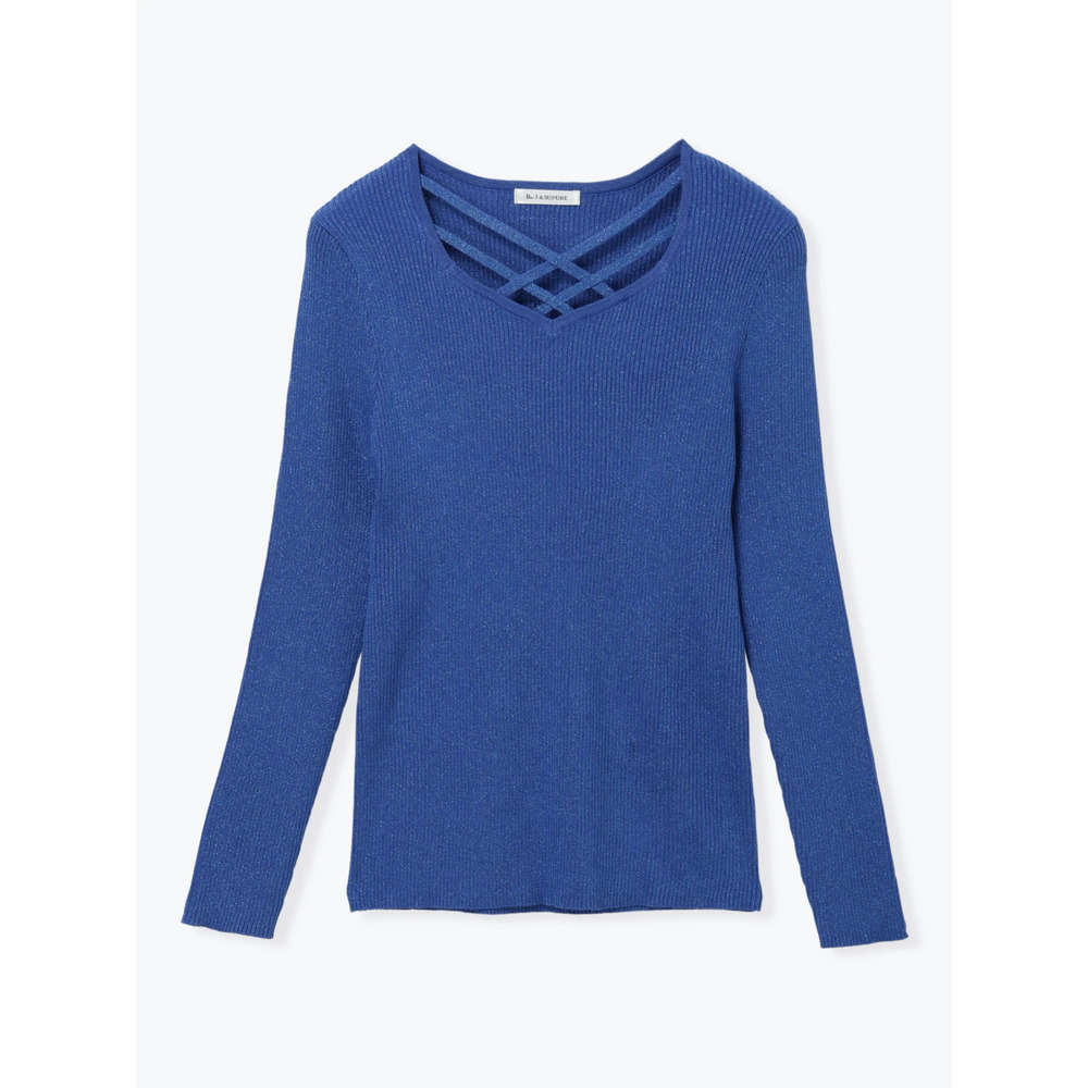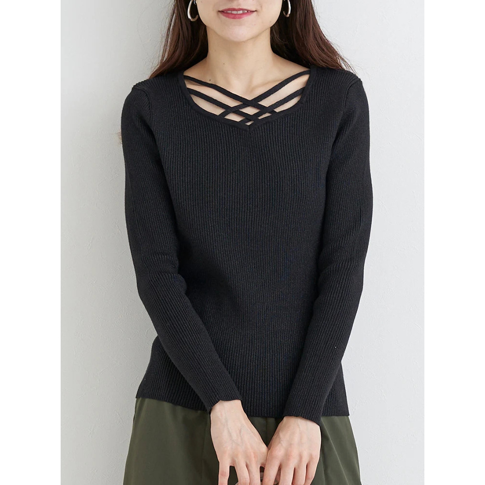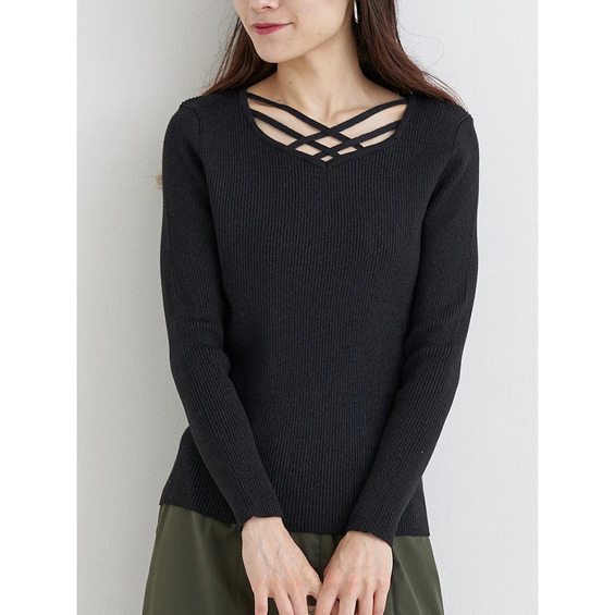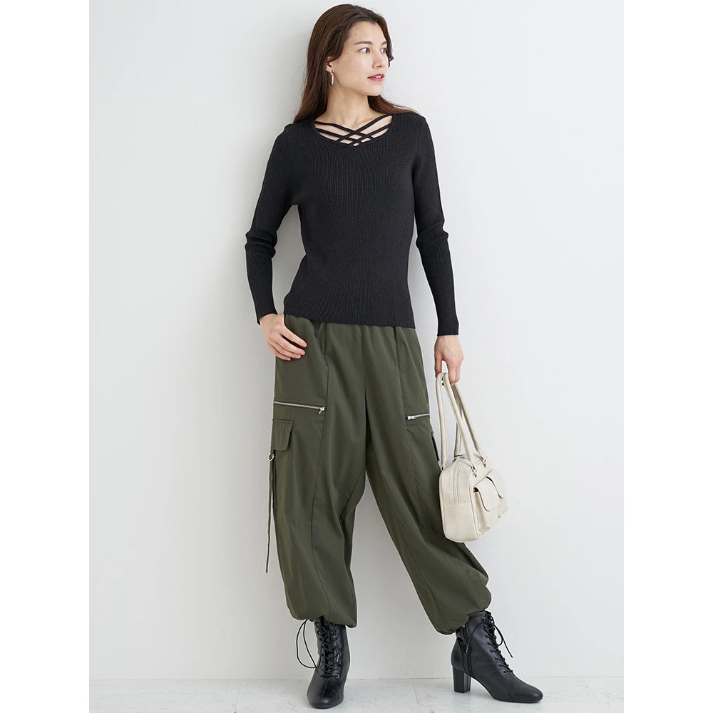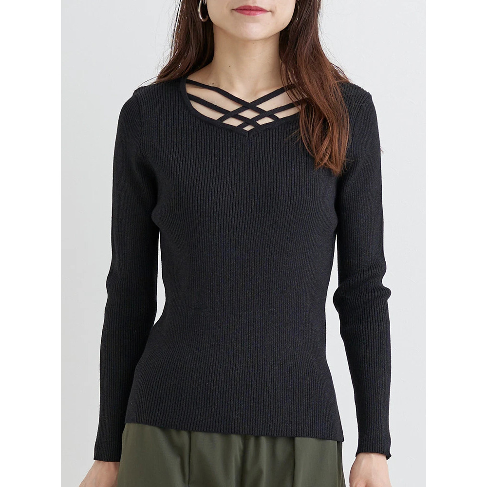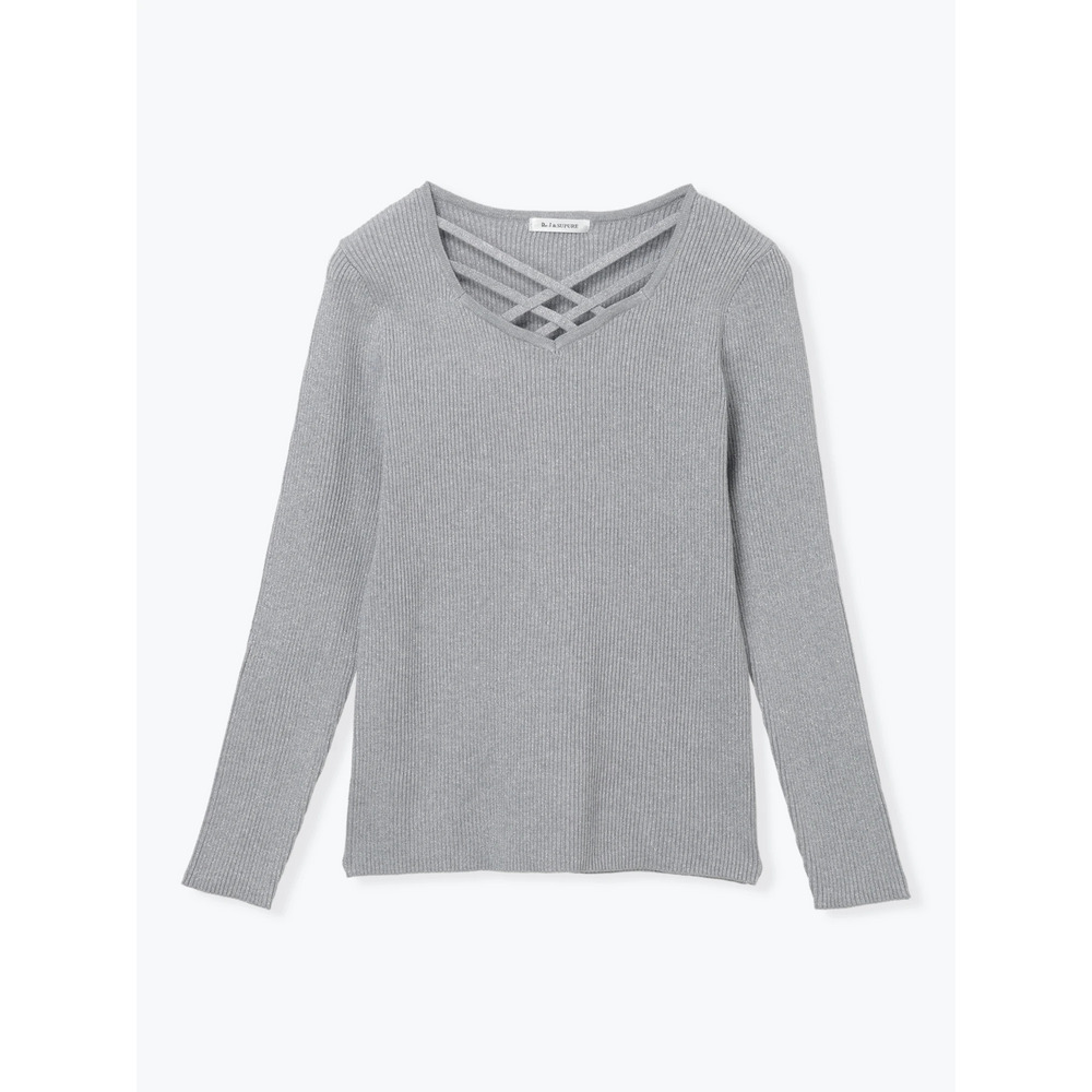 ・ラメ入りのリブニット素材で仕立てられ、上品な煌めきがフェミニン度を高めてくれる。