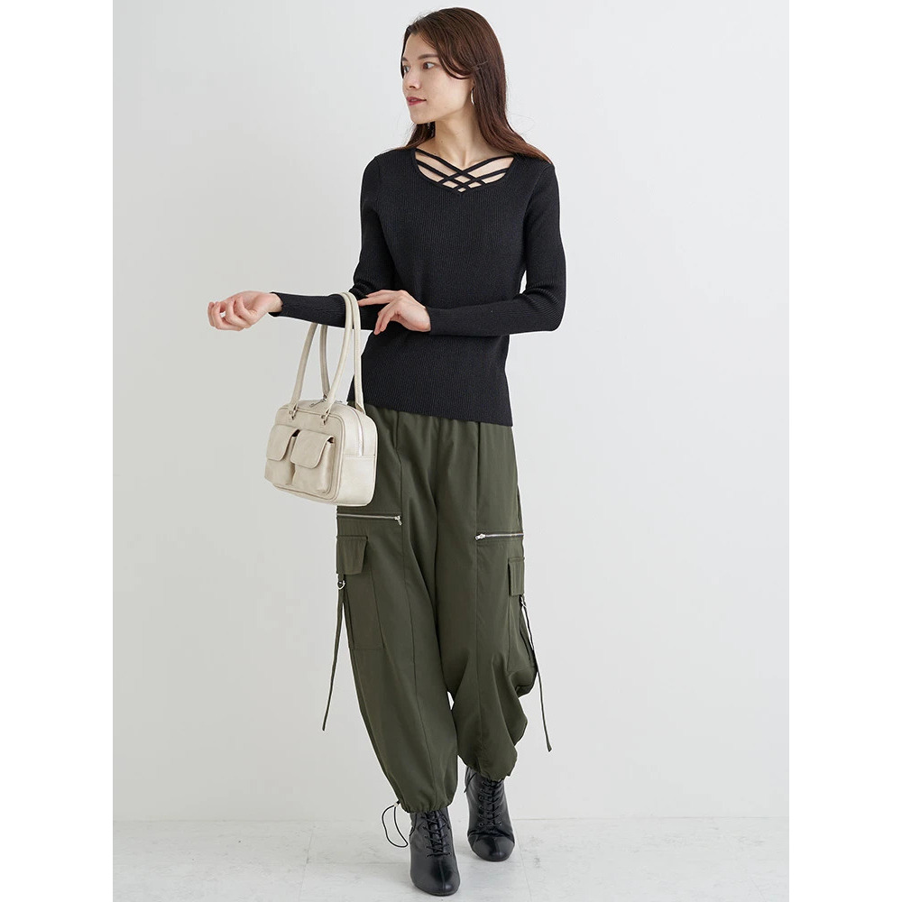 ・フロントのクロスデザインがアクセントになり、シンプルなのにオシャレ度の高いアイテム。