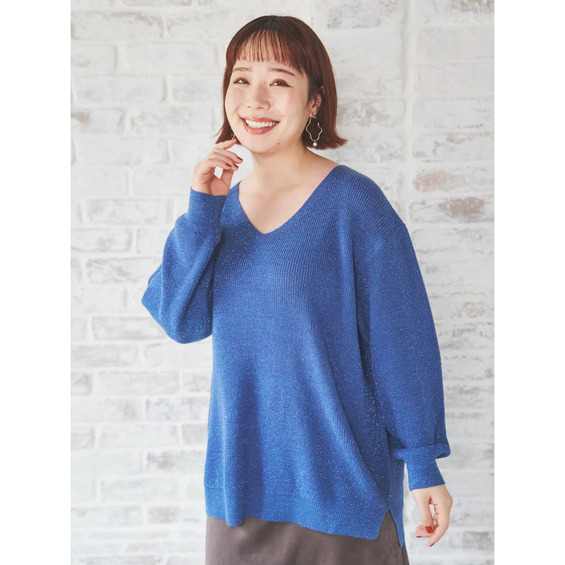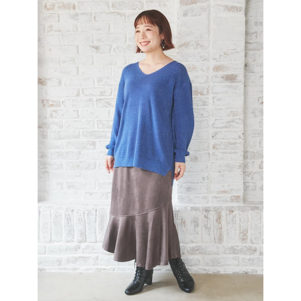 ・キラキラしたラメ入りニット素材がコーディネートを華やかにアップデート◎