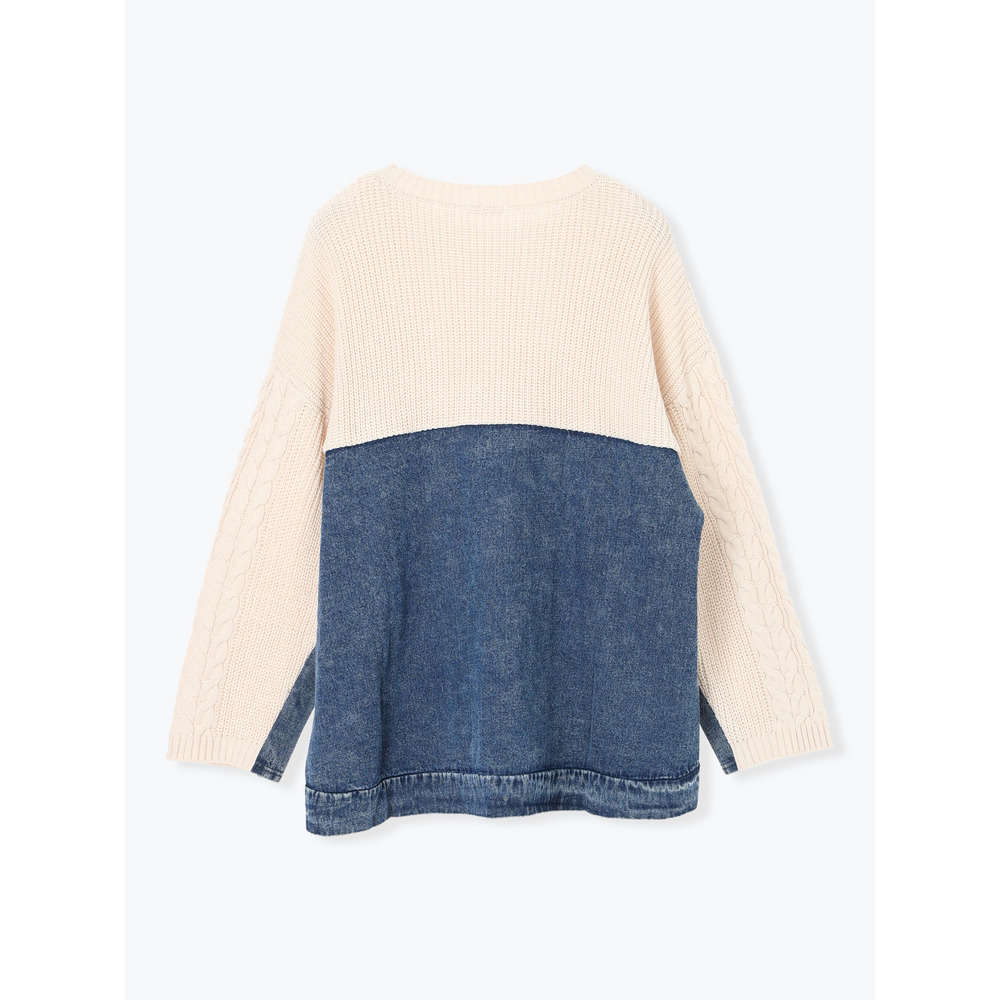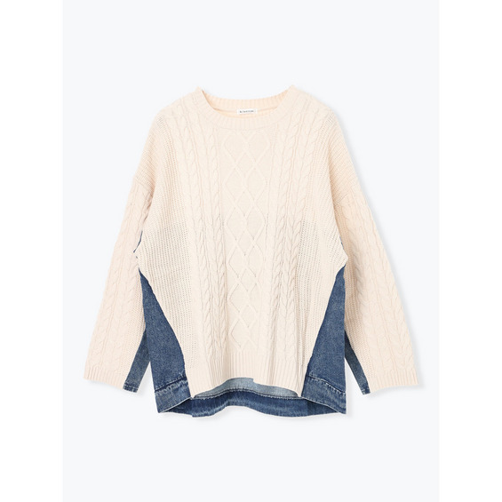 デニム切替ニットトップス